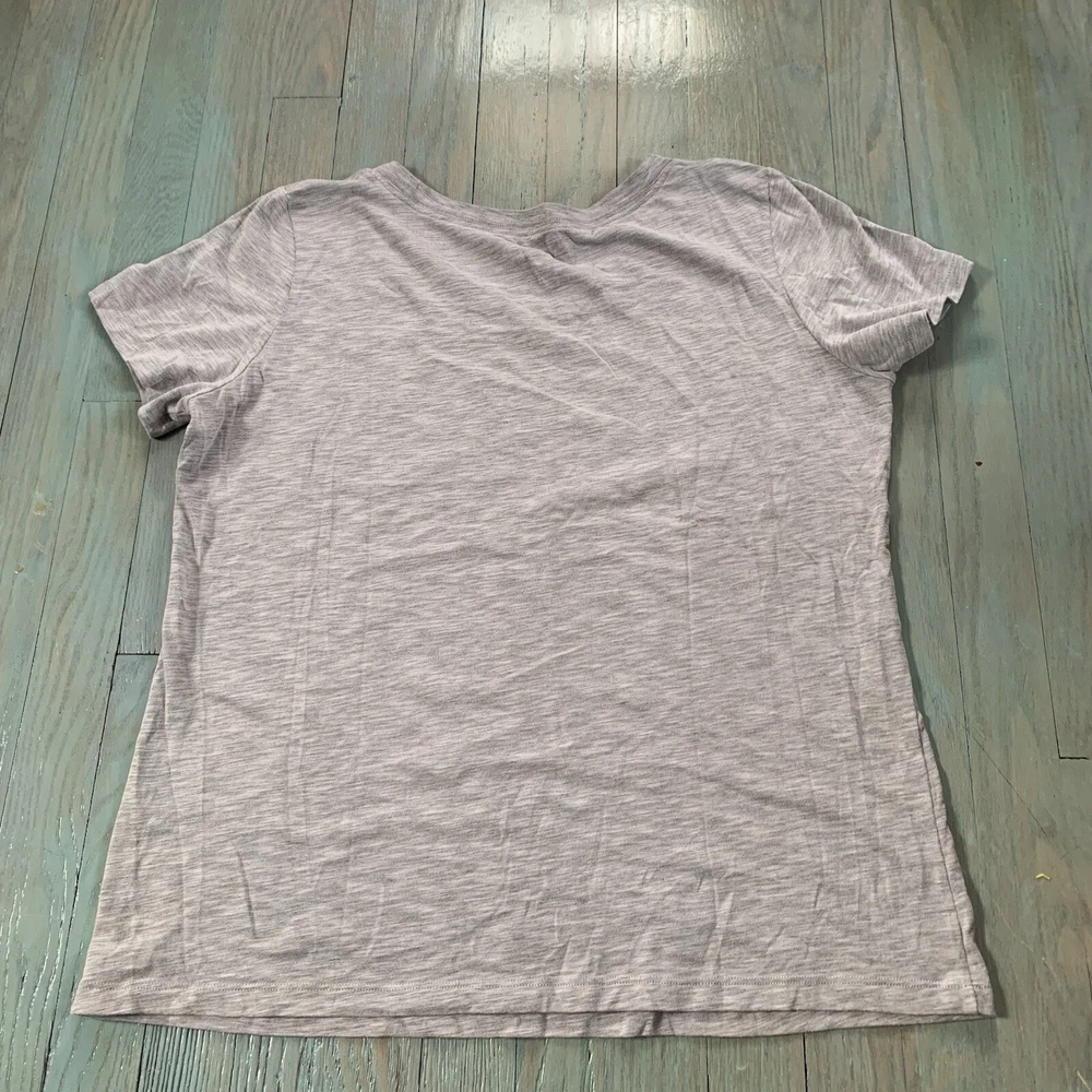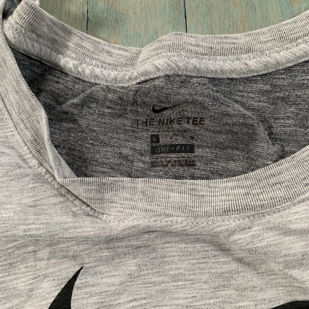 This Nike Dri-Fit Women Gray Crop Athletic Tee in size L features a Crew Neck neckline and Short Sleeve design, making it ideal for activewear. Made of lightweight and breathable cotton material, it offers easy care and can be worn in all seasons. The solid color adds a touch of style to the cropped tee, which showcases the Nike logo and "Just Do It" theme. Perfect for gym workouts, running, or everyday leisure activities, this top is a comfortable and functional addition to any athletic wardrobe. Measurements in photos