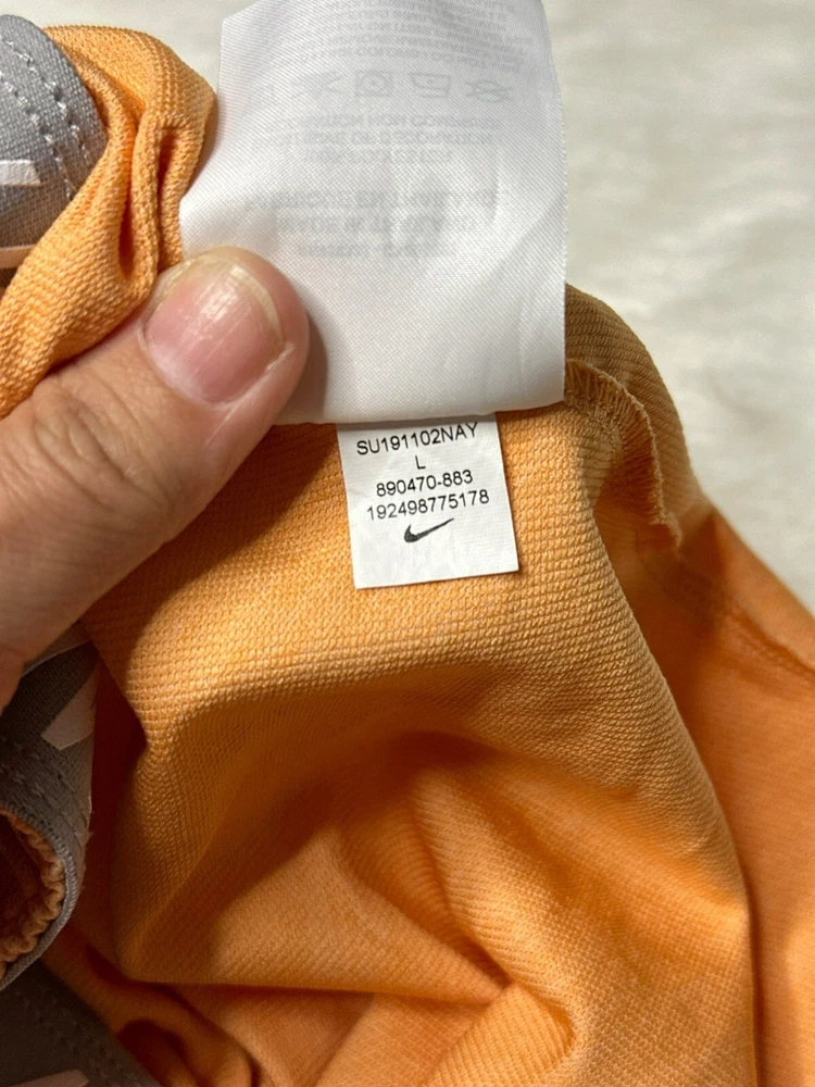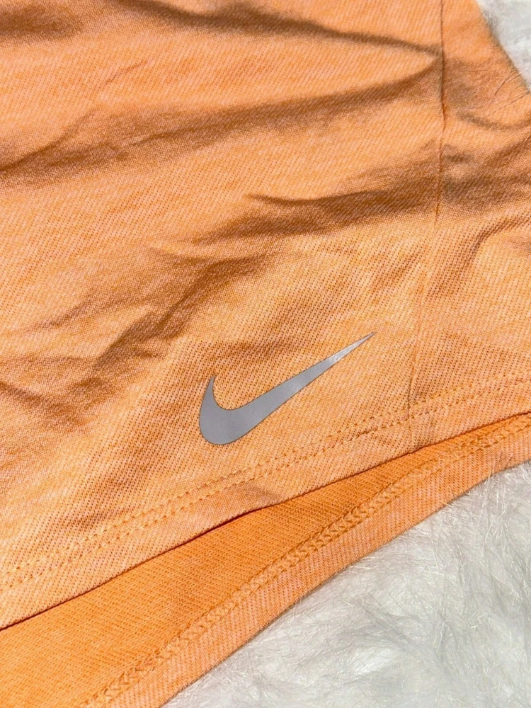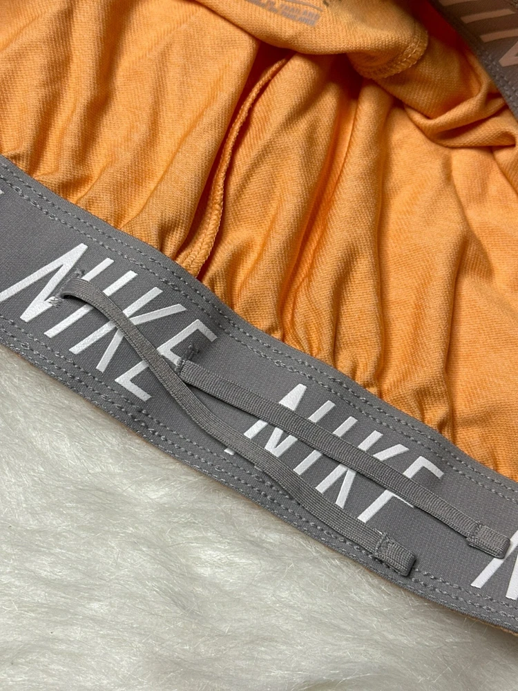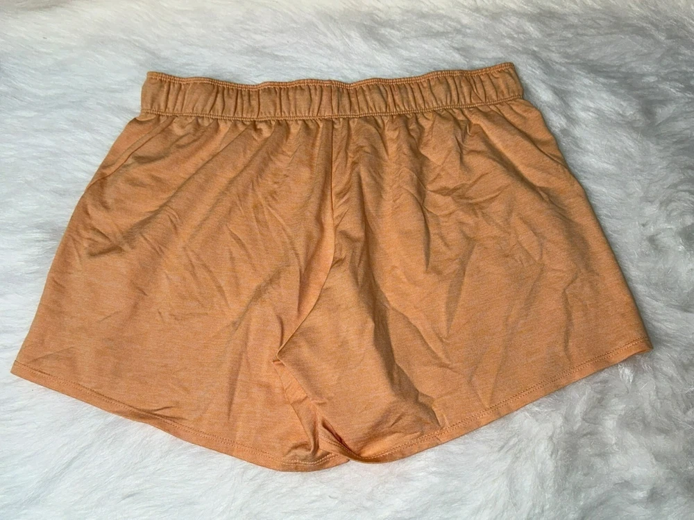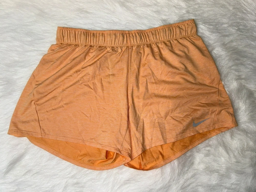 Nike Dri-Fit Women's Large Heather Orange Medium Athletic Shorts NWOT Fold Over Waist Band Logo Condition: New without tags; no flaws; unworn Size: Women's Large Retail Price: $35.00 Color: Orange with white and gray details Material: 100% Polyester Dri-Fit Pull-On Fold over Logo waistband and drawstring to tighten waistband, if desired Lightweight and moisture wicking Great for all sports and athletics or just working outdoors and trying to stay cool Machine Washable Imported All measurements provided in photos are approximate only. Non-smoking and pet free environment. Fast shipping.