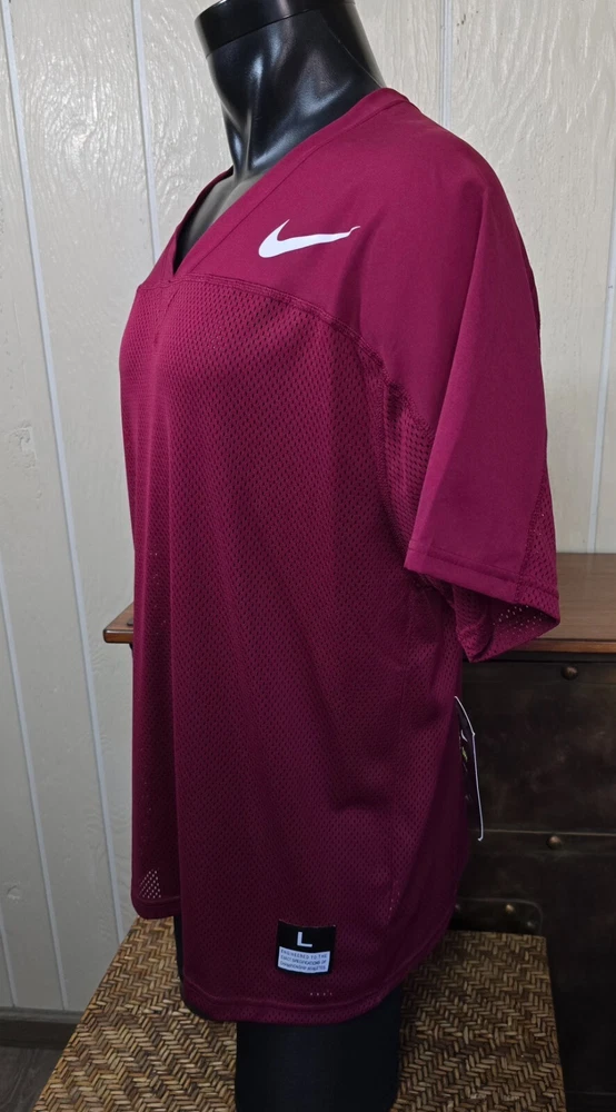 An Incredible one time opportunity to own this Nike Dry Mesh Practice Football Jersey Short Sleeve Maroon Color Sz L NWT ***No remarkable defects **PIT TO PIT IS 23 in ***VIEW ALL MEASUREMENT PHOTOS FOR PROPER FIT**** Explore the in depth photos showing every angle possible as if you have it in your hands. Thank you from all of us at DPACTIVEXPRESS ***Note 1: Display stands not included with all items unless specifically stated in the title. ****Note 2: DPACTIVEXPRESS carries a diverse collection of brands in this category, so we take a pit to pit measurement photo. ~~~~~~~ITEM IN THE LISTING PHOTOS IS THE ITEM YOU WILL RECEIV