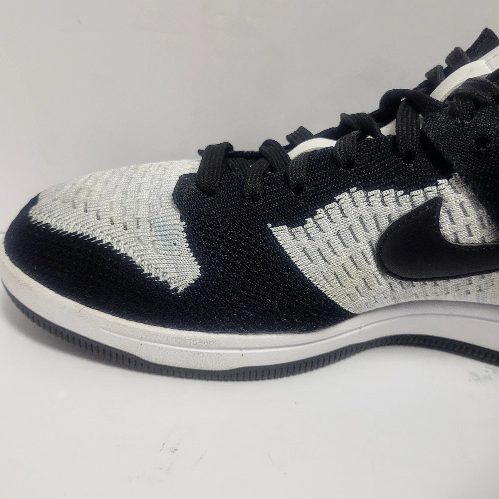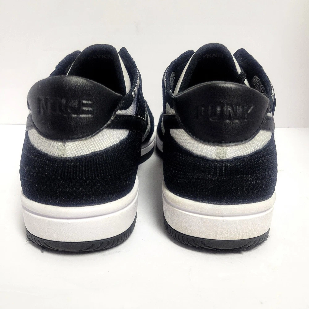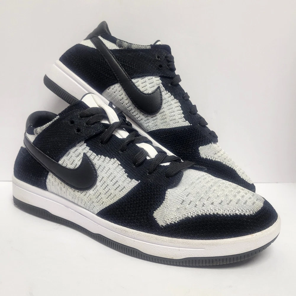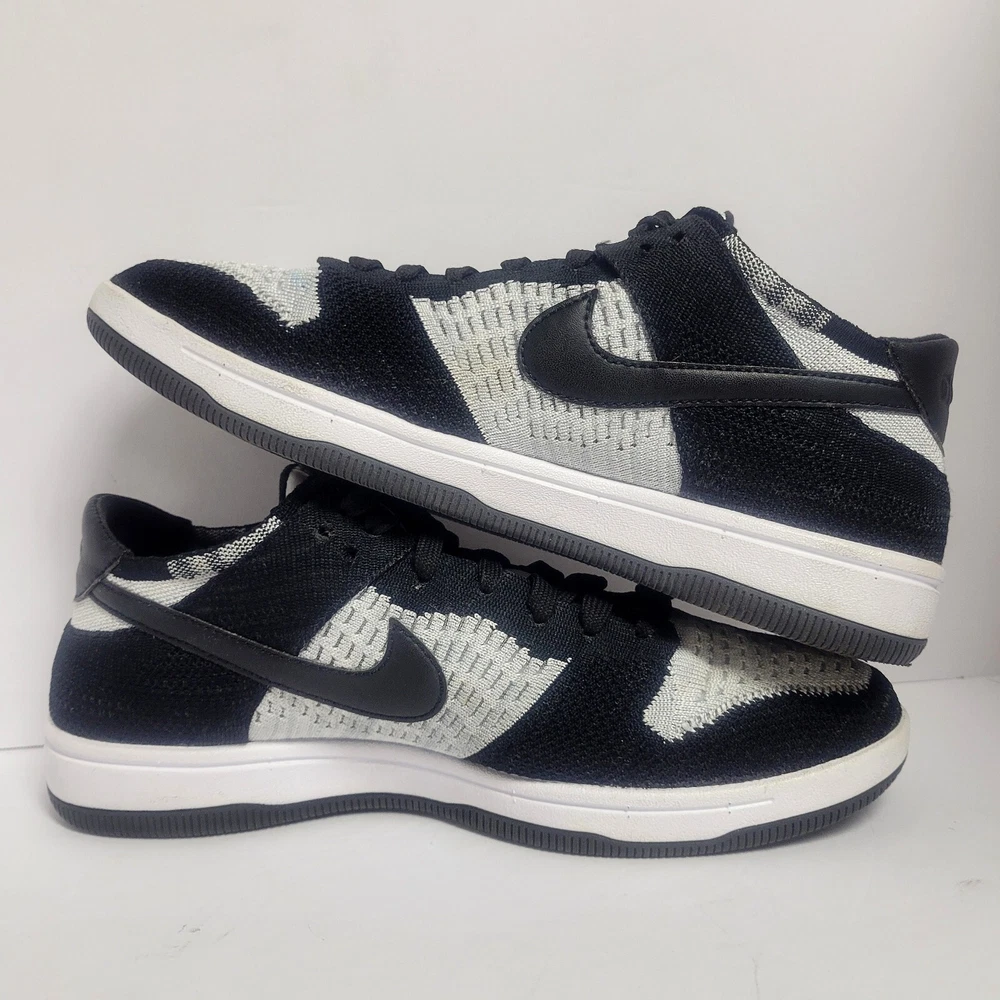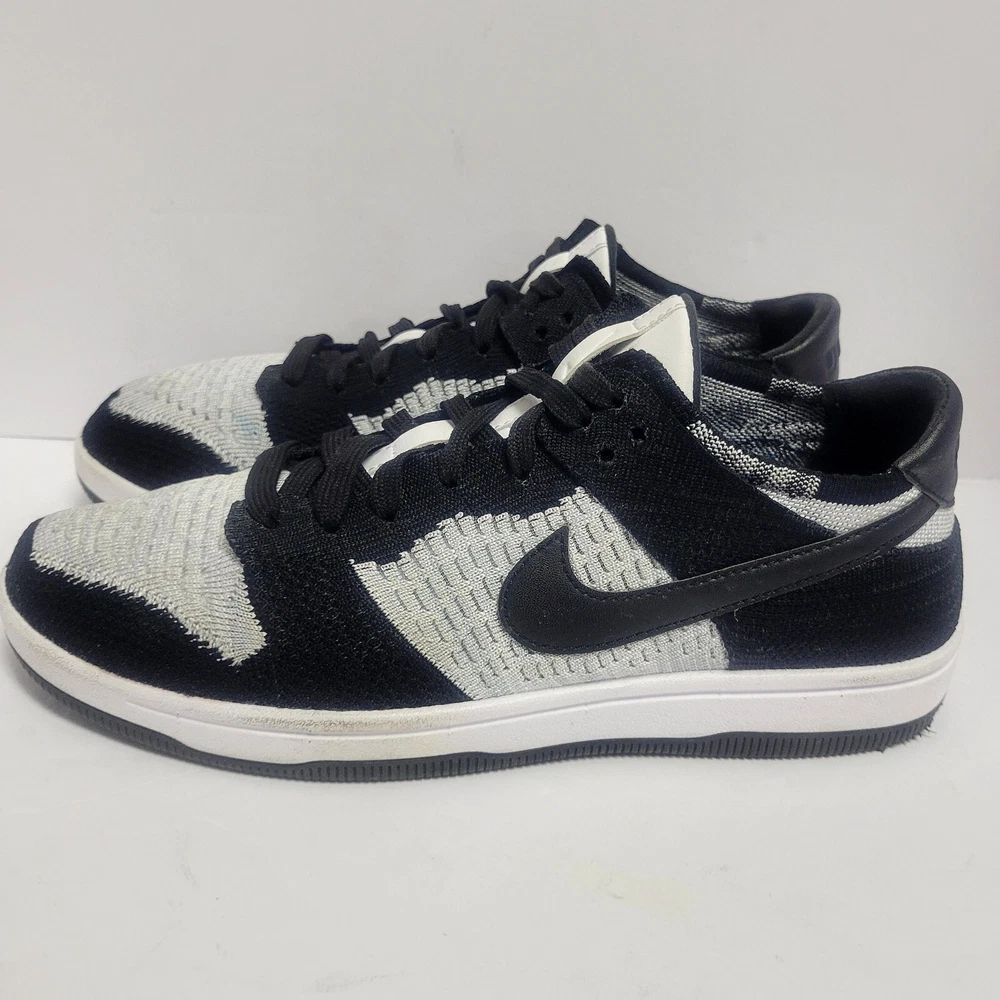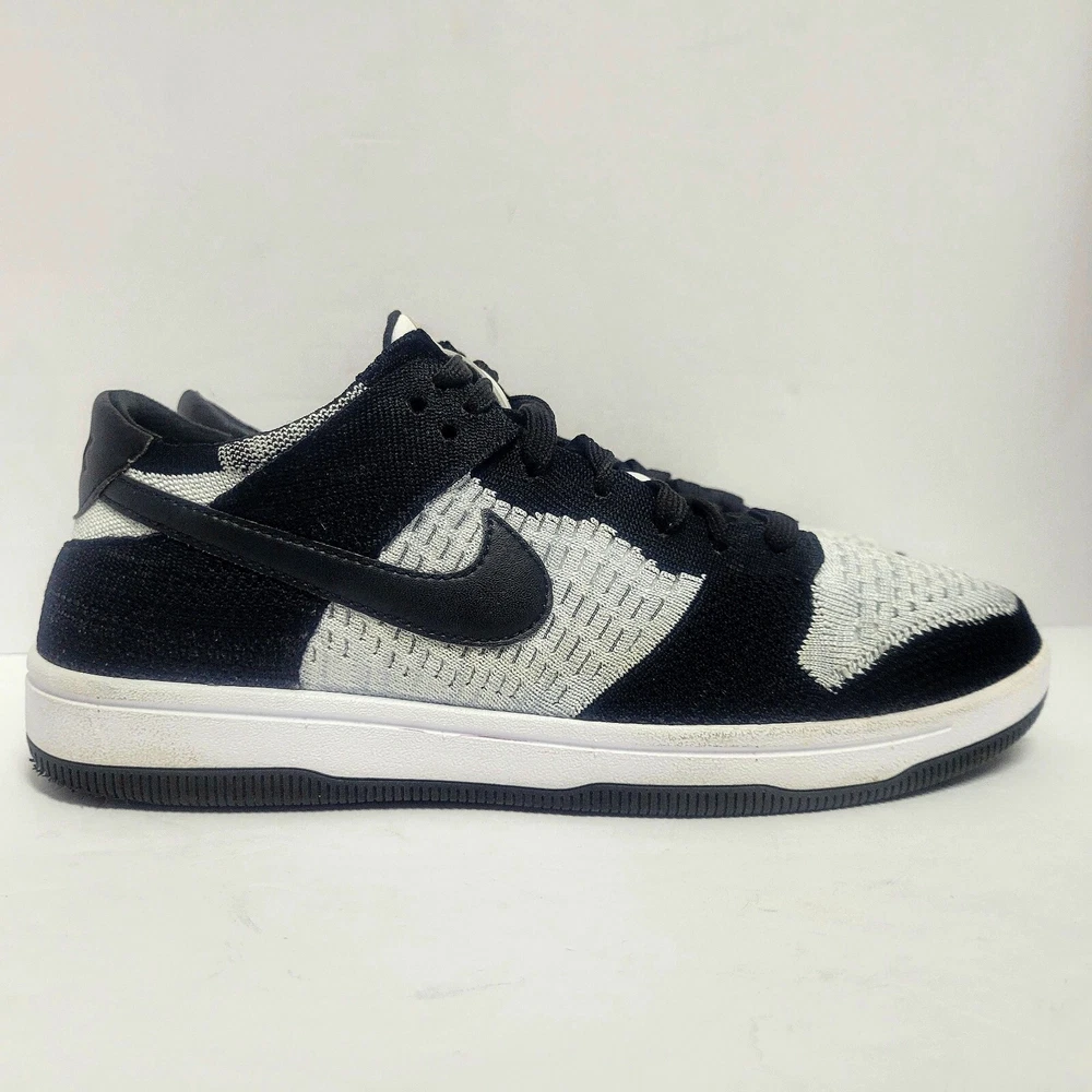 *No tags and replacement insoles. **** Elevate your shoe game with these Nike Dunk Flyknit Low sneakers. These shoes come in a stylish white and wolf grey colorway with black accents. The shoes feature a low top shoe shaft style and a standard shoe width. They are designed with a tie and lace-up closure for a secure fit. The Nike Dunk Flyknit Low sneakers are perfect for walking, skateboarding, and basketball. The FlyKnit upper material provides a comfortable and breathable fit. These sneakers are a must-have for any Nike fan and are a great addition to any sneaker collection. CONDITION: Pre-owned We have lots of photos of the inside and out. Please check them out so that you see the exact shoes you're purchasing. We do not use stock photos to insure our customers are getting the exact product they see. If you have any questions please feel free to reach out and let us know. We are always happy to help any way we can. ***No tags and replacement insoles. ****