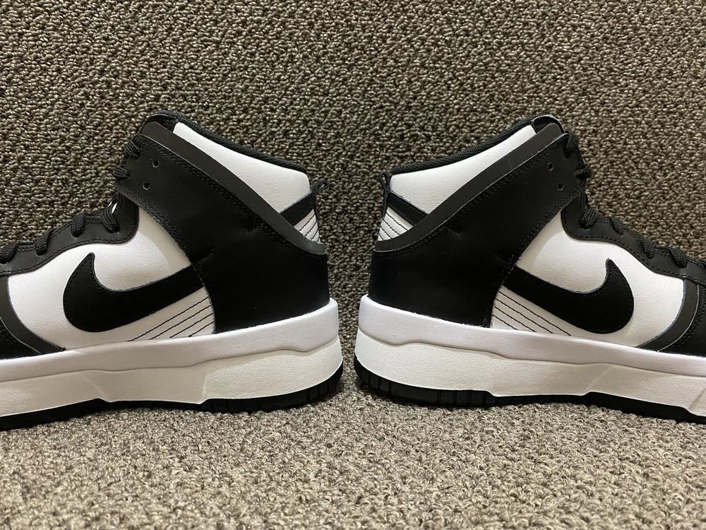 Nike Dunk High Up Womens Shoes US 11 UK 8.5 EU 43 New Black White Sneaker Panda ITEM DESCRIPTION: WOMENS LACE UP SHOES FOR CASUAL / WALKING / PARTY WEAR " NIKE TAG" MATERIAL COMPOSITION ---> ( REFER TO PHOTO 23 ) COLOR : White / Black - Dark Smoke Grey SIZE: ( REFER TO PHOTO 24 ) --> can fit mens too mens US 9.5 PLEASE REFER TO THE PHOTOS I HAVE PROVIDED FOR THE DESIGN OF THE ITEM PLEASE NOTE : THE BOX IS MISSING THE TOP LID ( PLEASE REFER TO THE PICTURES PROVIDED FOR CONDITION OF THE BOX ) ( REFER TO PHOTO 15 ) PLEASE NOTE: THERE ARE SOME RIPS , TEARS AND SOME BENTS AND DENTS ON THE BOX ( REFER TO PHOTO 15, 16, 17, 18, 19, 20, 21 ) PLEASE NOTE: THE NIKE SIZE TAG WAS DETACHED ON THE RIGHT PAIR OF THE SHOES We Use Australia Post for Posting and the Postage Price Includes Shipping, Handling and Packaging and Tracking Number We Can Ship International Too International Shipping is Calculated on Your Exact Location --- It Includes Shipping, Handling and Packaging Please Wait for the Invoice to Be Sent Please Don't Hesitate to Ask Question and We Will Answer It as Soon as Possible Purchase With Confidence Thanks Thanks for Purchasing Please Check Our Other Items Listed !!!