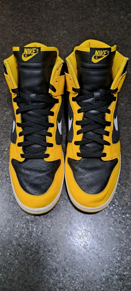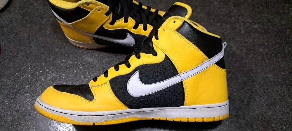 Dunk high yellow black from 2008 extreamly rare especially in this size. Pairs on goat are over $300, and there isn't a single 14 anywhere. Still wearable coming from my personal collection.