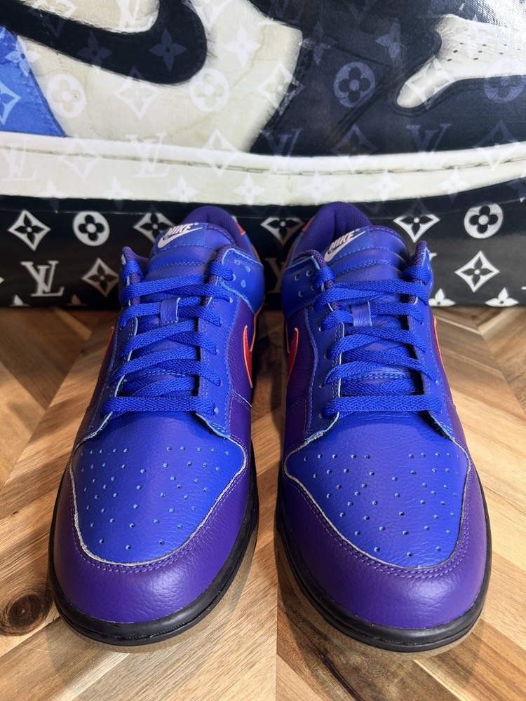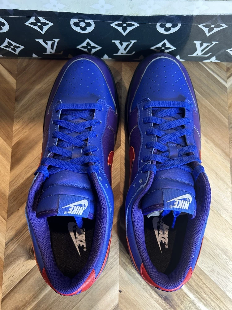 Step up your sneaker game with these limited edition Nike Dunk Low By You shoes. The style code FN0569-900 features a tumbled leather design and a low top shoe shaft style. These shoes are perfect for men who want to make a statement with their athletic wear. The blue color and lace-up closure add to the overall design, while the standard shoe width and leather upper material ensure a comfortable fit. Whether you're hitting the gym or the basketball court, these Nike Dunk shoes will keep you looking and feeling great. Don't miss out on this rare opportunity to own a pair of these highly sought-after sneakers.