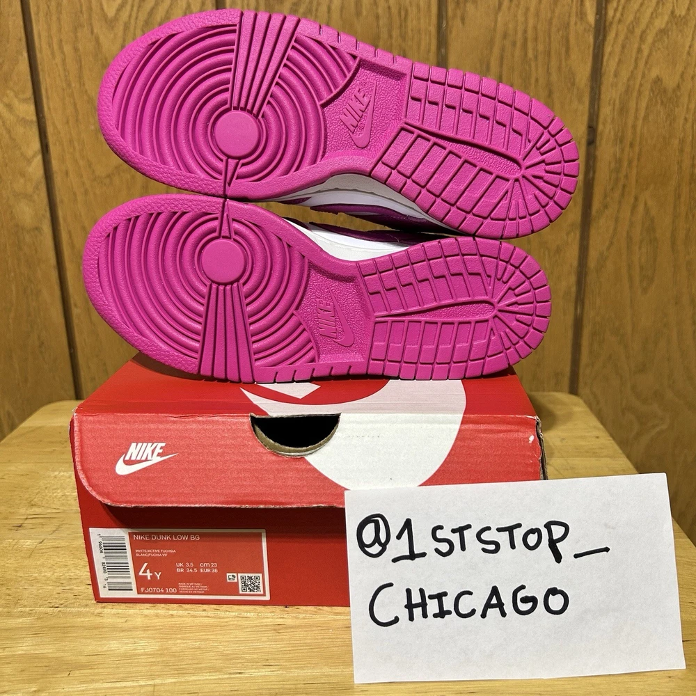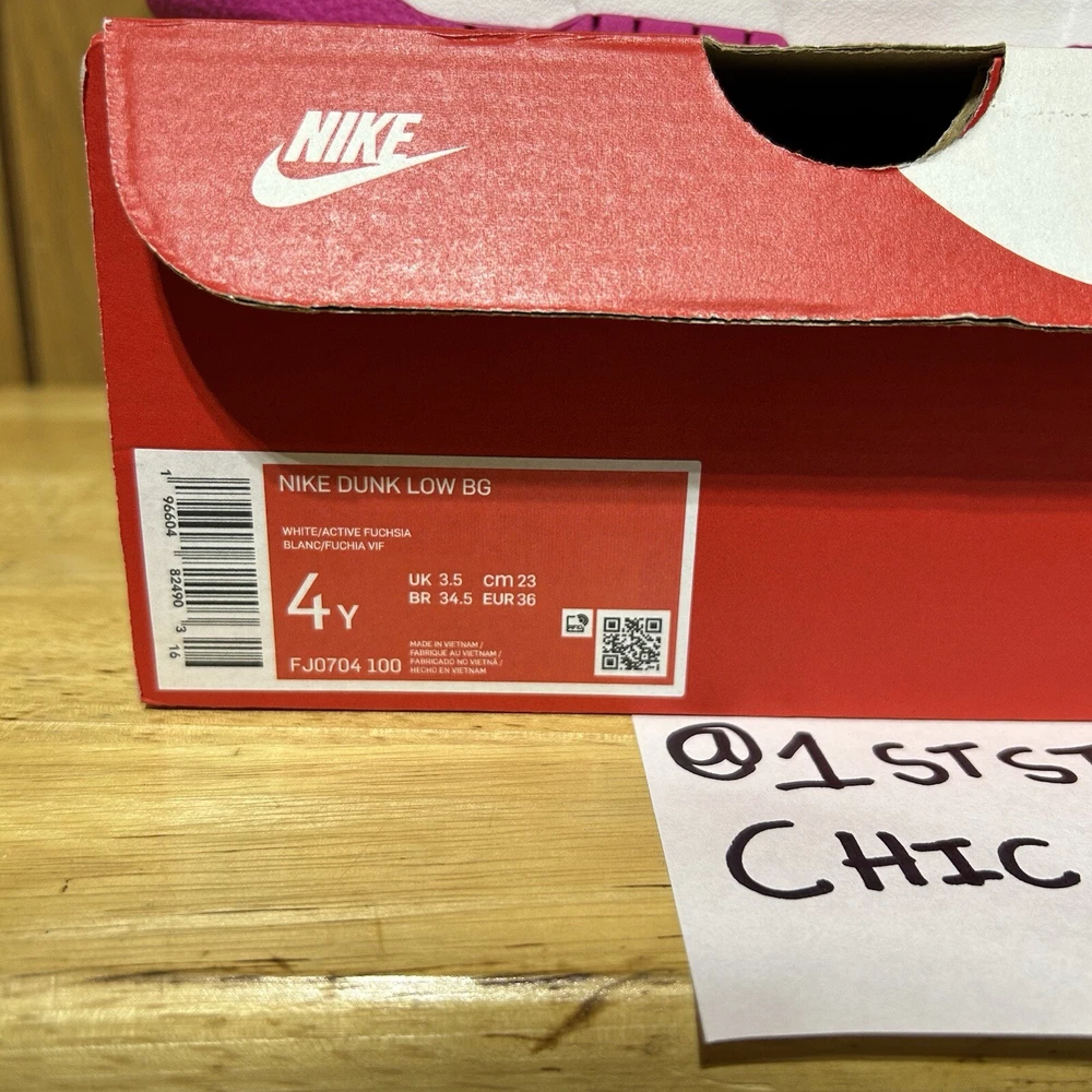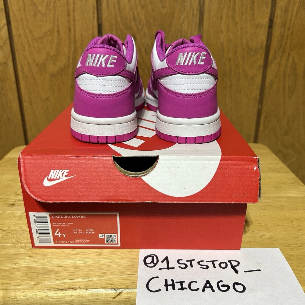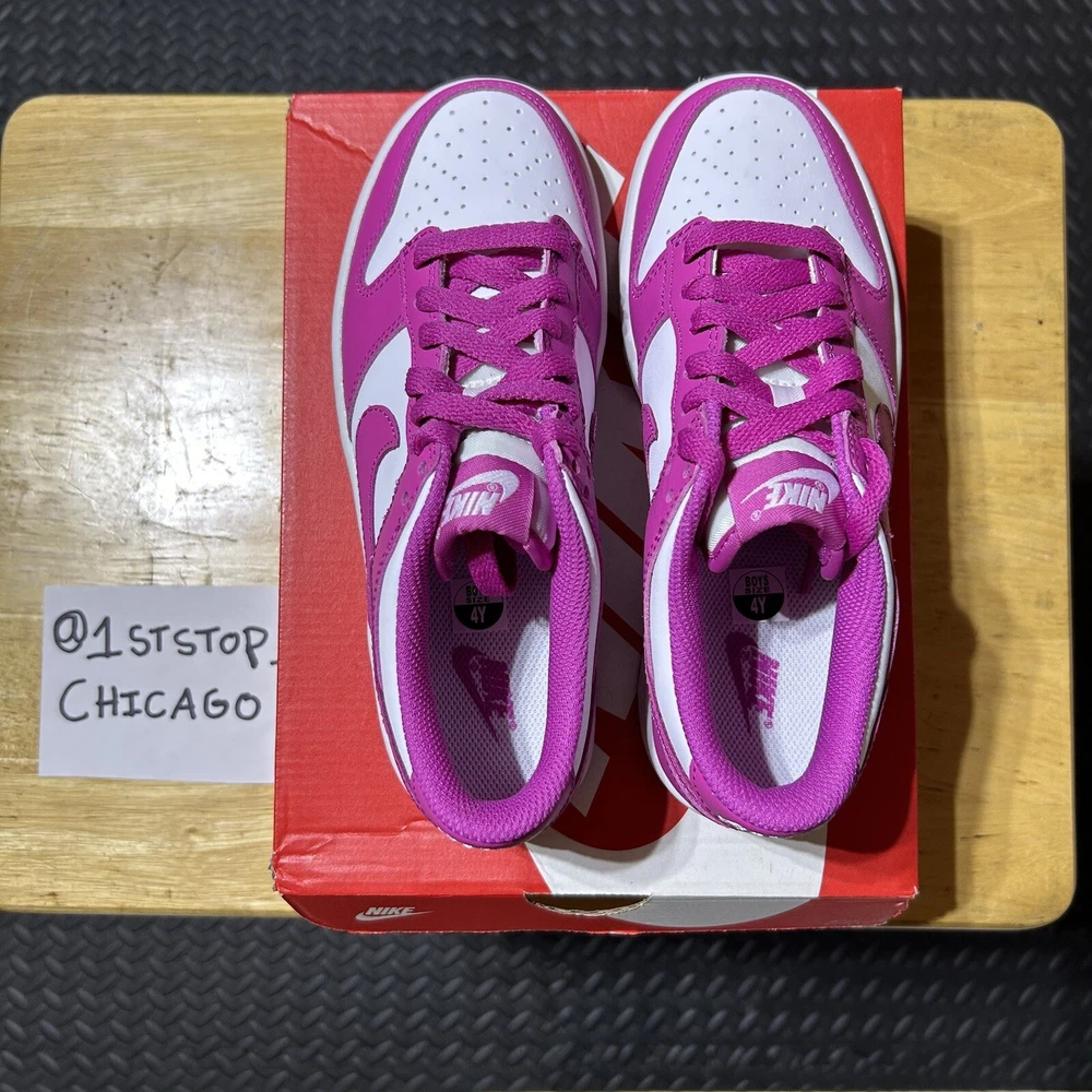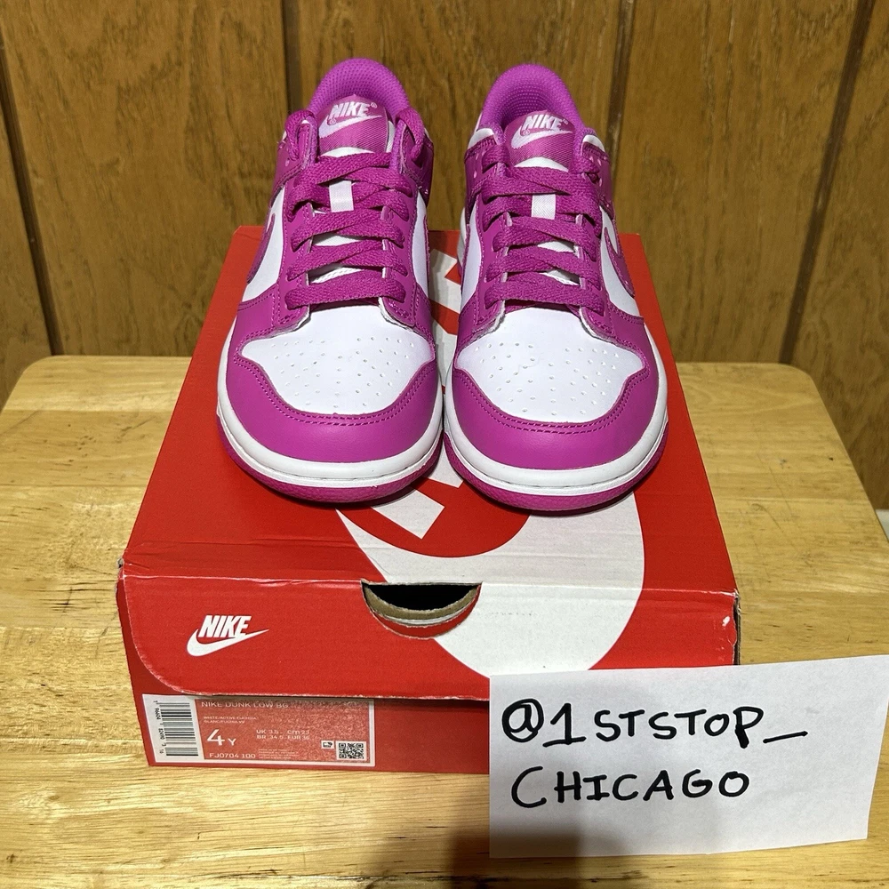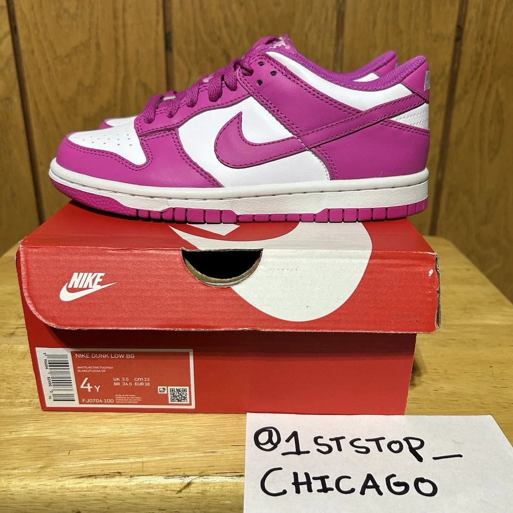 This pair of Nike Dunk Low sneakers is perfect for any young athlete or fashion-forward individual. The vibrant fuchsia color and classic design make it a standout choice for any outfit. Must-have for any sneaker enthusiast. 100% Authentic. In-Hand Ready to Ship. Brand New. Please see pics above for a closer look at product. Legit Seller.