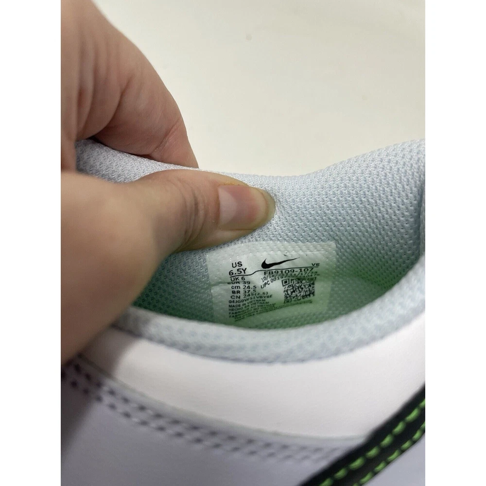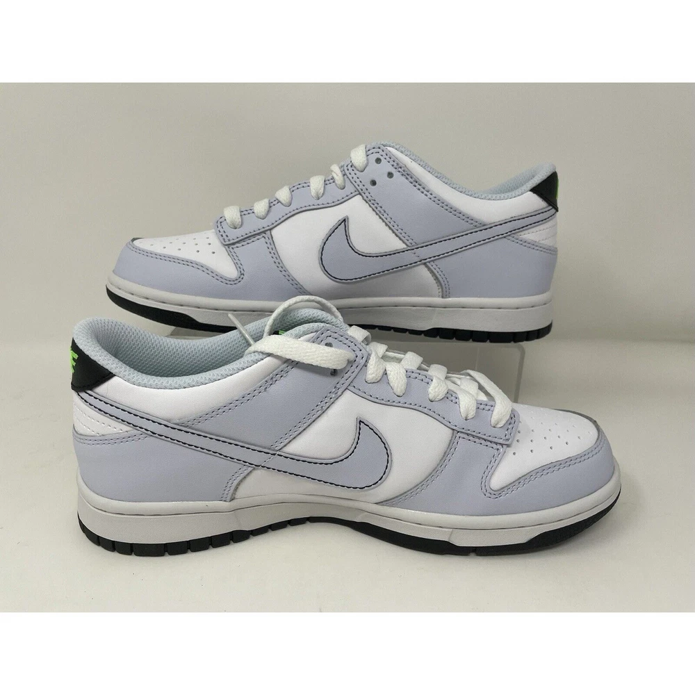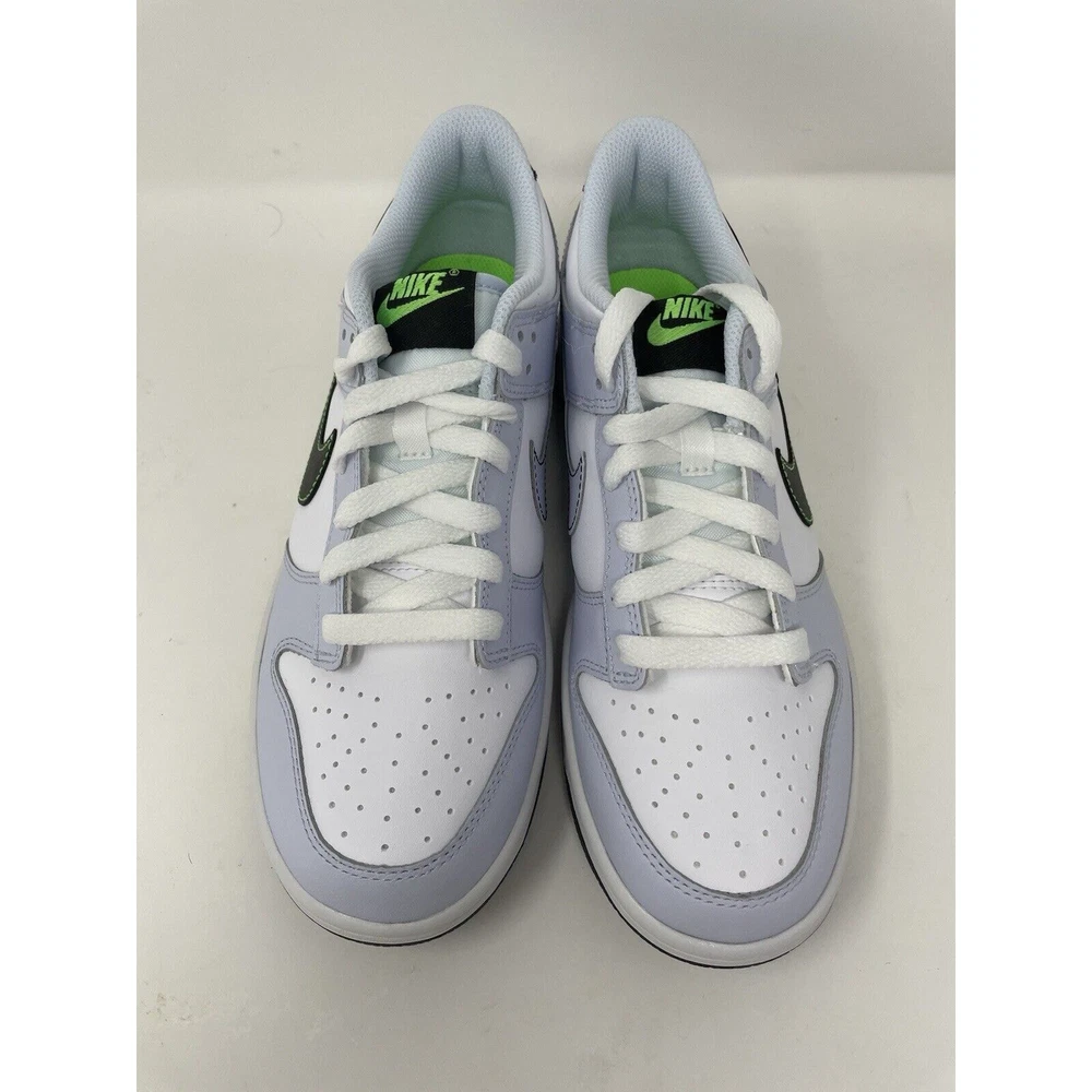 Nike Dunk Low GS Sz 6.5Y Grey White Green Kids Youth Shoes Sneaker NWB Condition: NIB - New in box without any holes, rips, stains, or scuff marks. Size: 6.5Y or 8 Womens Color: Grey and white Upper material: Faux leather