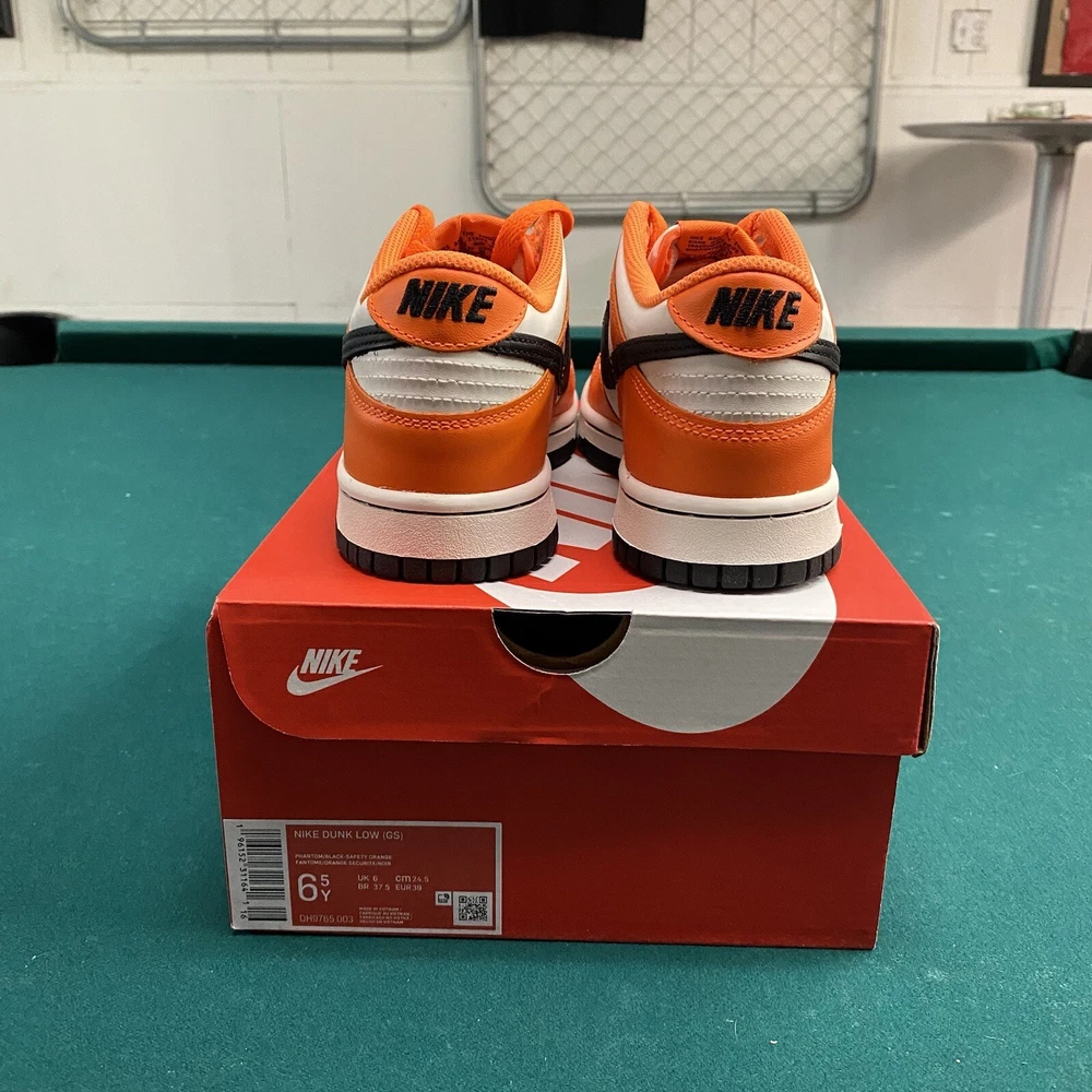 Step up your sneaker game with these Nike Dunk Low GS Halloween sneakers. The colorful colorblock design features the iconic Nike logo and is perfect for any occasion. With a lace-up closure and standard shoe width, these sneakers are a perfect fit for women's US shoe size 8 and UK shoe size 6. Get ready to Halloween in style with these Nike Dunk Low GS sneakers. 100% Authentic. In-Hand Ready to Ship. Brand New. Please see pics above for a closer look at product. Legit Seller.