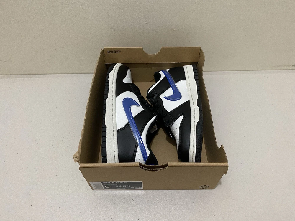 Nike Dunk Low NN GS Kids Boys Shoes US 5Y EU 37.5 Womens US 6.5 New Sneakers ITEM DESCRIPTION: YOUTH / KIDS / BOYS / GIRLS ( can fit womens shoes ) LACE UP SHOES FOR CASUAL / WALKING / PARTY WEAR " NIKE TAG" MATERIAL COMPOSITION ---> ( REFER TO PHOTO 23 ) COLOR : BLACK - BLACK - HYPER ROYAL SIZE: ( REFER TO PHOTO 24 ) ( can fit womens US 6.5 based on nike conversion chart ) PLEASE REFER TO THE PHOTOS I HAVE PROVIDED FOR THE DESIGN OF THE ITEM PLEASE NOTE : THE BOX IS MISSING THE TOP LID ( PLEASE REFER TO THE PICTURES PROVIDED FOR CONDITION OF THE BOX ) ( REFER TO PHOTO 15 ) PLEASE NOTE: THERE ARE SOME RIPS , TEARS AND SOME BENTS AND DENTS ON THE BOX ( REFER TO PHOTO 15, 16, 17, 18, 19, 20, 21 ) We Use Australia Post for Posting and the Postage Price Includes Shipping, Handling and Packaging and Tracking Number We Can Ship International Too International Shipping is Calculated on Your Exact Location --- It Includes Shipping, Handling and Packaging Please Wait for the Invoice to Be Sent Please Don't Hesitate to Ask Question and We Will Answer It as Soon as Possible Purchase With Confidence Thanks Thanks for Purchasing Please Check Our Other Items Listed !!!