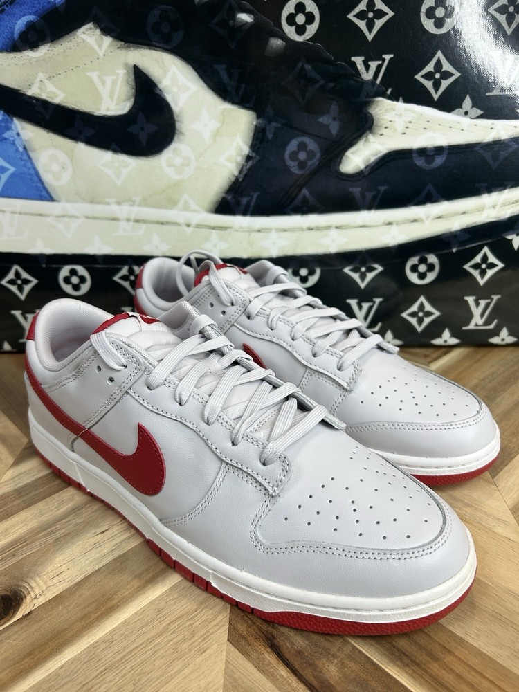 Step up your sneaker game with these brand new Nike Dunk Low shoes. Featuring a stylish colorblock design in varsity red and white, these shoes are perfect for any fan of basketball or skateboarding. The low top style and standard shoe width make them comfortable and easy to wear for any activity. Crafted with a cushioned and breathable foam insole and a durable rubber outsole, these Nike Dunk Low shoes are perfect for walking, skateboarding, or basketball. The lace-up closure ensures a secure fit, while the synthetic lining material and leather upper material provide a comfortable feel. These shoes are a rare find and a must-have for any sneaker collector.