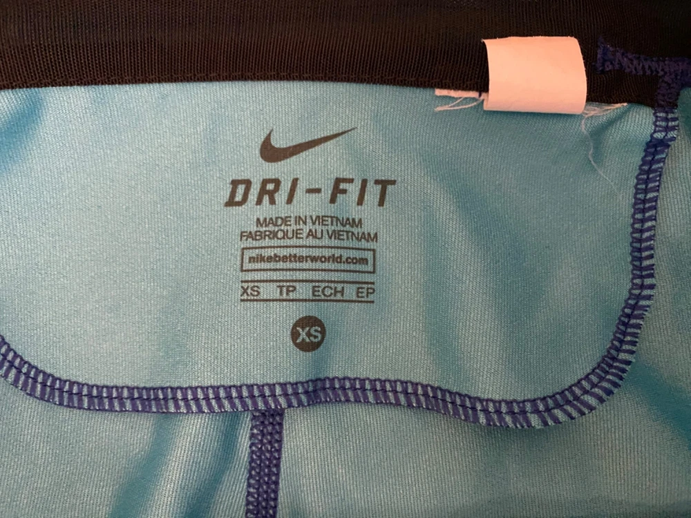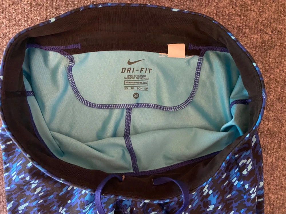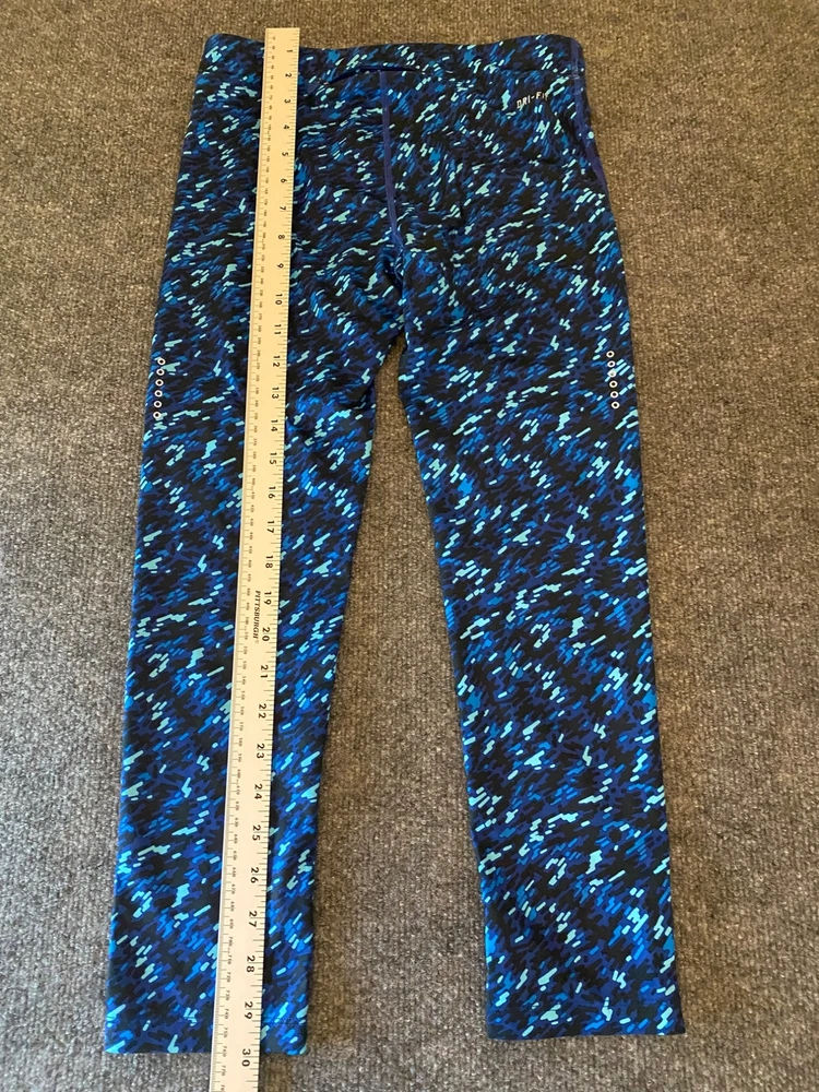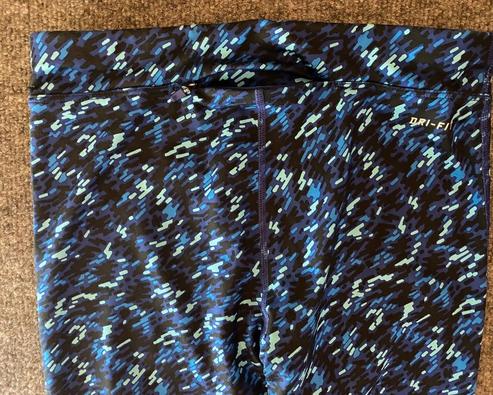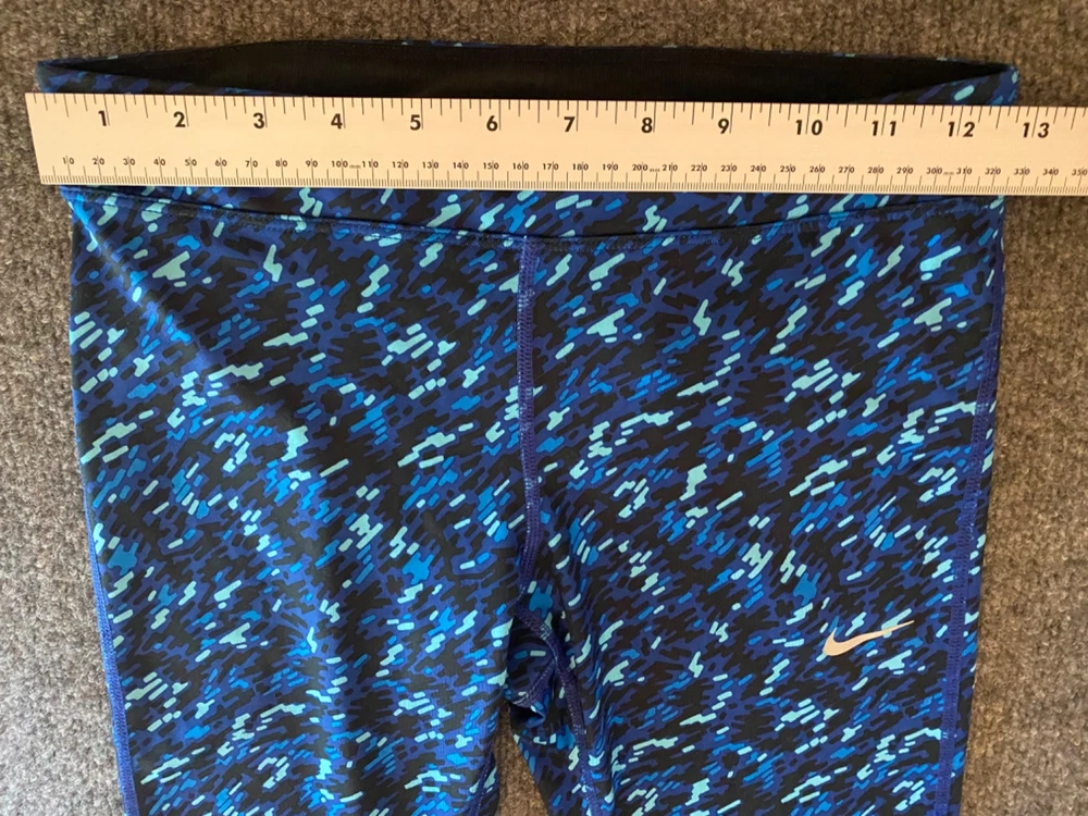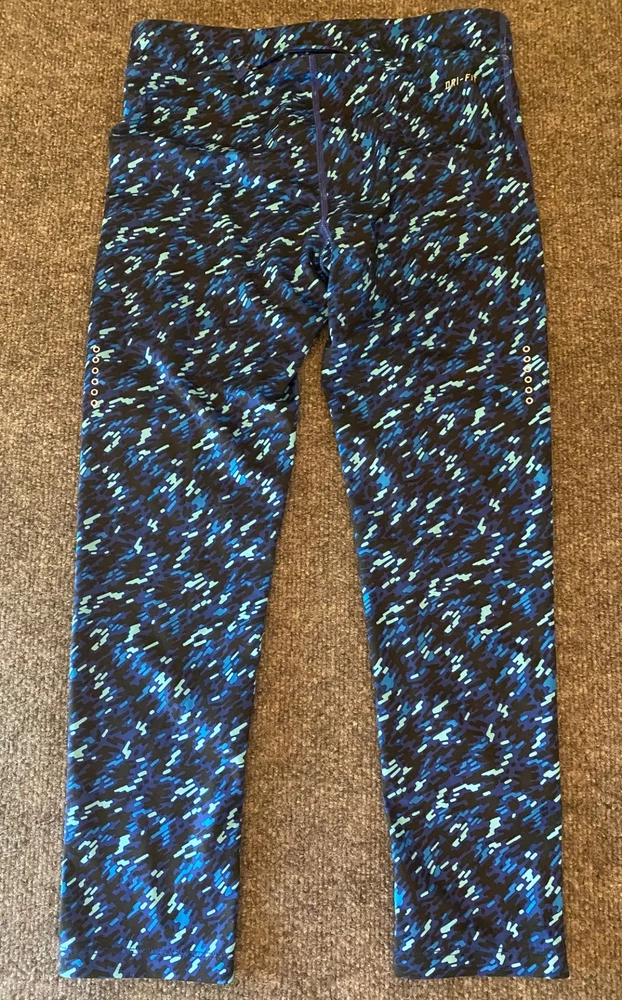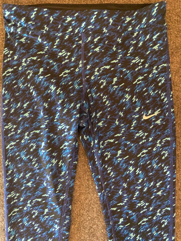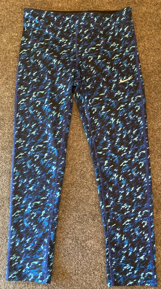 Nike Essential Tight Fit Leggings Womens XS Blue Dri-FIT Crop Length Workout Gym Good pre-owned condition. Free of rips, tears or holes. Additional signs of normal wear may be present. Please see all photos. Size: XS - Drawstring waist - Small back zippered pocket - model 849889-455; 92% polyester, 8% spandex (Measurements in photos) Ships FAST & AFFORDABLE - next business day. - All Offers welcome -