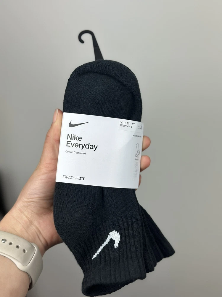 ***damage: peeling even though never worn*** The Nike Everyday Kids Dri-Fit Black Sock is designed for unisex kids aged 3 to 5 years. This sock is from the Nike brand and features a comfortable and moisture-wicking Dri-Fit material to keep little feet dry and fresh. The sock comes in a classic black color and is new with tags, making it a stylish and practical addition to any child's wardrobe.