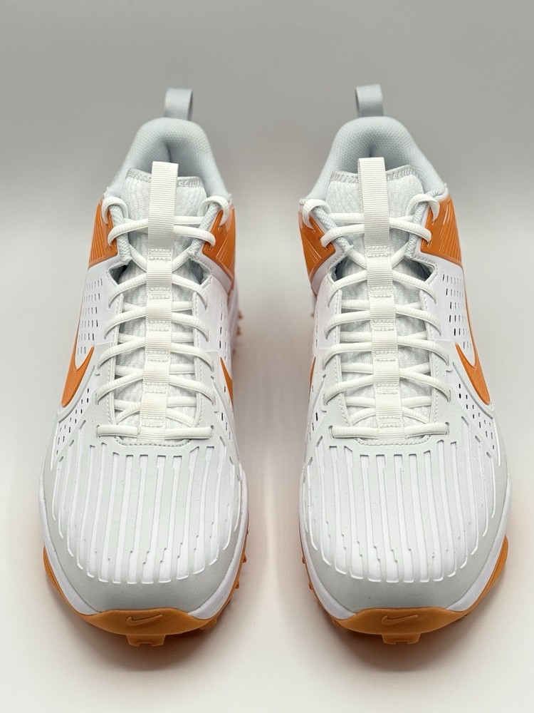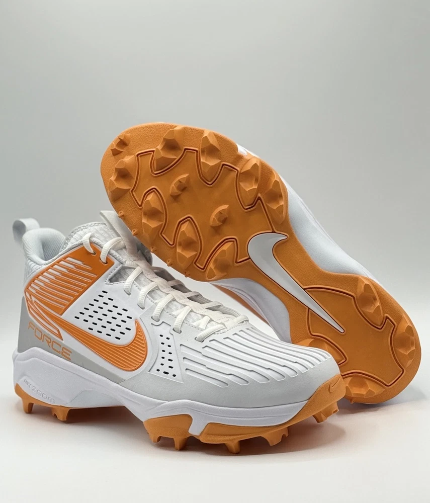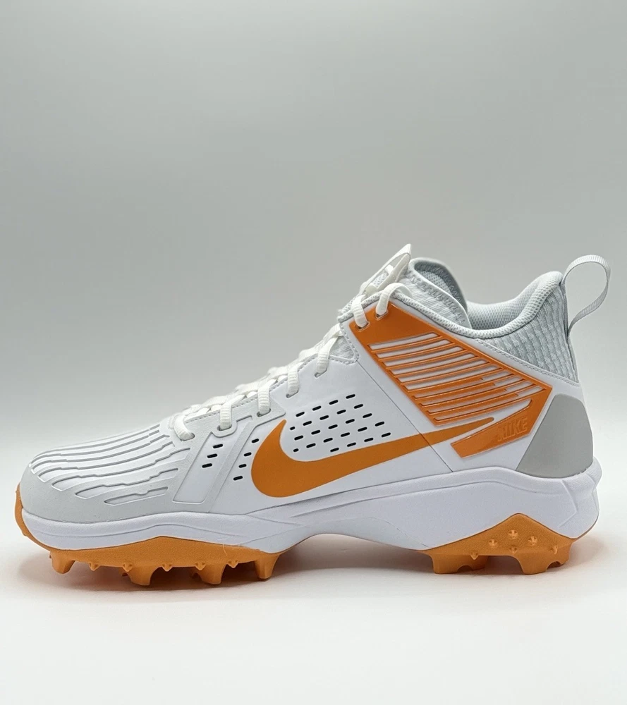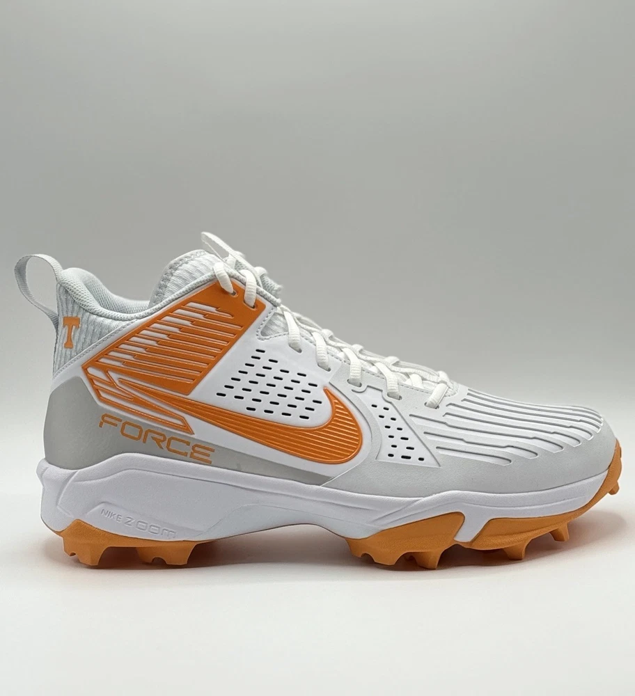 Lineman Cleats Rubber Molded Football Cleats White Orange Tennessee Volunteers Elevate your game with the Nike Force Savage Pro 3 Shark Men's Football Cleats, a top-tier choice for athletes seeking performance and style. Designed for the dynamic player, these cleats feature a high-top synthetic upper in a striking orange colorblock pattern, ensuring both durability and standout visibility on the field. The cushioned insole and breathable lining offer comfort and support, while the durable rubber outsole provides superior traction across all seasons. With a size 14 US (13 UK, 48.5 EU) fitting, these cleats are tailored for a broad range of movements, from gym training to school sports and, of course, football. The sneaker-style lace-up closure ensures a secure fit, and the limited-edition design with the style code FJ5749-103 makes them a unique addition to any athlete's collection. Whether you're representing the Tennessee Vols or pushing your limits in performance, these cleats are manufactured in Vietnam and ready to deliver exceptional results.
