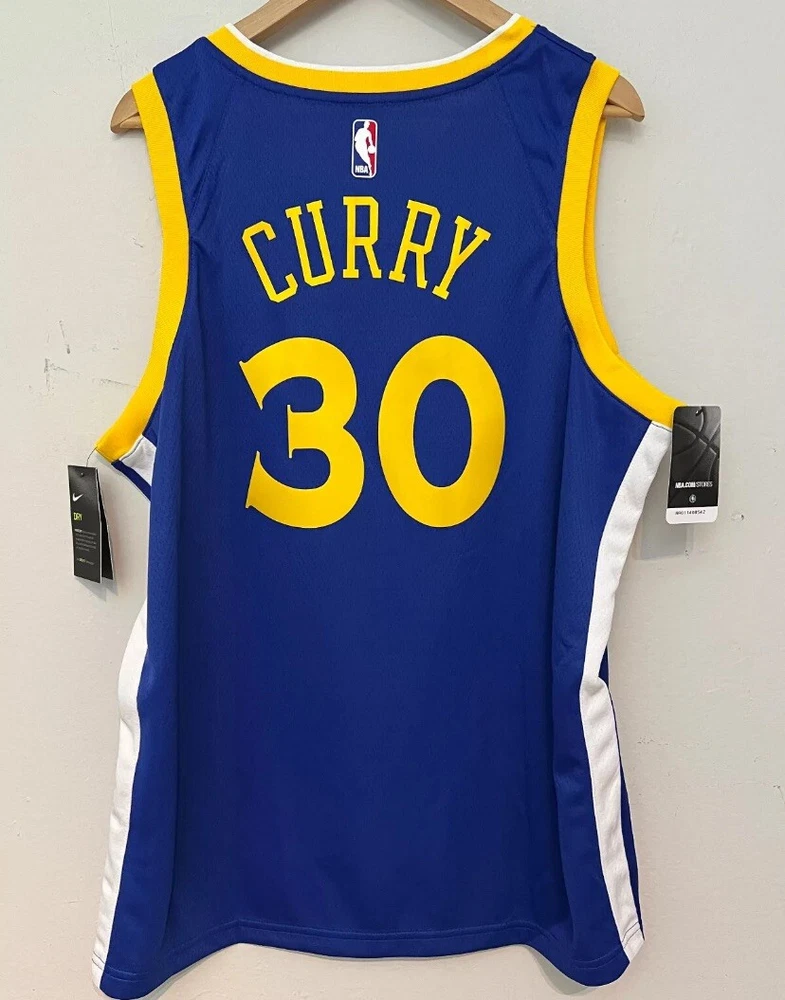 Show your love for the Golden State Warriors and Stephen Curry with this officially licensed Nike GS Warriors Icon Edition Swingman Jersey. The blue jersey features the number 23 and the team's logo on the front, with Curry's name and number on the back. It is made for men in size XL and is perfect for regular season games. This swingman jersey is perfect for any basketball fan who wants to show their support for the Golden State Warriors. It is made with high-quality materials and is designed for comfort and performance. Get ready to cheer on your favorite team and player with this iconic jersey.