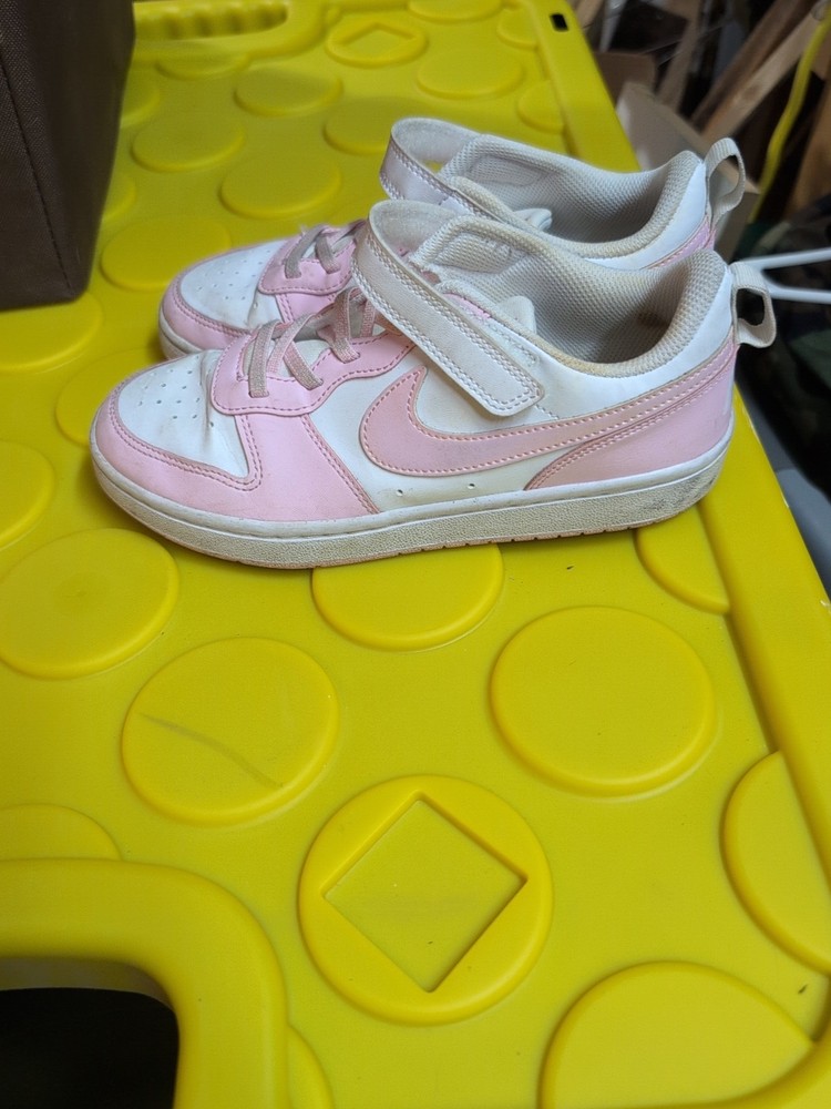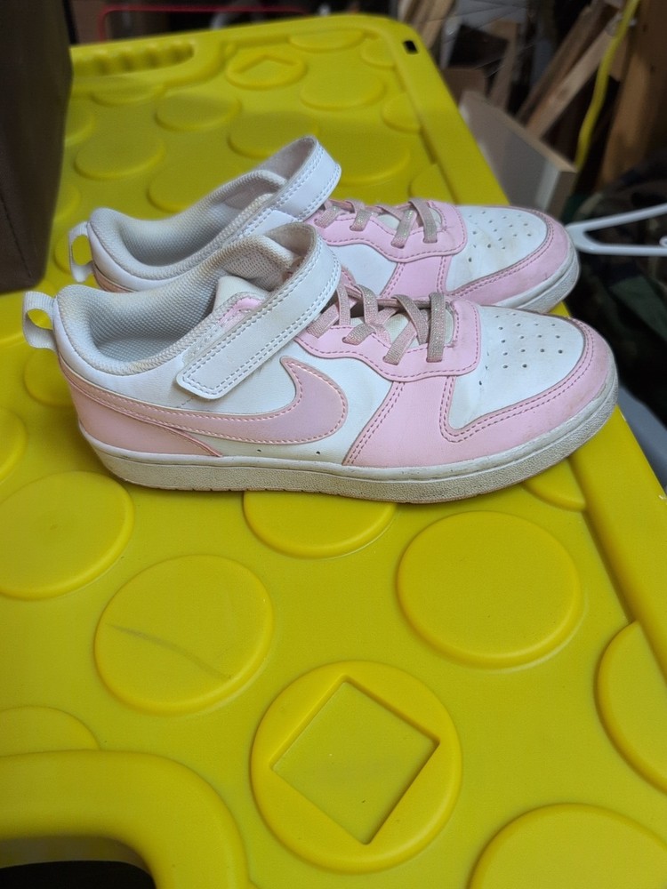 The Nike Girls Court Borough Low in size 3Y are stylish slip-on sneakers in pink and white. Designed for athletic use, these shoes feature the iconic Nike Court Borough model with a comfortable slip-on closure. Perfect for active young girls, these sneakers are both fashionable and functional, making them a great addition to any young athlete's wardrobe.