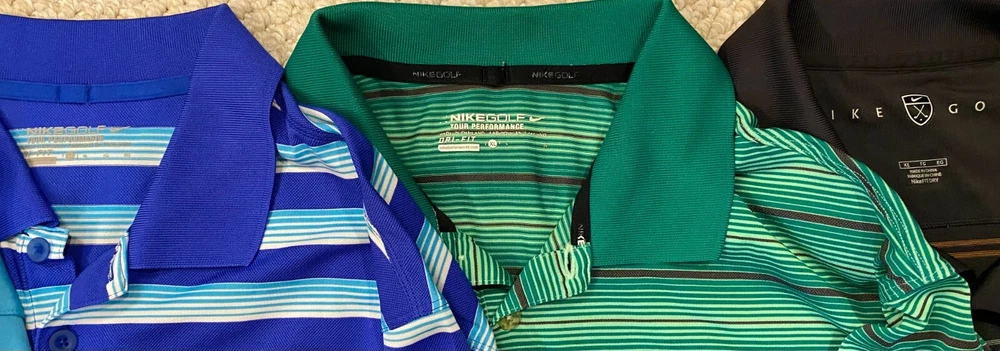 NIKE - DRI-FIT LOT OF 6 SHIRTS XL PERFORMANCE POLOS POLYESTER BE SURE TO LOOK AT ALL OF THE PICTURES! SOME HAVE COMPANY LOGO'S - COUNTRY CLUBS MEASUREMENTS: 24 INCH CHEST - PIT TO PIT 30 to 32 INCH LENGTH - TOP OF COLLAR TO HEM GUARANTEED 100% GENUINE AND AUTHENTIC YOU WILL RECEIVE ALL 6 SHIRTS *************************************************************** *We specialize in providing our Customers with High End, Brand Name Designer Clothing at an Affordable Cost....regardless of whether it's brand new or pre-owned. Our goal is for customer satisfaction!! If you have any questions or concerns feel free to reach out and contact us All Pre-Owned Clothing is Properly Cleaned & Laundered as per ebay policy standard
