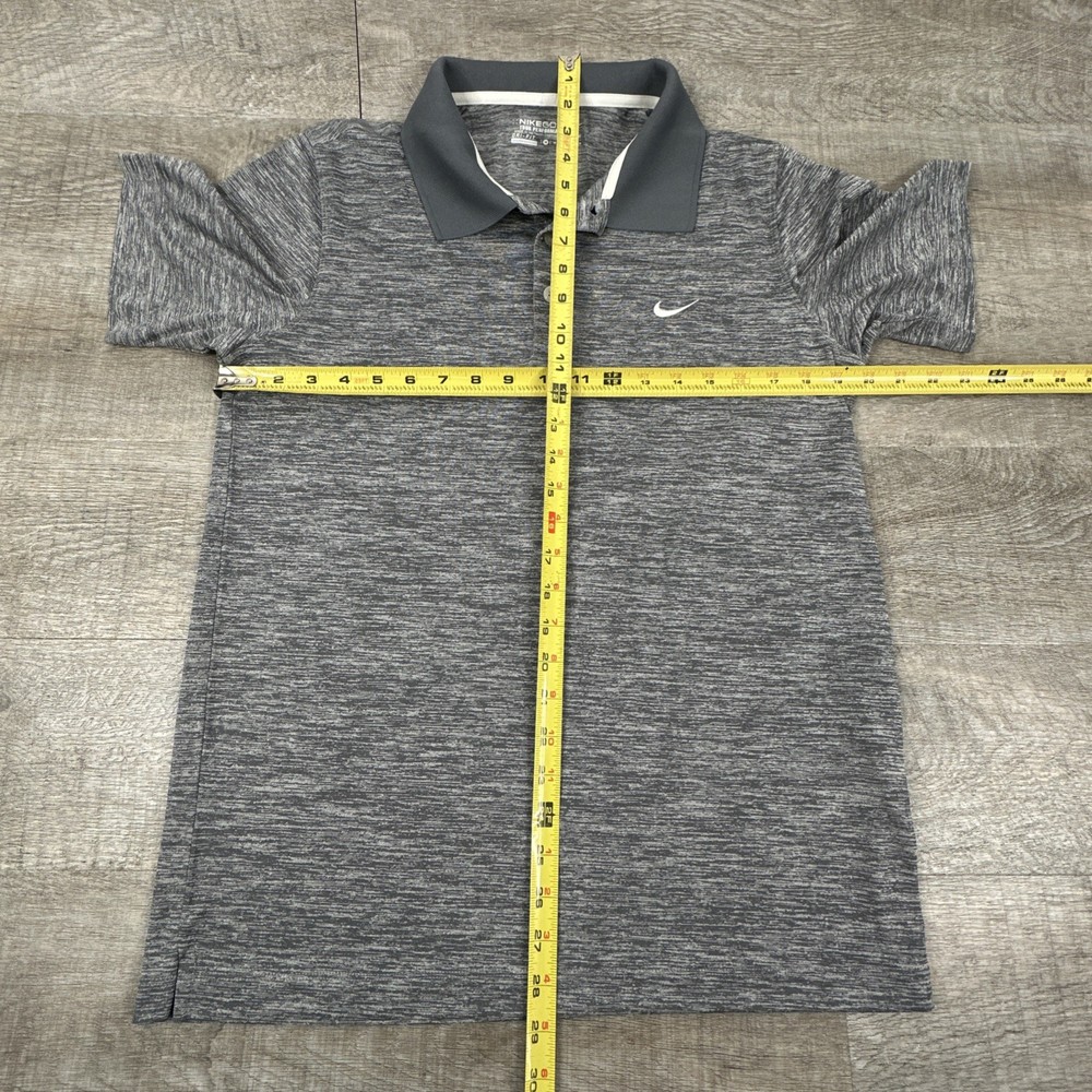 The Nike Golf Men Polo Shirt in Space Grey Heathered is a stylish and functional piece of clothing designed for the golf enthusiast. Made with Dri-FIT technology, this short sleeve polo is breathable and comfortable, making it perfect for active wear during your golf games. The collared neckline, logo accents, and medium fabric wash give it a classic look, while the polyester material and regular fit provide a comfortable and functional feel. Whether you're hitting the links in the summer, fall, or spring, this Nike Golf polo shirt is sure to enhance your performance on the course.