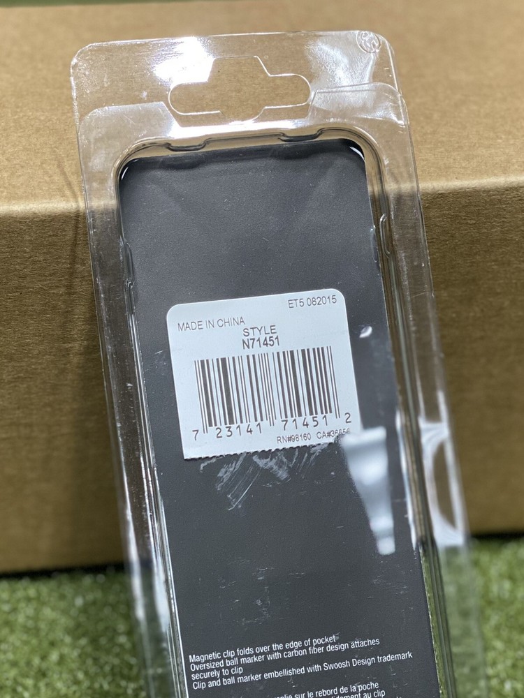 We are a reputable golf company that has been in business in St. Louis, Missouri since 1975. We have been doing this for 40 years because we do things right the first time. WE HAVE THE FASTEST SHIPPING ON EBAY! Don't believe us? Check out our Feedback. If you have questions, please feel free to ask. As always, thank you for looking. NEW! Nike Money Clip & Magnetic Ball Marker Set COLOR: Black CONDITION: Brand New in Factory Plastic! (10/10) Magnetic clip folds over the edge of pocket . 27mm ball marker with carbon fiber design attaches securely to clip . Clip and ball marker embellished with Swoosh Design trademark. Logo cresting compatible.