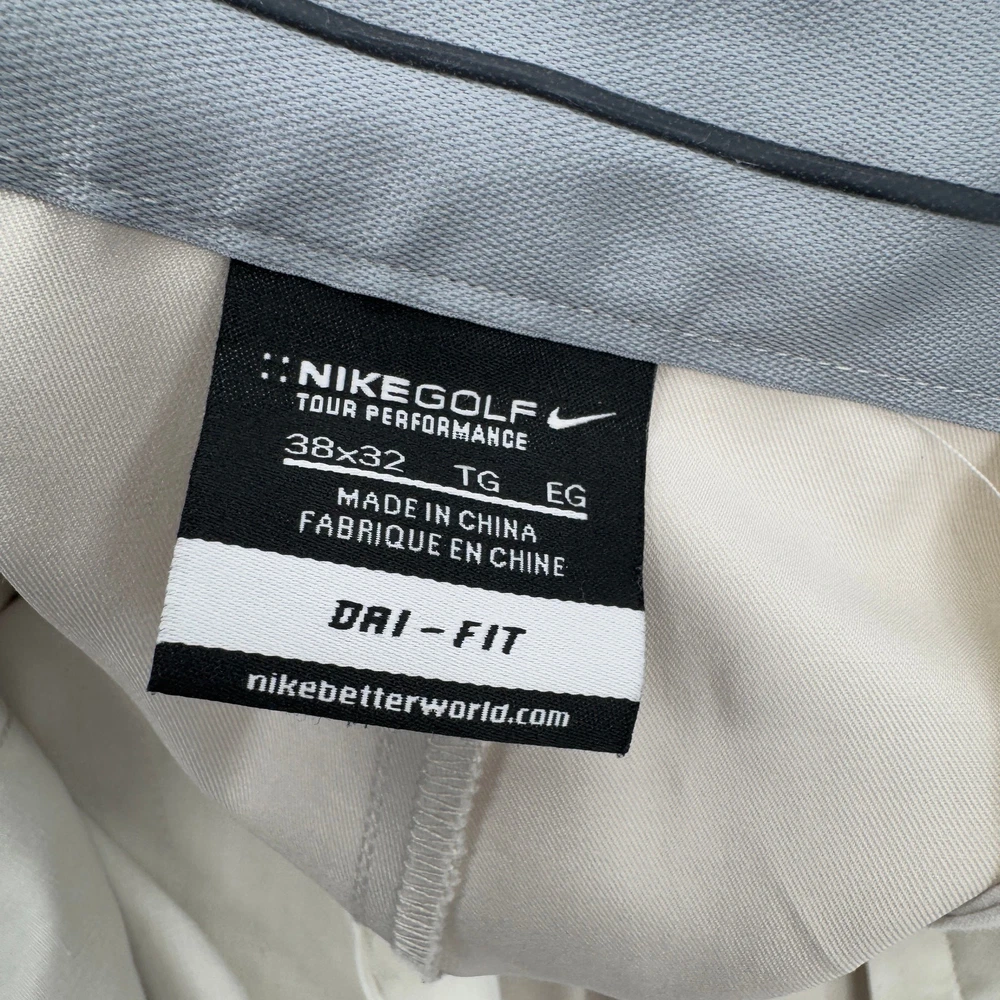 Type: Pants Size Type: Regular Size: 38 Garment Care: Machine Washable Waist Size: 39 in Brand: Nike Inseam: 32 in Features: Pockets Material: Polyester, Spandex Department: Men Color: Tan Style: Golf Pant Seller Notes: “Very good condition, see all pictures for views.”