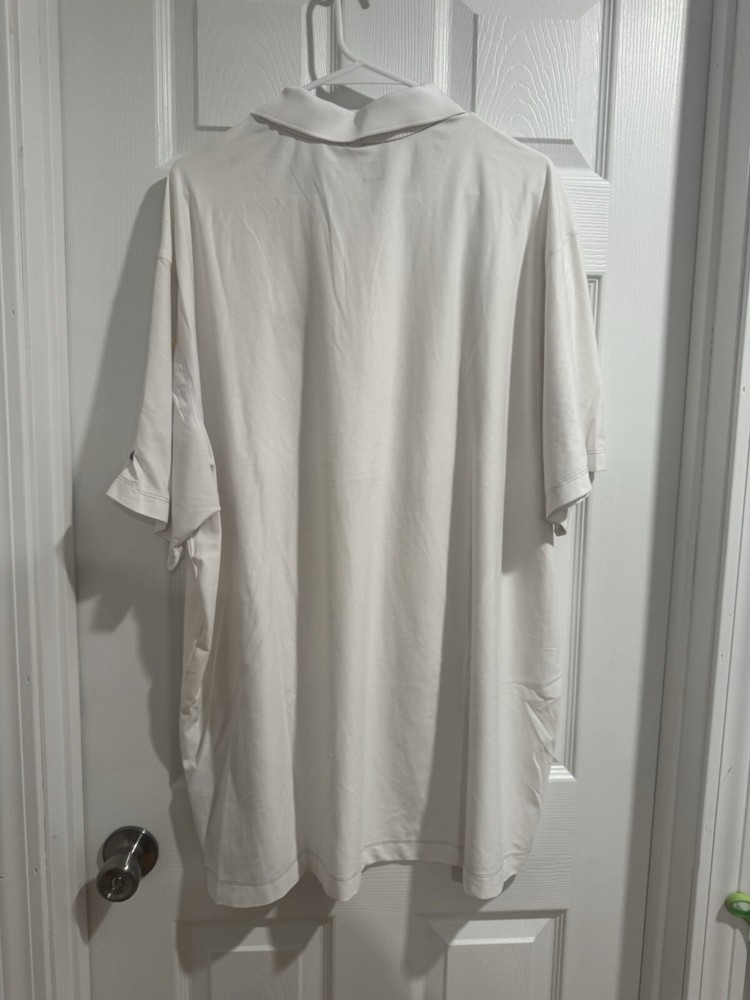 The Nike Golf Polo Shirt for Men in size XXL features a solid white color with an embroidered Mickey Mouse design, making it a fun and stylish choice for golf enthusiasts. Made of polyester with Nike Dri-Fit technology, this polo is suitable for travel, activewear, and casual occasions, offering breathability and comfort. The collared neckline, short sleeves, and regular fit provide a classic and sporty look, perfect for men who want to showcase their love for Disney and golf in one stylish garment.