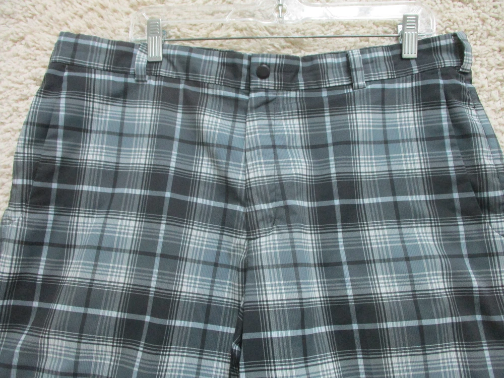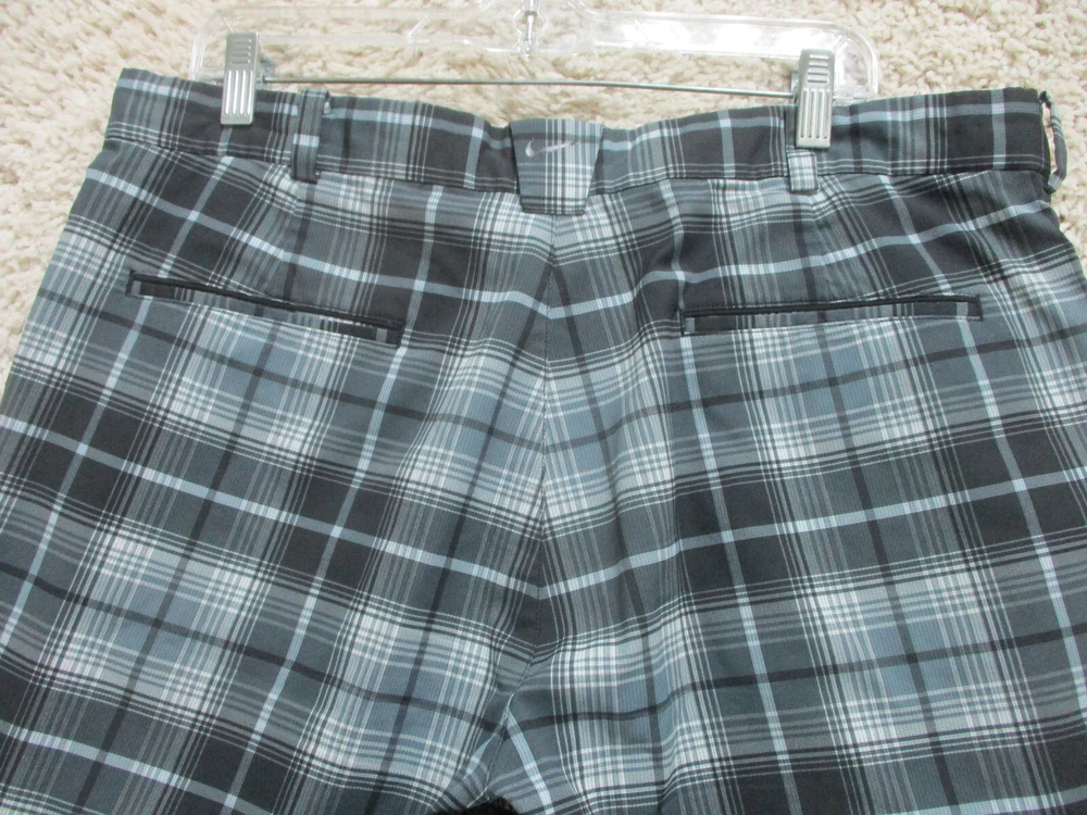 Nike Golf Shorts 36 Mens Blue Plaid Dri Fit Chino Pockets Tour Perfomance Swoosh