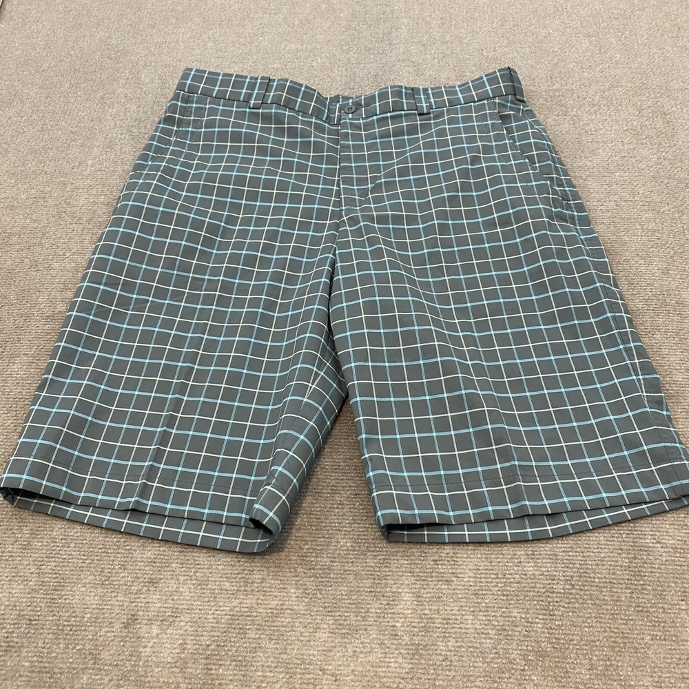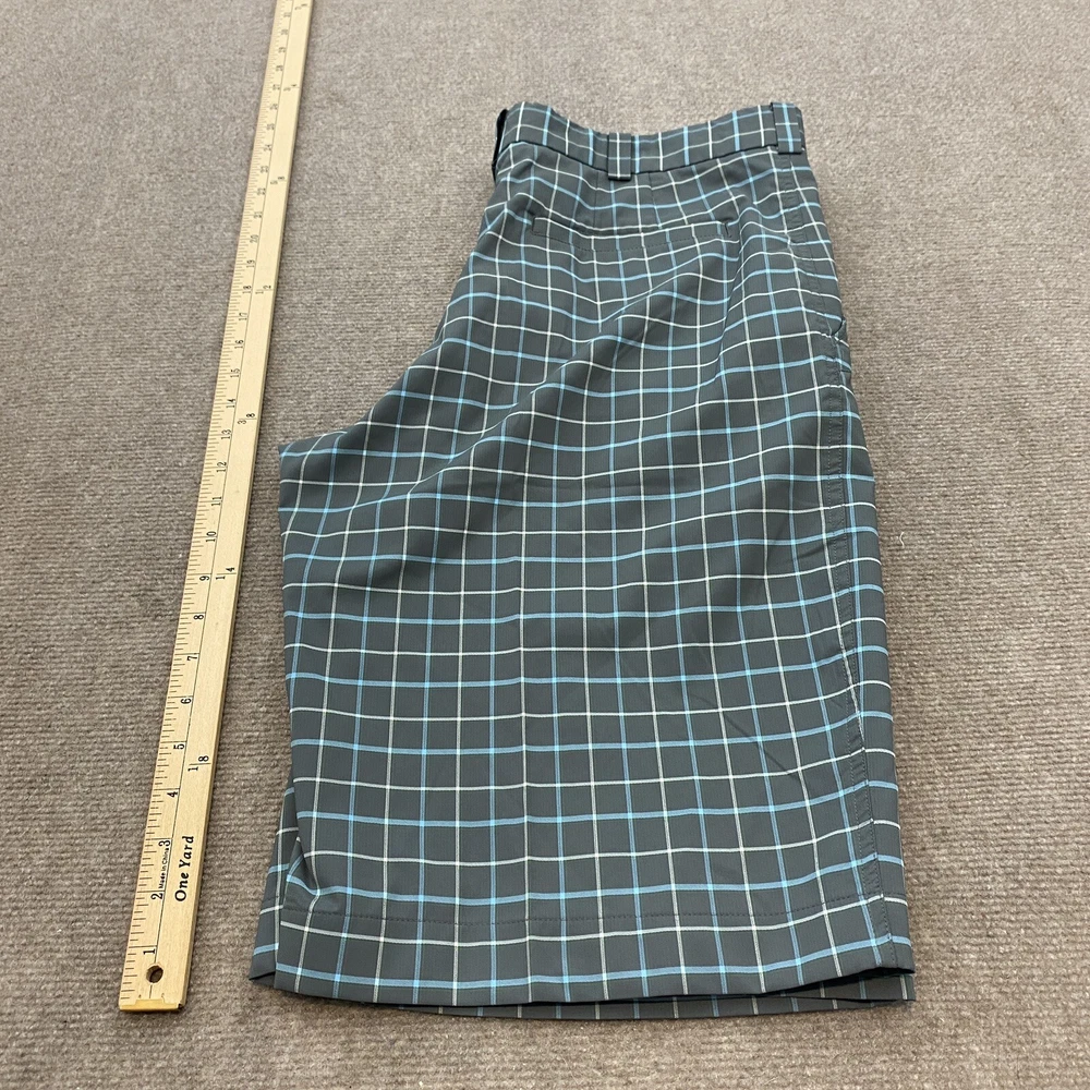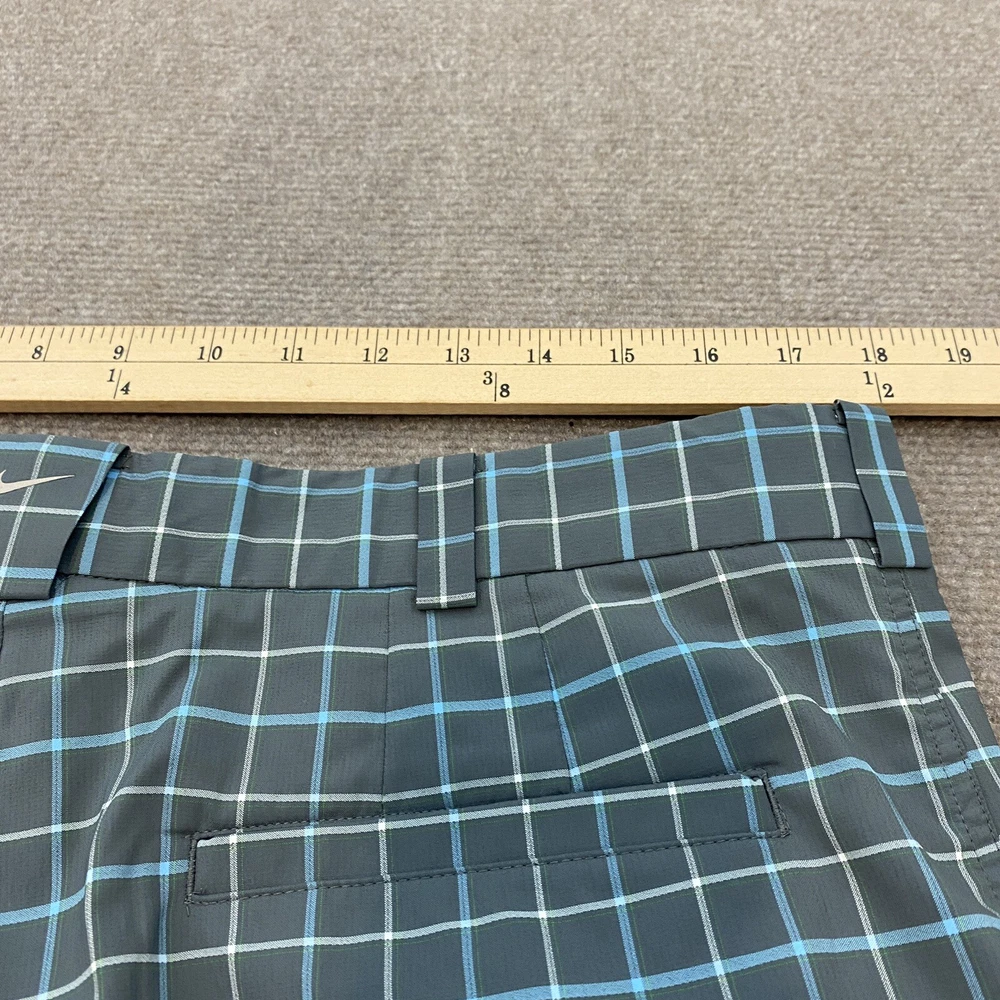Nike Golf Shorts Mens 34 Gray Blue Plaid Stretch Dri Fit Casual Outdoor Golfer