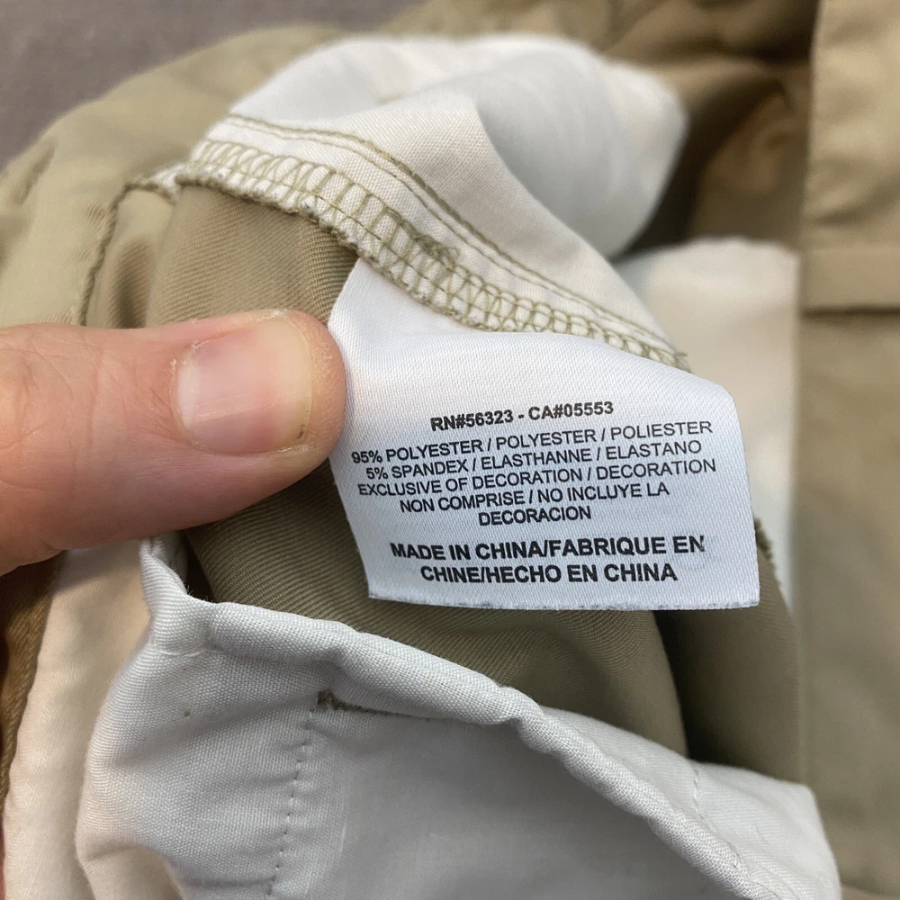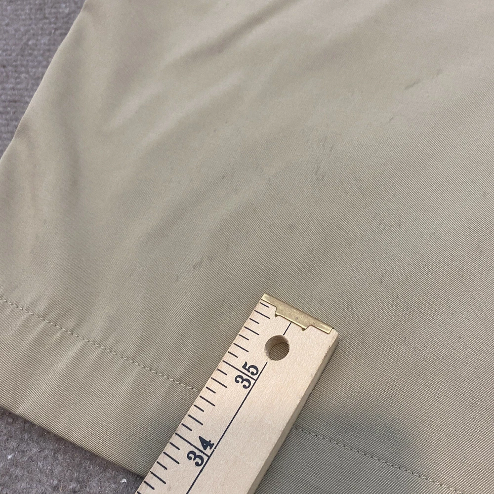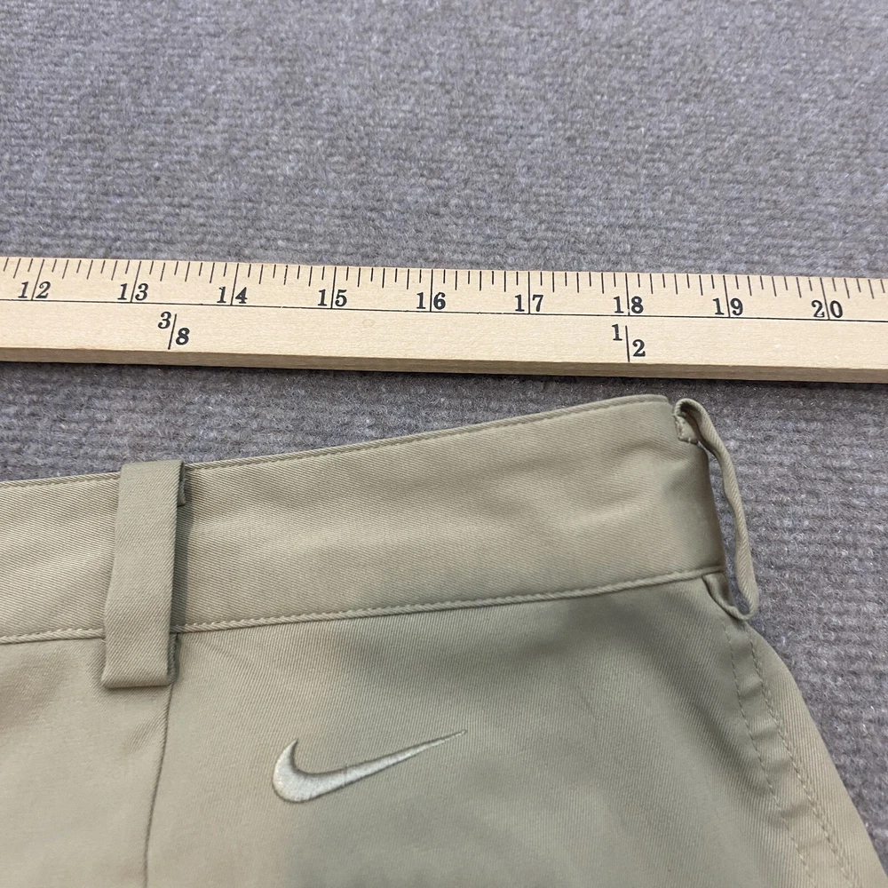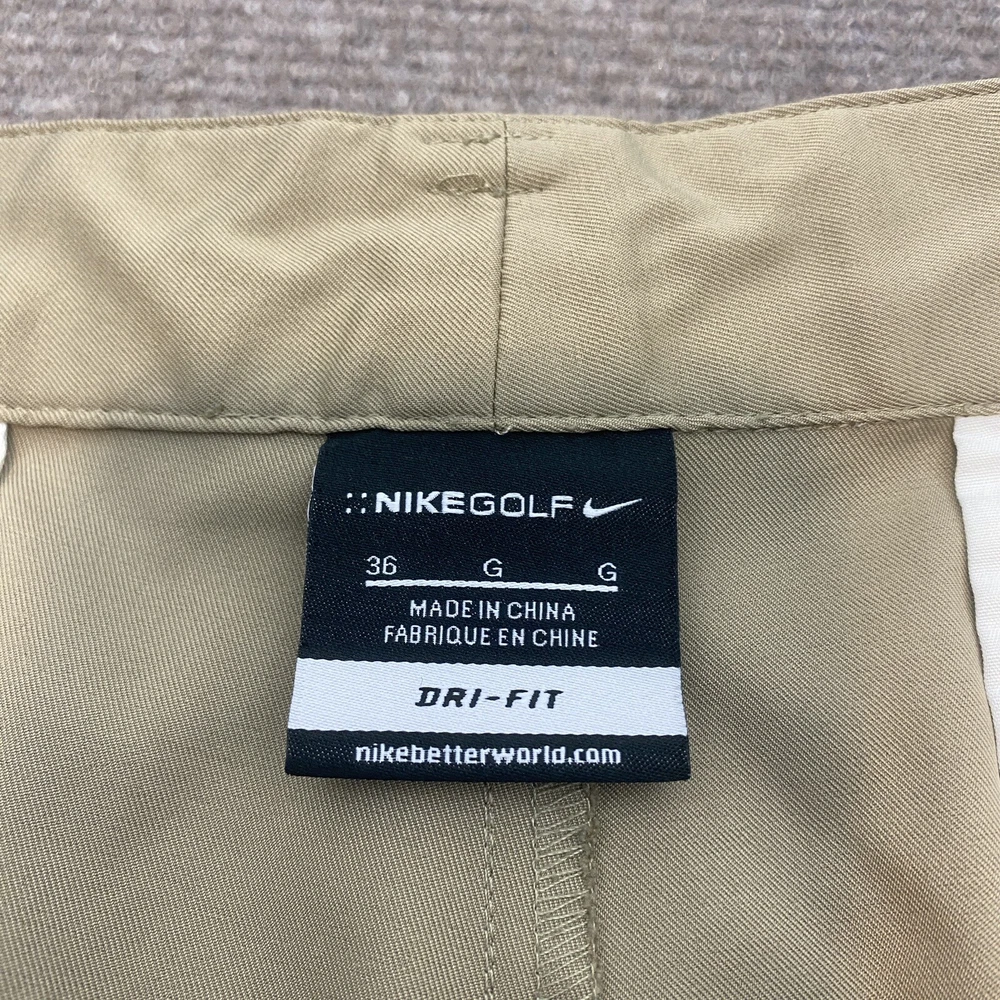 Waist Size: 36 in Material: Polyester, Spandex Character: Golfer Accents: Logo Occasion: Casual Vintage: No Fit: Regular Fabric Type: Microfiber Closure: Zip Brand: Nike Pattern: Solid Size Type: Regular Style: Chino Color: Beige Size: 36 Country/Region of Manufacture: China Department: Men Theme: Outdoor Fabric Wash: Dark Front Type: Flat Front Features: Easy Care, Lightweight, Moisture Wicking, Stretch