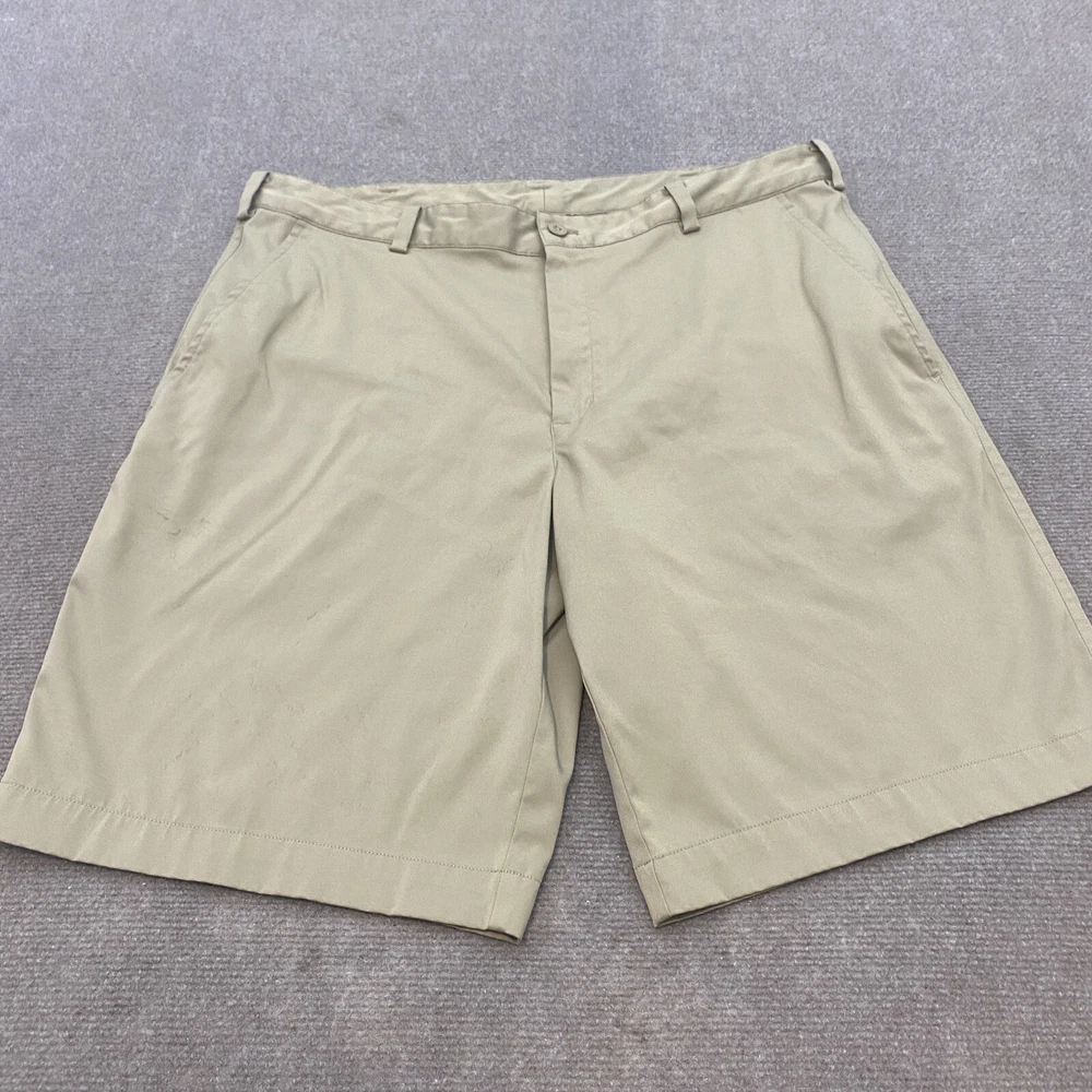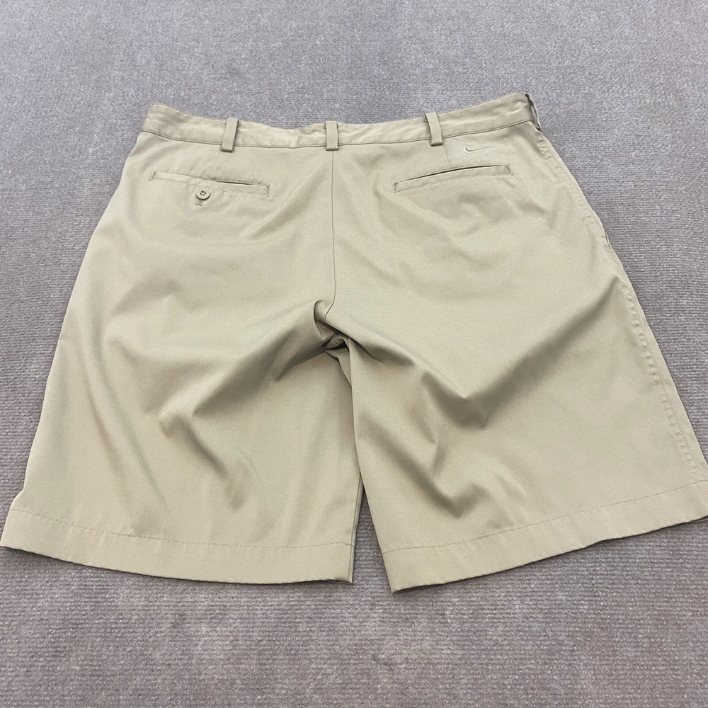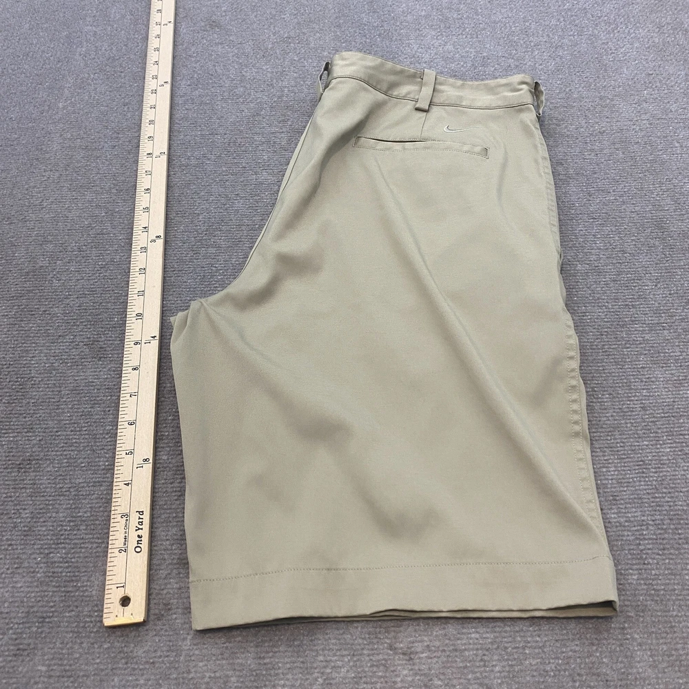 Nike Golf Shorts Mens 36 Beige Dri Fit Casual Flat Front Outdoor Golfer Logo