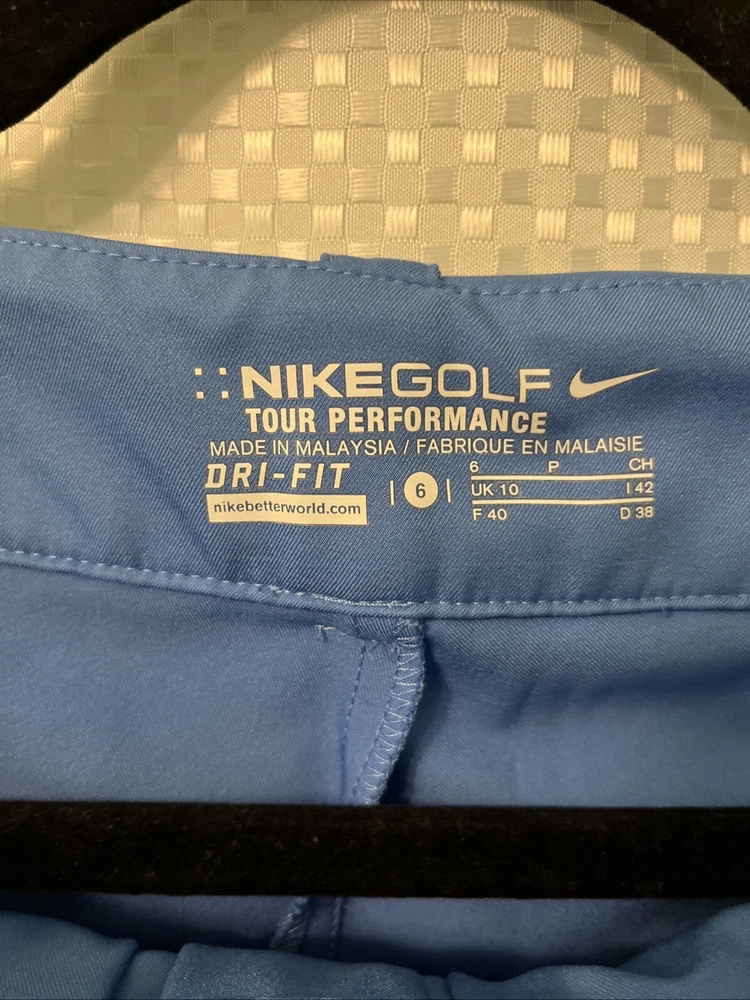 Elevate your golf game with this stylish Nike Golf Tour Performance skirt. Designed with dri-fit technology, it will keep you cool and comfortable throughout your round. The baby blue color is both chic and versatile, making it a perfect addition to any golfer's wardrobe. This athletic skirt is perfect for any occasion, whether you're on the course or just practicing your swing. It's made with high-quality materials and is built to last, so you can trust it will be a reliable part of your golf gear for years to come. Don't miss out on this must-have item for any serious golfer!