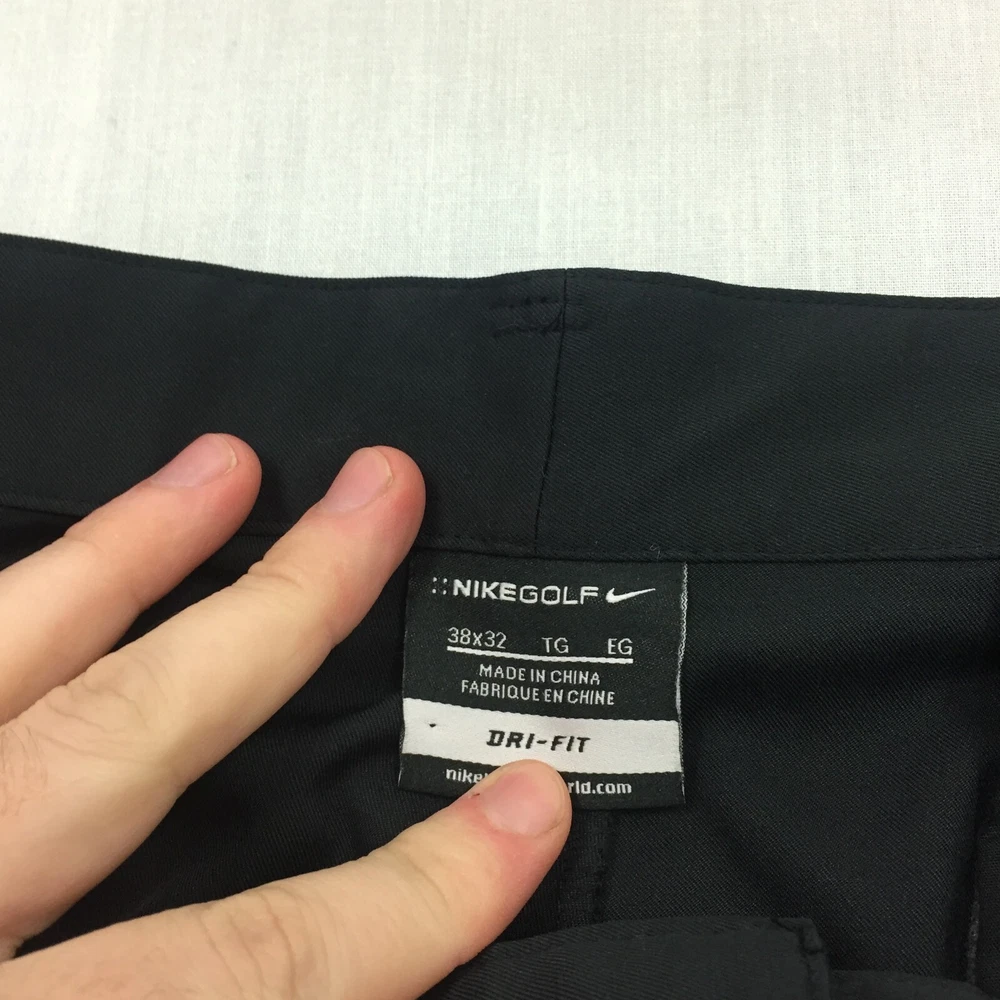 Garment Care: Machine Washable Size: 38 Pattern: No Pattern Country/Region of Manufacture: Unknown Accents: Button Pocket Type: Coin Pocket Material: Cotton Blend Fabric Type: Canvas Vintage: No Style: Chino Type: Trousers Fit: Regular Waist Size: 38 in Handmade: No Leg Style: Straight Brand: Nike Rise: Mid (10-12 in) Size Type: Regular Closure: Button Inside Leg: 32 in Occasion: Business, Casual, Travel Department: Men Colour: Black Season: Autumn, Spring, Summer, Winter Personalise: No Seller Notes: “Good used condition, check below for full description & photos.”
