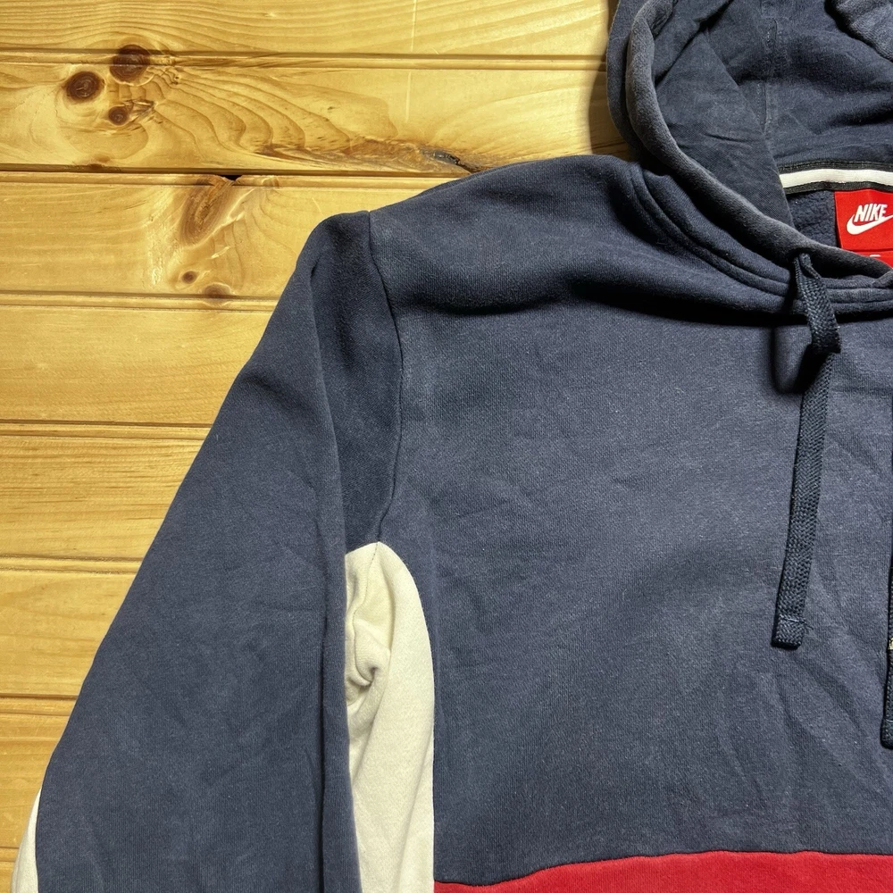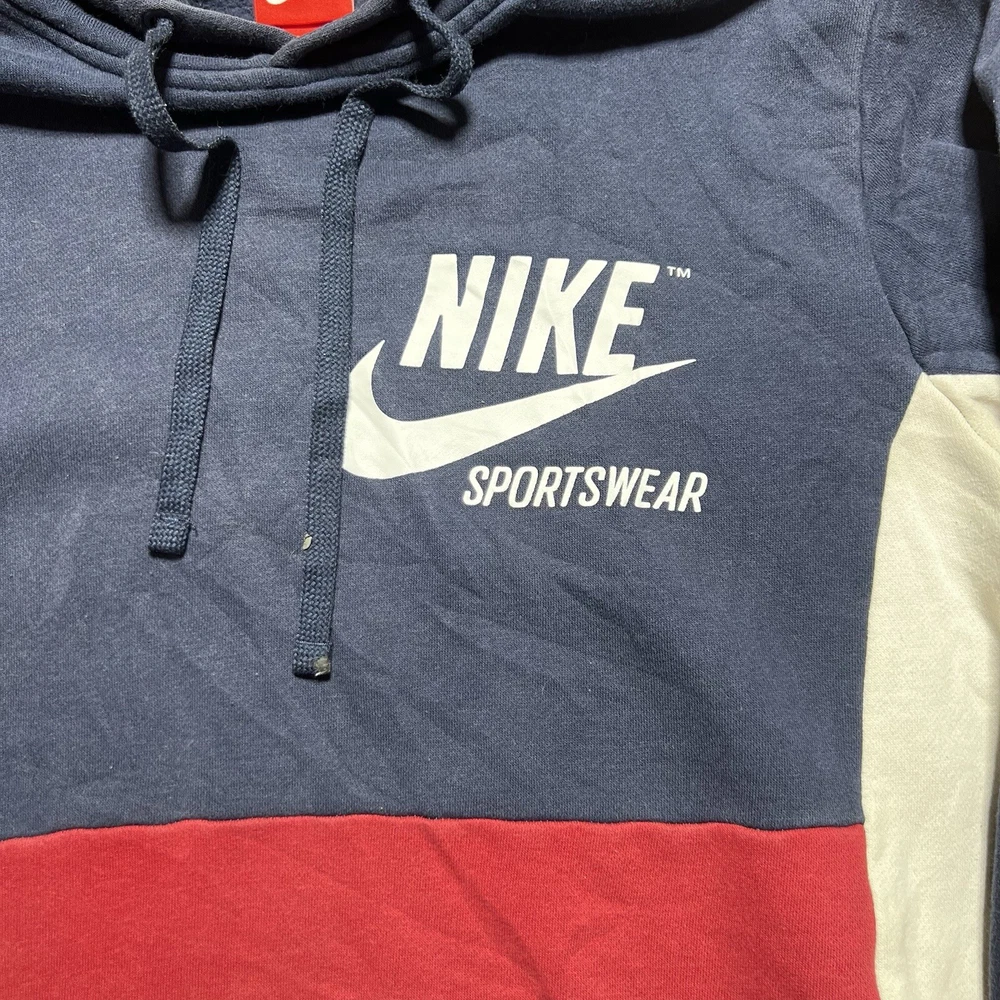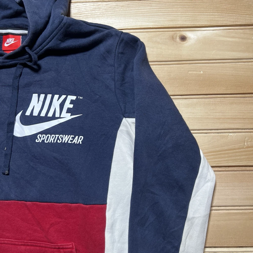 Nike Hoodie Mens Spell Out Swoosh Sportswear Pullover Hoodie Size Small Red Blue