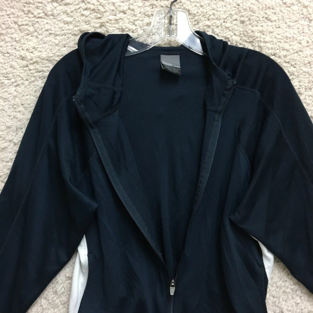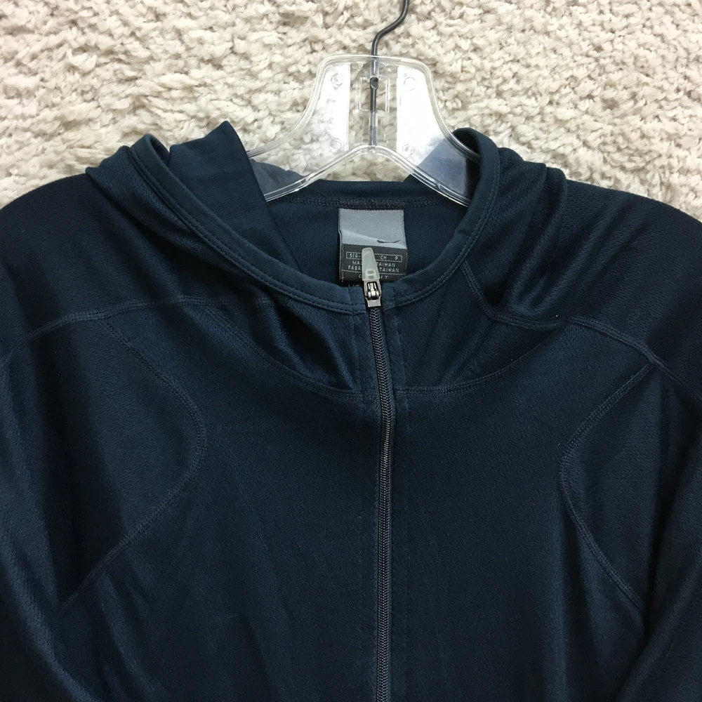Theme: Logo, Outdoor, Sports Size: S Sleeve Length: Long Sleeve Garment Care: Machine Washable Type: Hoodie Features: All Seasons, Easy Care, Hooded, Pockets, Stretch Neckline: Crew Neck Season: Fall, Spring, Summer, Winter Occasion: Activewear, Casual Product Line: Nike Dri-FIT Color: Blue Style: Full Zip Size Type: Regular Brand: Nike Closure: Zip Country/Region of Manufacture: Taiwan Fabric Type: Blended Fabric Seller Notes: “Good Used Condition. Please, See Pictures for Full Condition and Measurements.” Performance/Activity: Running & Jogging, Walking Material: Polyester Pattern: Solid Accents: Logo, Zipper Fit: Regular Department: Women