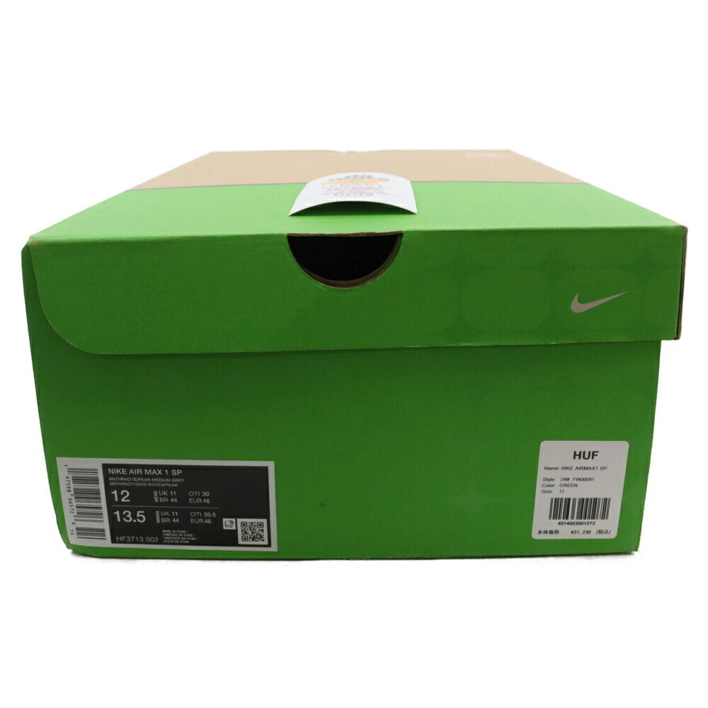 Item Title Nike Size Huf Air Max 1 Anthracite/Pear Huff Anthracite Pair Low Cut Payment Supports managed payments Please pay within 5 days after auction is finished. About Us We are located in Japan. It's our pleasure to make you happy by proposing our recommend item. If you have any questions or request about items, please feel free to ask us. International Buyers - Please Note: -Import duties, taxes, and charges are not included in the item price or shipping charges. These charges are the buyer's responsibility. -Please check with your country's customs office to determine what these additional costs will be prior to bidding/buying. -These charges are normally collected by the delivering freight (shipping) company or when you pick the item up - do not confuse them for additional shipping charges. -We do not mark merchandise values below value or mark items as - gifts - The US and International government regulations prohibit such behavior. Thank you for your understanding.