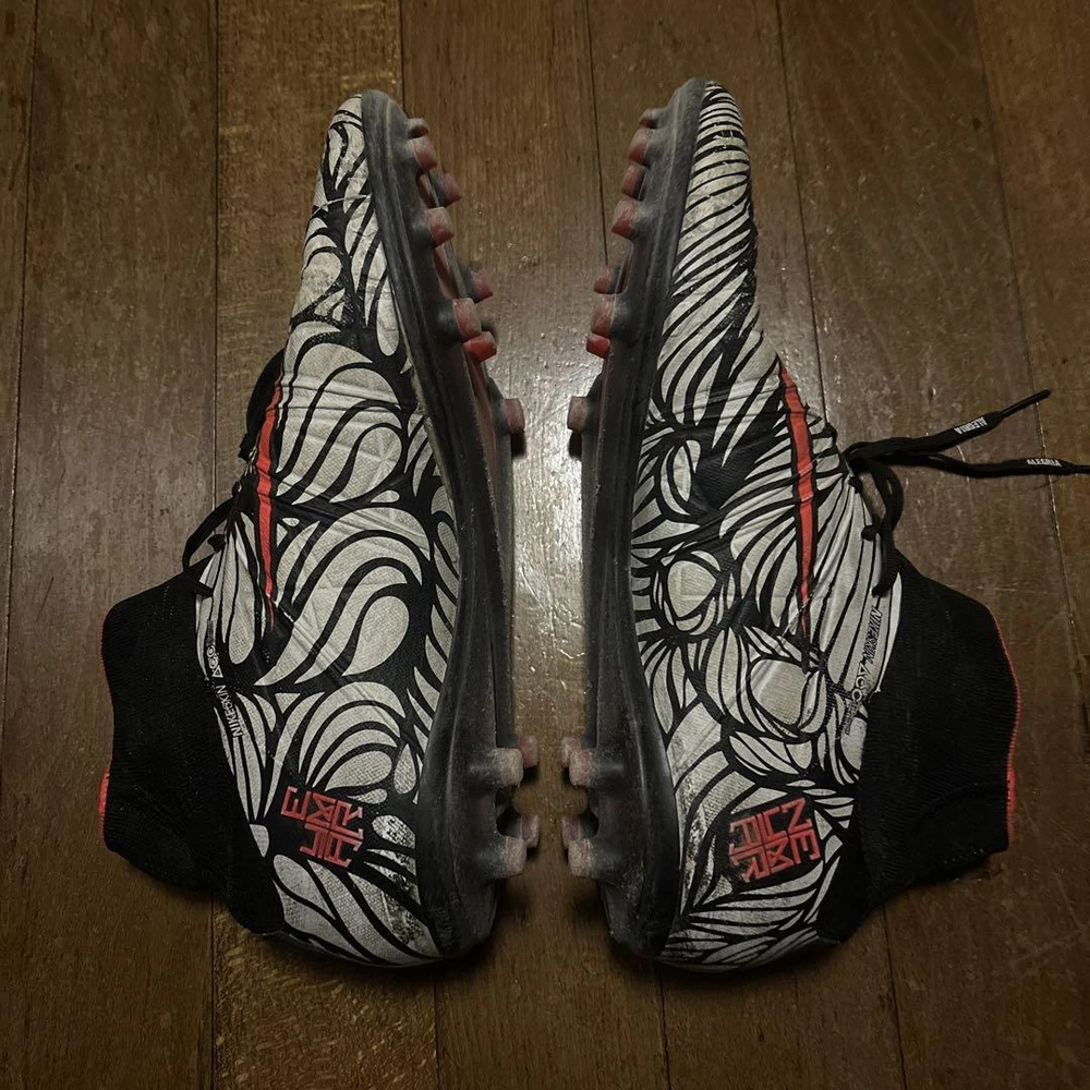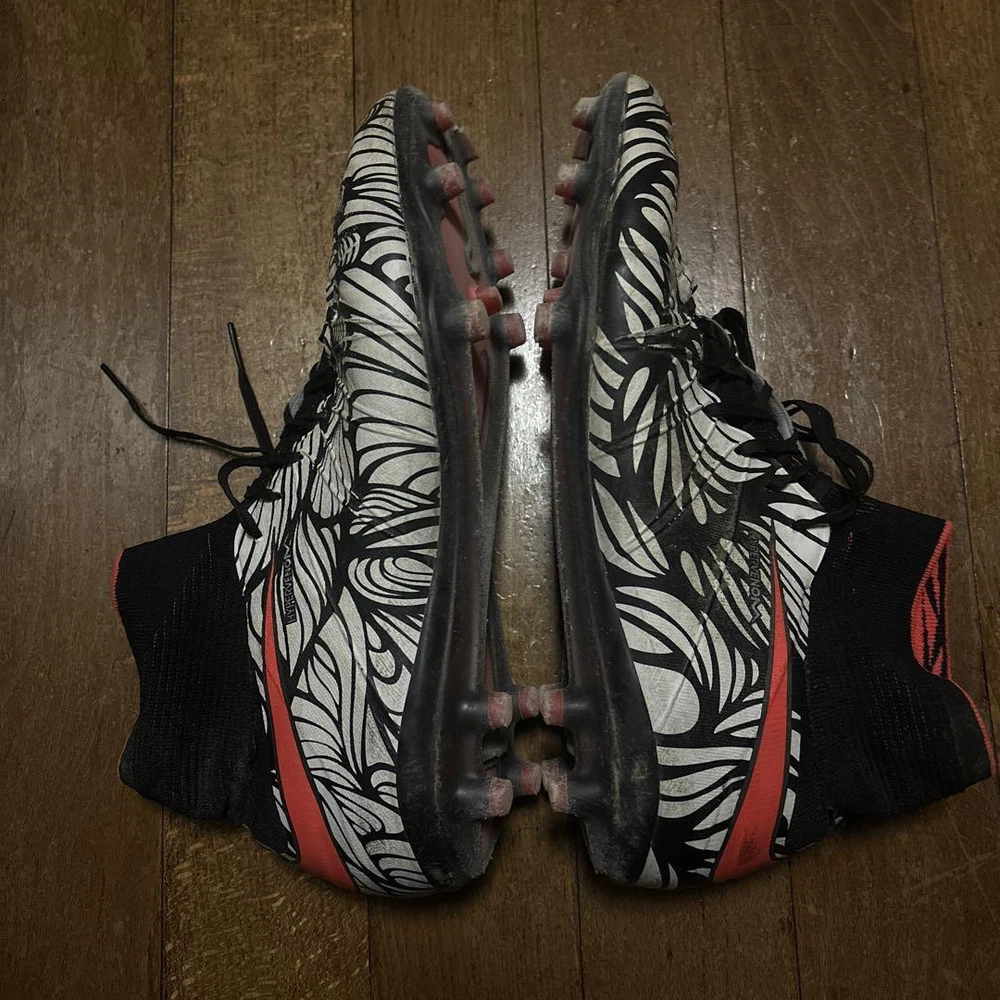 Nike Hypervenom Zebra Neymar Soccer Cleats US 9.5 - Good Condition Key Features **Product Description:** - Brand: NIKE - Product Type: Soccer Cleats - Model: Hypervenom Neymar Edition - Size: US 9.5 (27.5 cm) **Detailed Features:** - Color: Zebra Print - Condition: Used, with approximately 70% of the points remaining. One of the included bags is partially connected but still usable. **Item Specifics:** - C:Brand: NIKE - C:Model: Hypervenom Neymar Edition - C:US Size: 9.5 - C:Country/Region of Manufacture: Not specified - Quantity: 1 - Currency: Not specified - BestOfferEnabled: Not specified - BuyerRequirements: LinkedPayPalAccount: Not specified Specifications Brand No Brand Country Japan Product Description Item Title Nike Hypervenom Zebra Neymar Payment Supports managed payments Please pay within 5 days after auction is finished. About Us We are located in Japan. It's our pleasure to make you happy by proposing our recommend item. If you have any questions or request about items, please feel free to ask us. International Buyers - Please Note: -Import duties, taxes, and charges are not included in the item price or shipping charges. These charges are the buyer's responsibility. -Please check with your country's customs office to determine what these additional costs will be prior to bidding/buying. -These charges are normally collected by the delivering freight (shipping) company or when you pick the item up - do not confuse them for additional shipping charges. -We do not mark merchandise values below value or mark items as - gifts - The US and International government regulations prohibit such behavior. Thank you for your understanding.