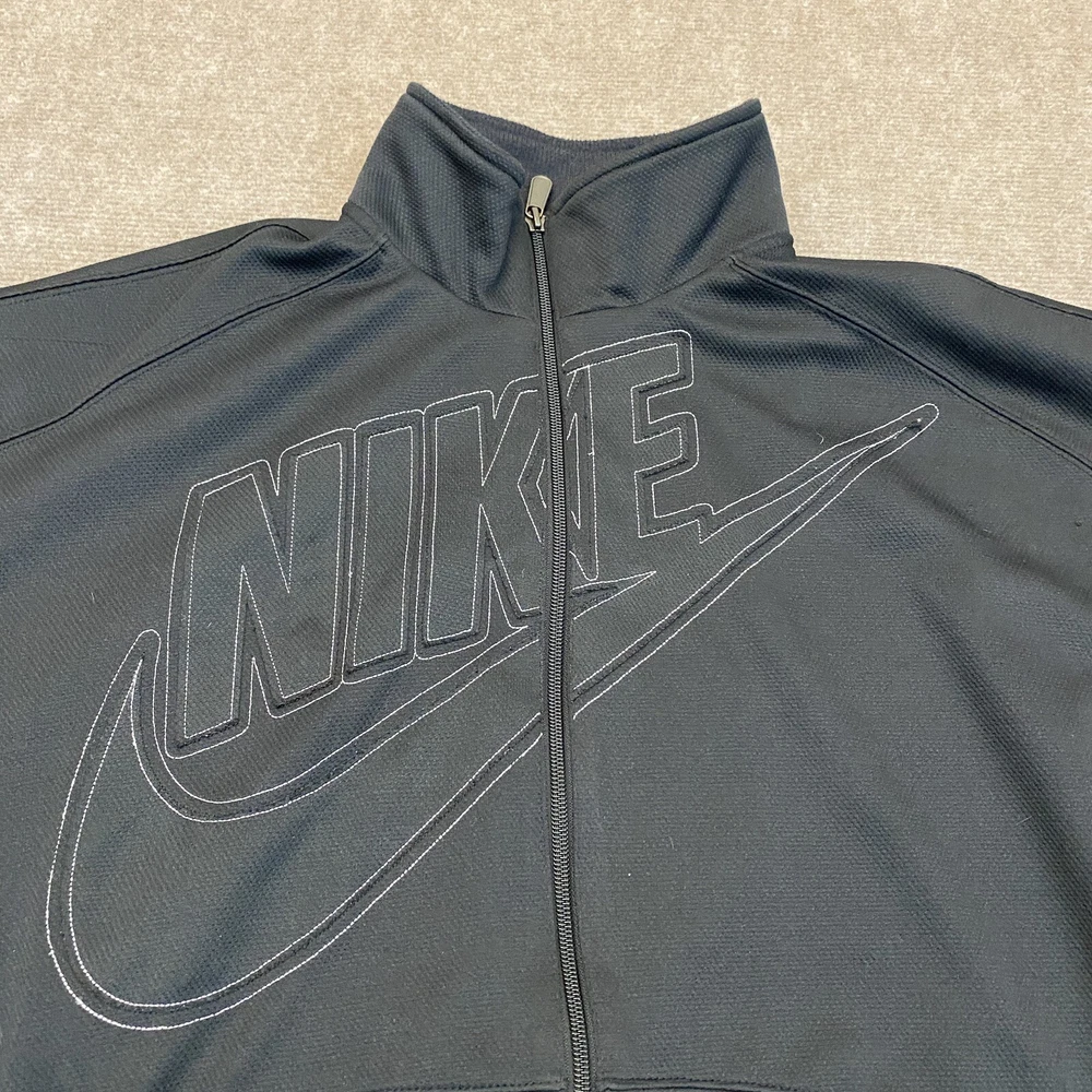 Department: Men Lining Material: Polyester Fabric Type: Softshell Insulation Material: Polyester Vintage: Yes Size: L Theme: 90s Color: Black Accents: Logo Fit: Regular Features: Full Zip Pattern: Solid Closure: Zip Occasion: Casual Model: Nike Dri-Fit Size Type: Regular UPC: Does not apply Performance/Activity: Gym & Training, Walking Brand: Nike Outer Shell Material: Polyester gtin13: Does not apply Style: Windbreaker Type: Jacket