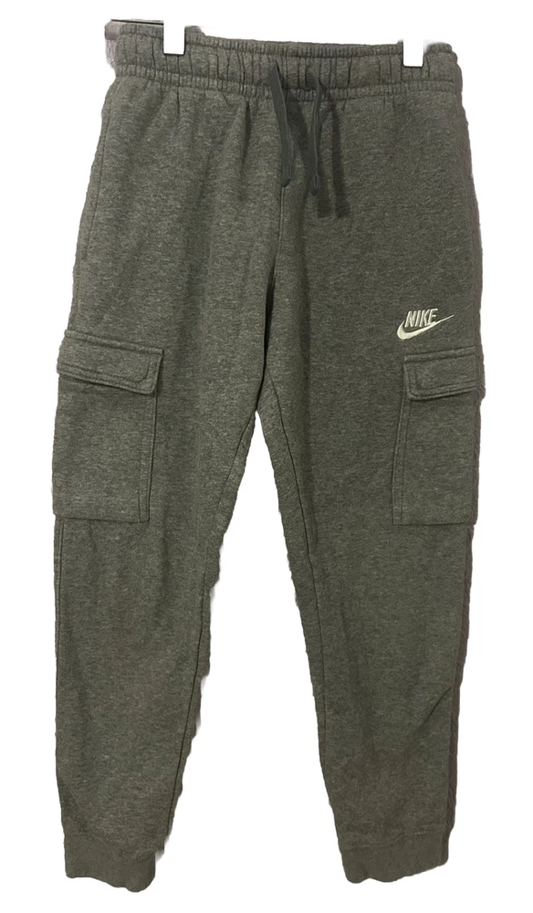 Features: Comfort, Elastic Waist Performance/Activity: Running & Jogging Compression Area: Leg Color: Gray Closure: Pull On Leg Style: Tapered Personalize: No Style: Jogger Handmade: No Fabric Type: Fleece Garment Care: Machine Washable Pattern: Solid Vintage: No Theme: Sports gtin13: Does not apply Material: 80% Cotton, 20% Polyester Waist Size: 22 in Brand: Nike Type: Pants UPC: Does not apply Occasion: Activewear Season: Fall, Spring, Summer, Winter Department: Men Size: S Fit: Regular Size Type: Regular Country/Region of Manufacture: Cambodia