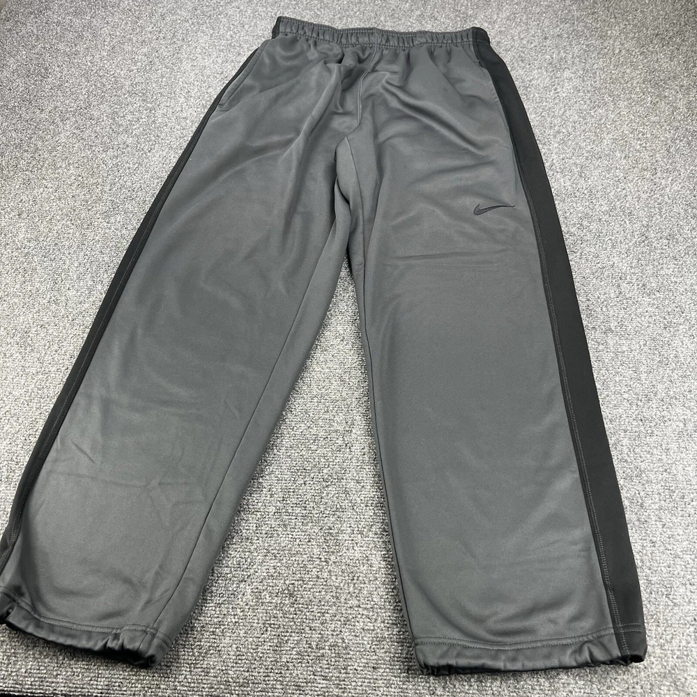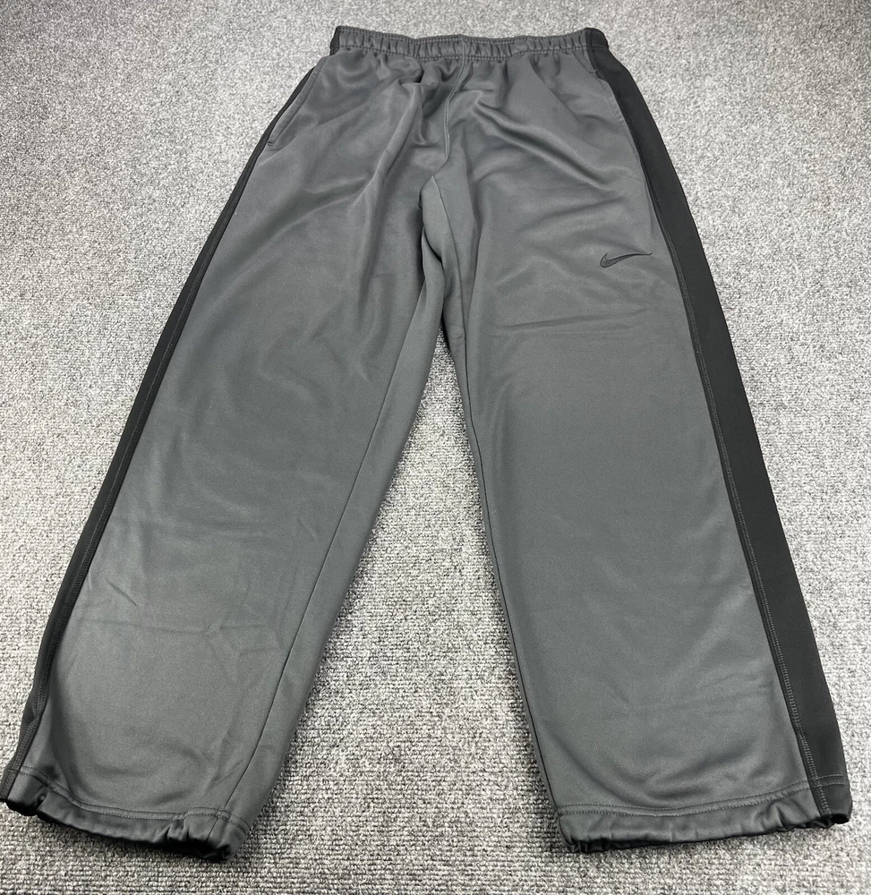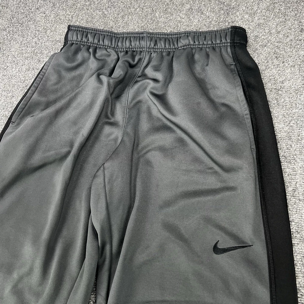 Fit: Regular Style: Track Pants Inseam: 34 in Compression Area: Waist Size Type: Regular Performance/Activity: athleisure Closure: Pull On Vintage: No Character: nike Handmade: No Material: Polyester Fabric Type: dri fit Leg Style: Tapered Color: Gray Compression Level: Moderate Size: M Model: Nike Product Line: Nike Therma Country/Region of Manufacture: Indonesia Brand: Nike Features: Breathable, Comfort, Easy Care, Lightweight, Moisture Wicking, Pockets, Quick Dry Personalized: No Type: Pants Personalize: No Season: Fall, Spring, Summer, Winter Theme: none Pattern: Solid Occasion: Activewear, Casual Garment Care: Machine Washable Department: Men