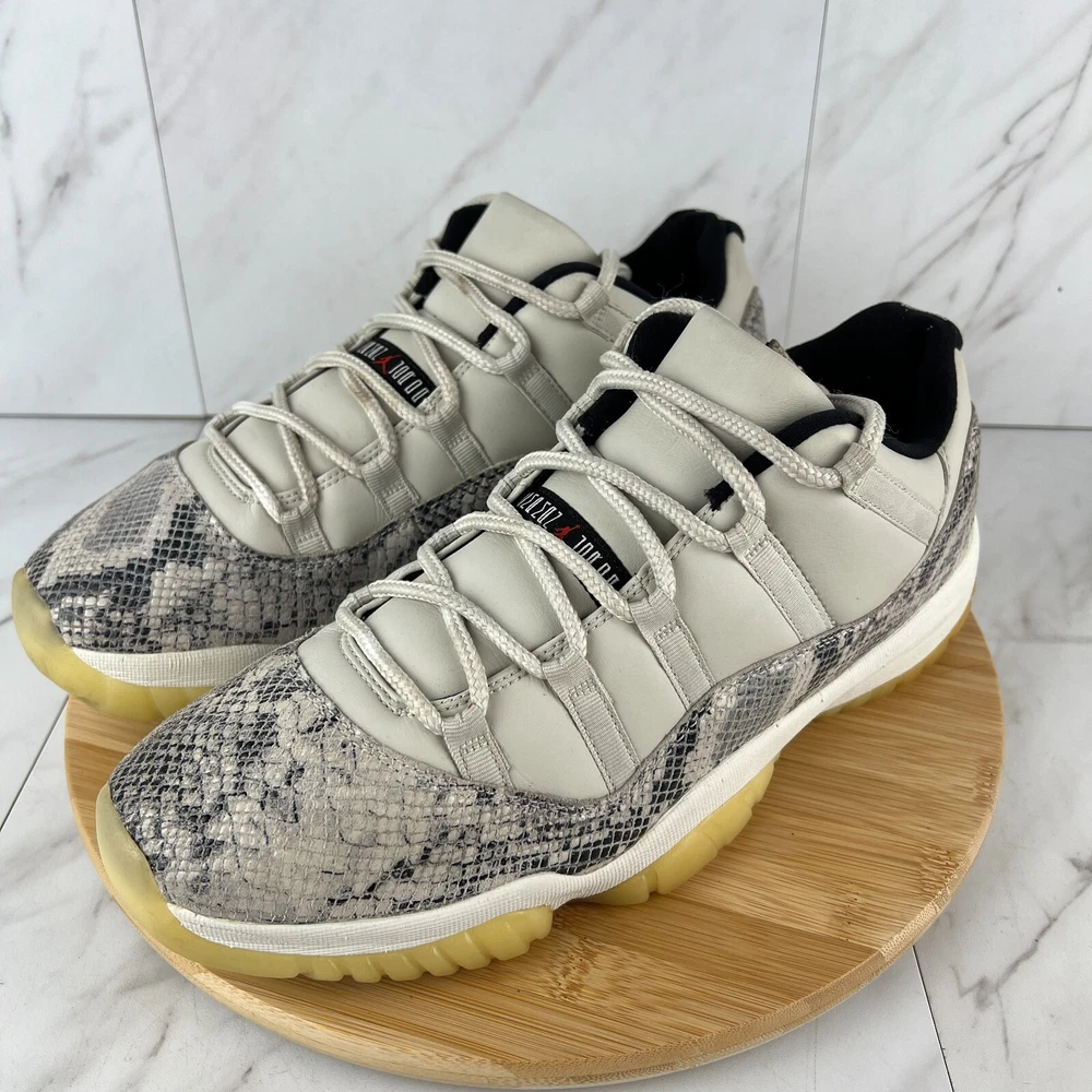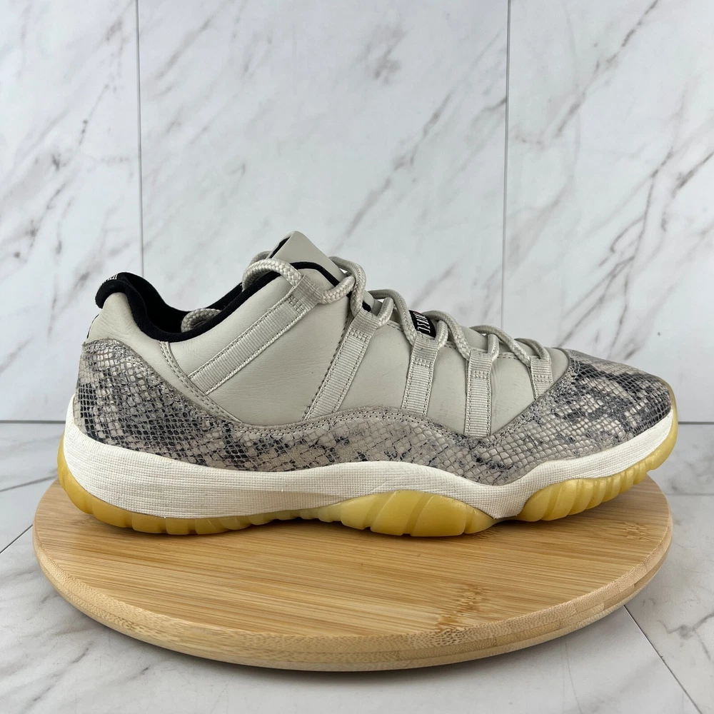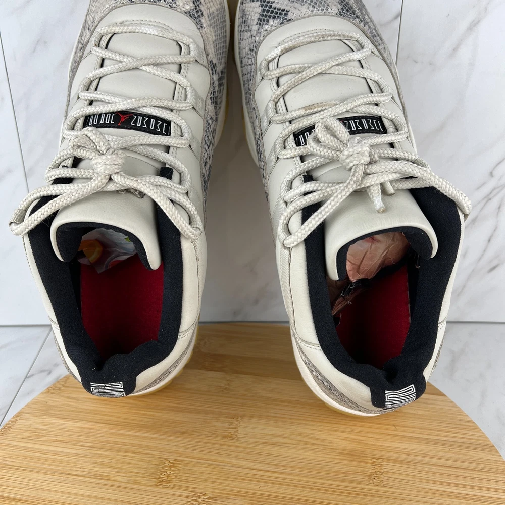 Nike Jordan 11 Retro Low Mens Size 13 Light Bone Snakeskin Sneakers CD6846-002 Condition: Pre-owned. Back heel plastic is pushed down (Picture 8). Shoelace endcaps are missing. No rips, holes, or tears. Smoke-free. No box. See all photos for exact condition. We ship every weekday! All orders placed Friday-Sunday will be sent out on Monday. Please be sure to reference each photo for the item's condition and message us with any questions! Thank you for checking out our product, please feel free to browse my store as well for other great deals!