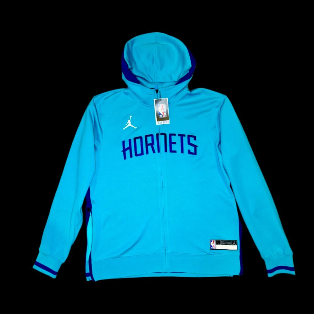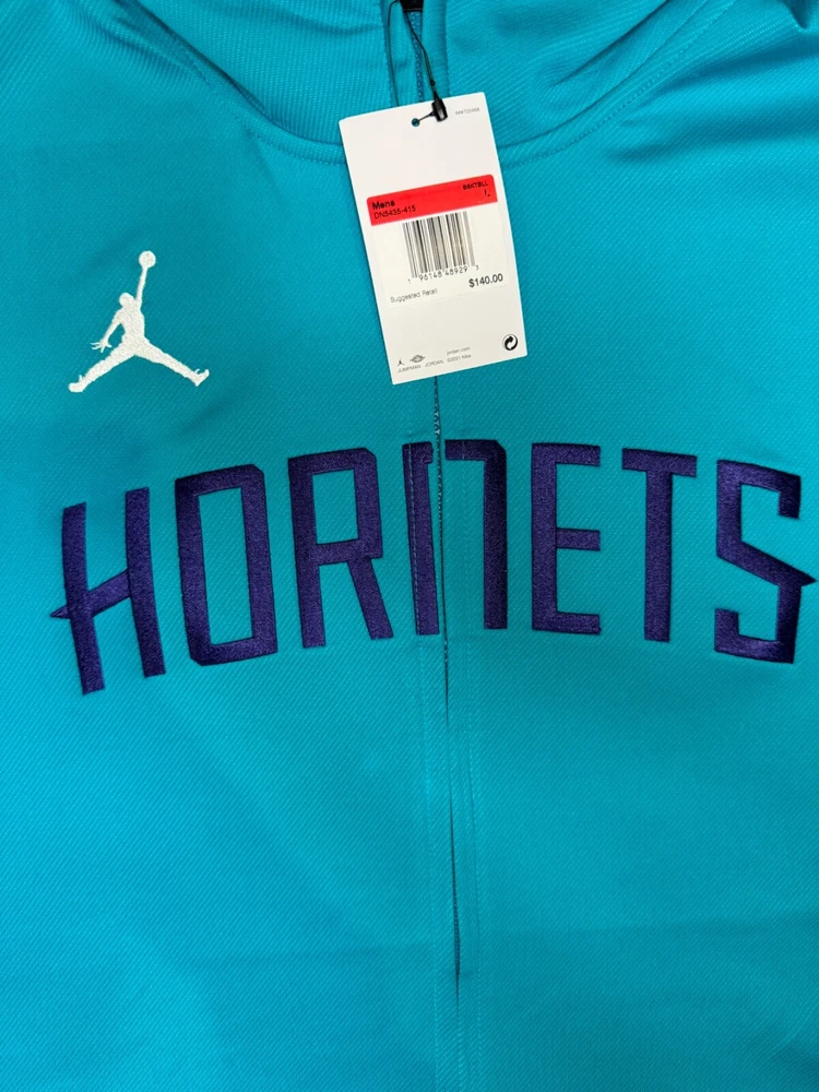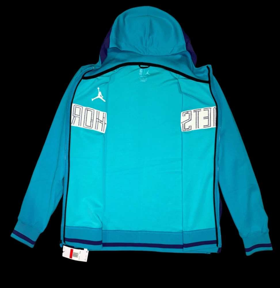 The Nike Jordan Charlotte Hornets Men's Size XXL Tall Zip Up Hoodie DN5435-415 is a basketball fan apparel featuring the Charlotte Hornets team. This official NBA merchandise is designed by Nike and carries the iconic Jordan brand. The hoodie is tailored for men in a size 2XL, providing a comfortable fit for fans to showcase their support for the team both on and off the court. It is a stylish and practical piece with a zip-up design, making it easy to layer for warmth during basketball games or casual wear.