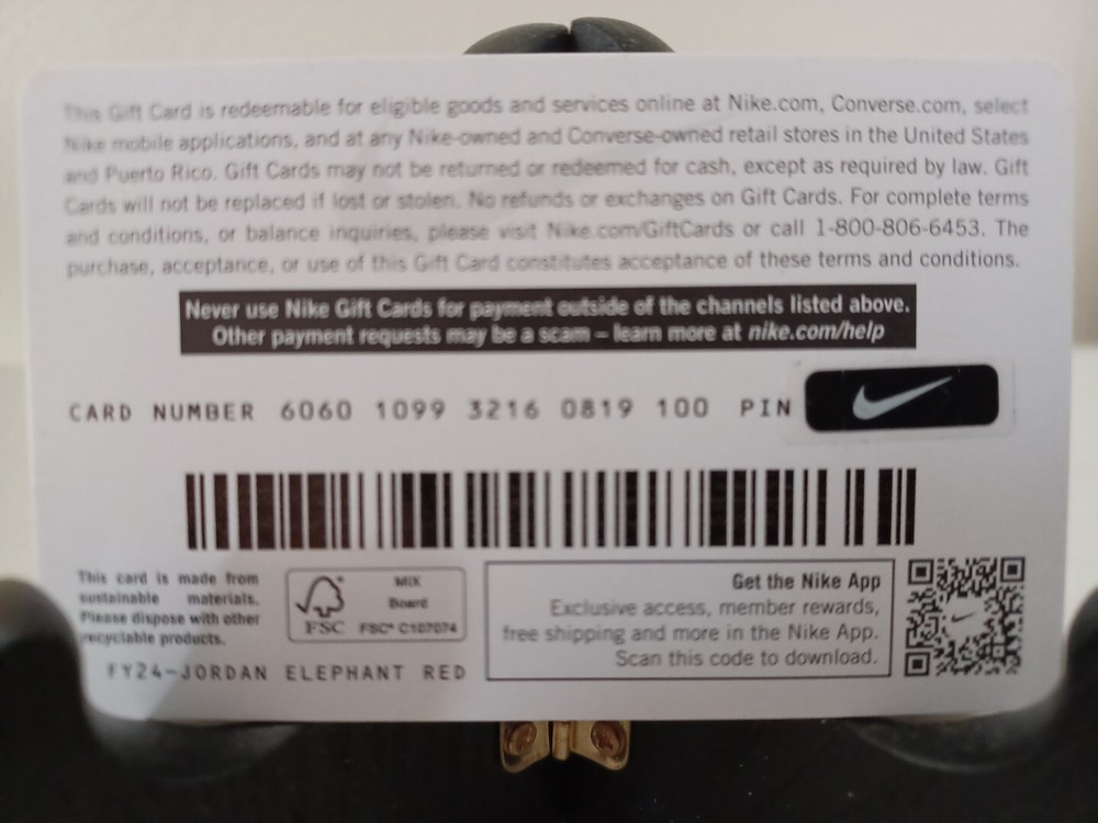 This NIKE gift card is a slam dunk for any coffee lover. The red card features a JORDAN design and is brand new, ready for use. It's a great price for a unique collectible. Whether you're a die-hard fan of basketball or just love the stylish design, this gift card is a must-have addition to your collection. No value.