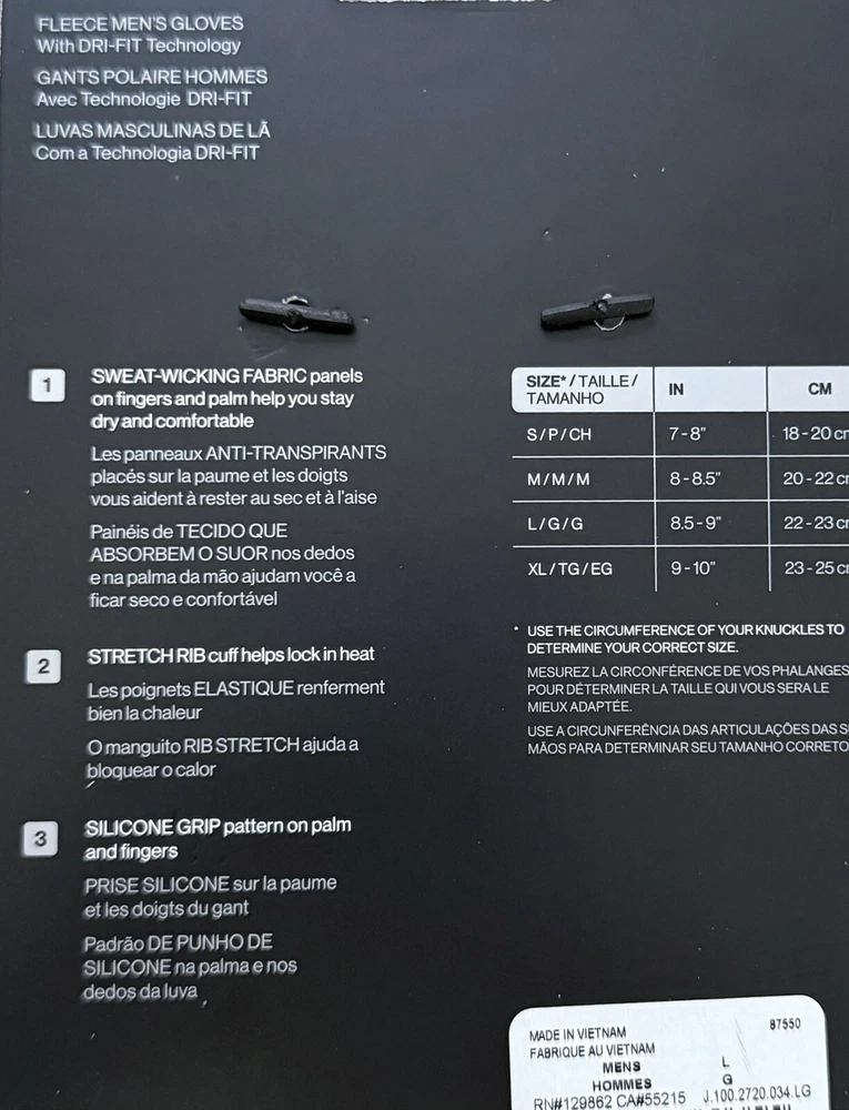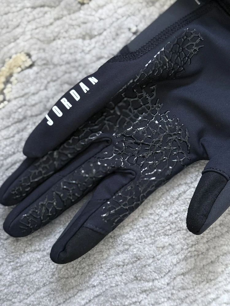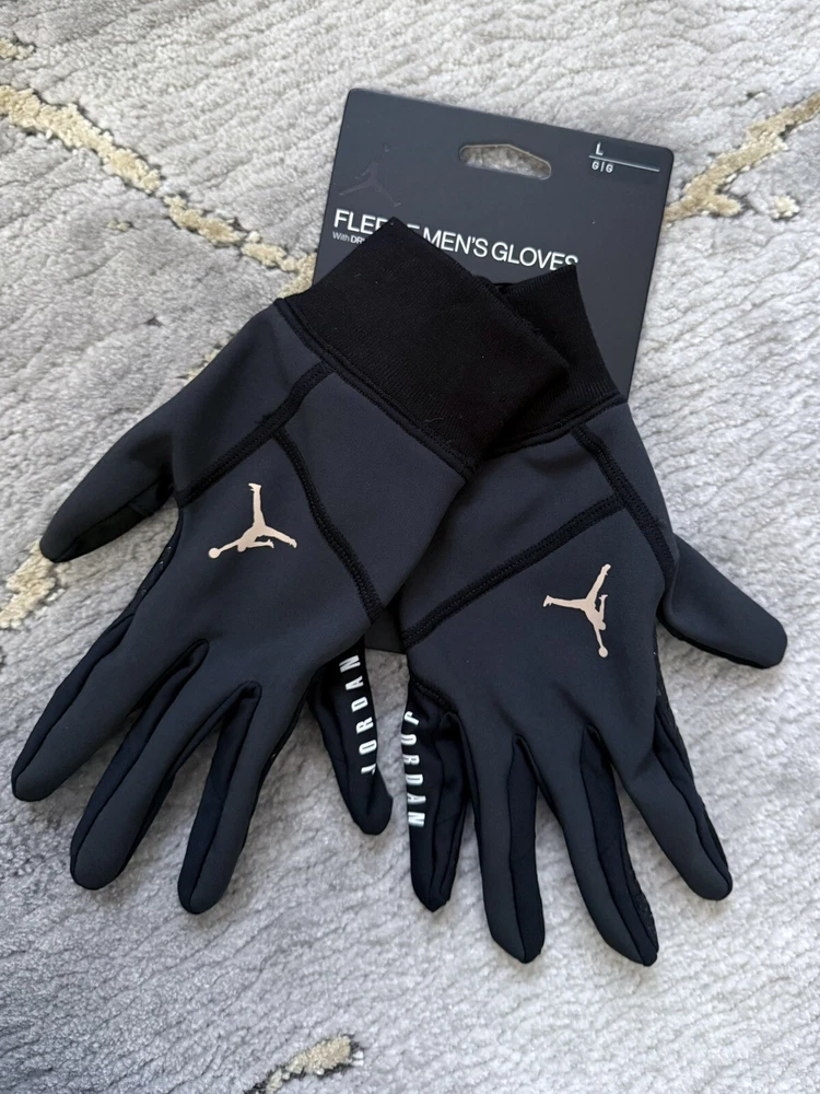 The Jordan Men's Hyperstorm Fleece Gloves feature Dri-fit Technology with sweat-wicking fabric panels on fingers that help you stay dry and comfortable. These gloves are also touch-screen compatible with both the thumb and forefinger. Benefits: -Dri-fit Technology -Sweat-Wicking fabric panels on fingers help you stay dry and comfortable -Stretch rib cuff helps lock in warmth -Silicone grip pattern on palm and fingers -Touch-screen compatible thumb and forefinger -Contents: Palm: 100% Acrylic; Back: 100% Acrylic -Other: 52% Nylon, 27% Polyester, 12% Rubber, 7% Spandex, 2% Polyoxymethylene