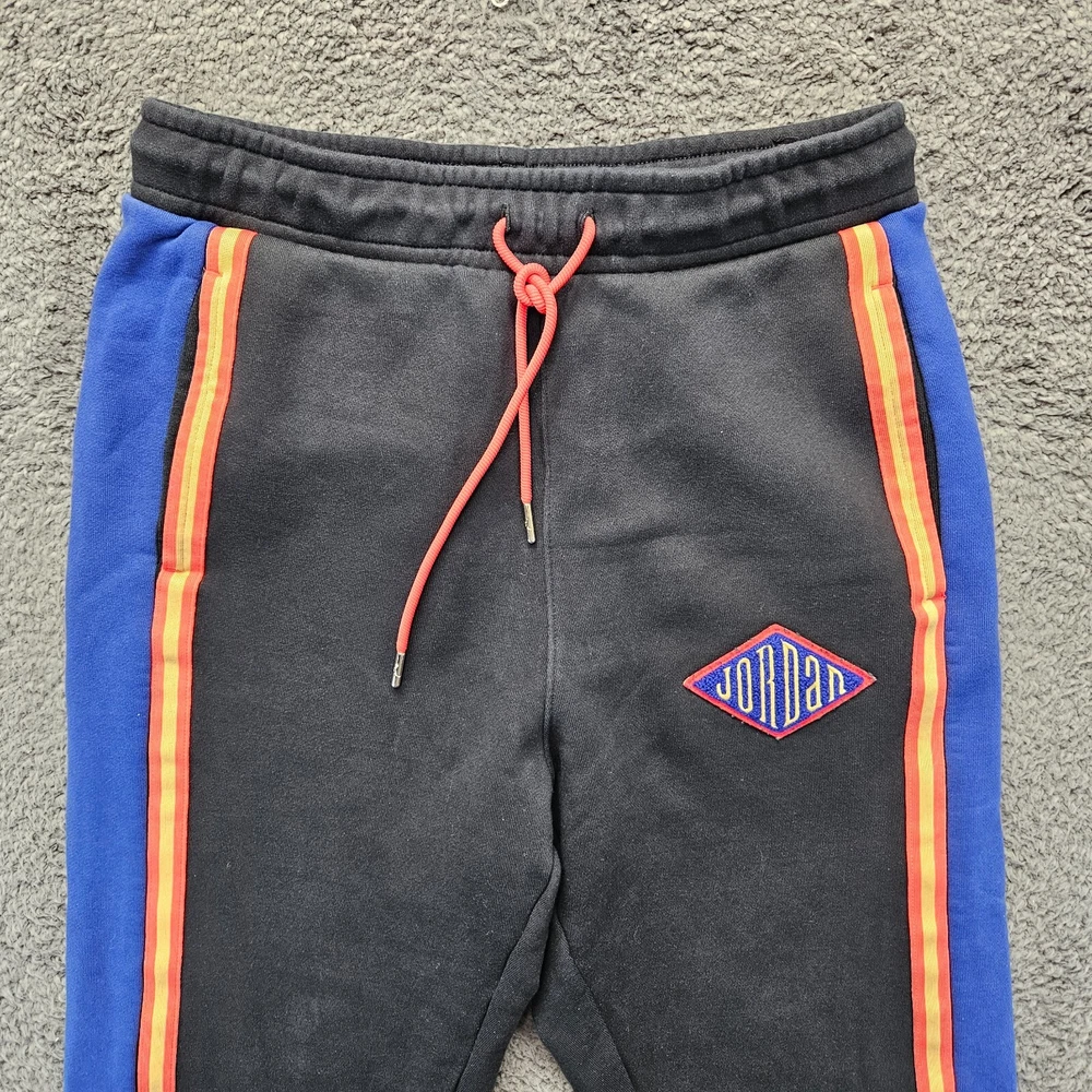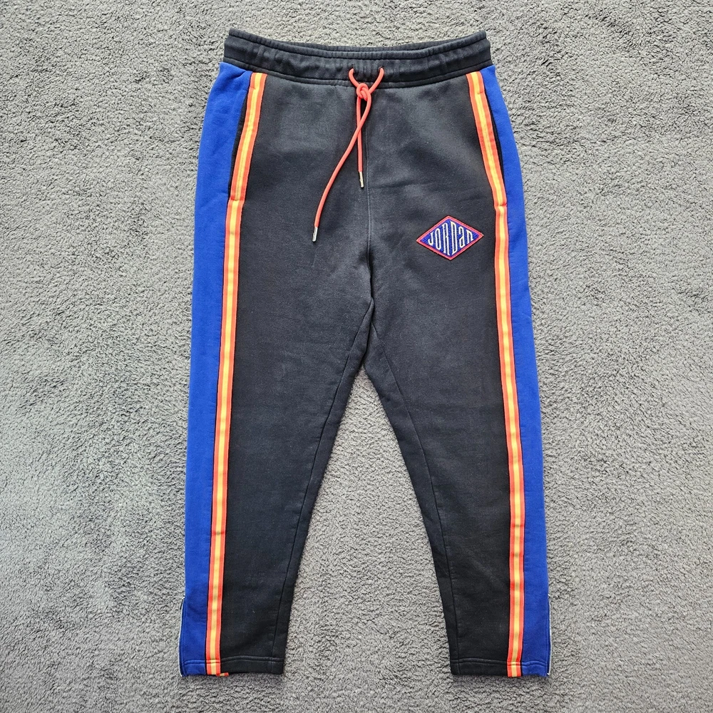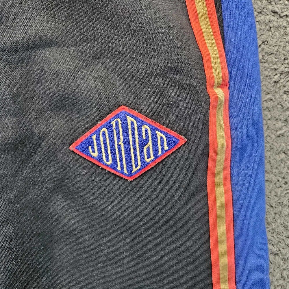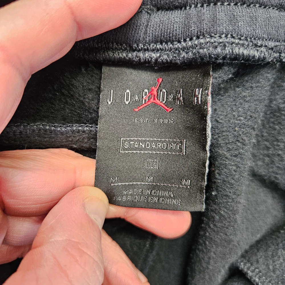 Leg Style: Straight Garment Care: Machine Washable Country/Region of Manufacture: China Material: 82% Cotton, 18% Polyester Waist Size: 30 in Size Type: Regular Fit: Regular UPC: Does not apply Occasion: Activewear, Casual Type: Pants Performance/Activity: Gym & Training, Running & Jogging, Walking Pattern: Striped Theme: Logo, Sports Features: Comfort, Heavyweight Style: Sweatpants gtin13: Does not apply Season: Fall, Spring, Summer, Winter Size: M Product Line: Air Jordan Handmade: No Inseam: 27 in Personalize: No Fabric Type: Fleece Color: Black Closure: Drawstring Department: Men Brand: Jordan