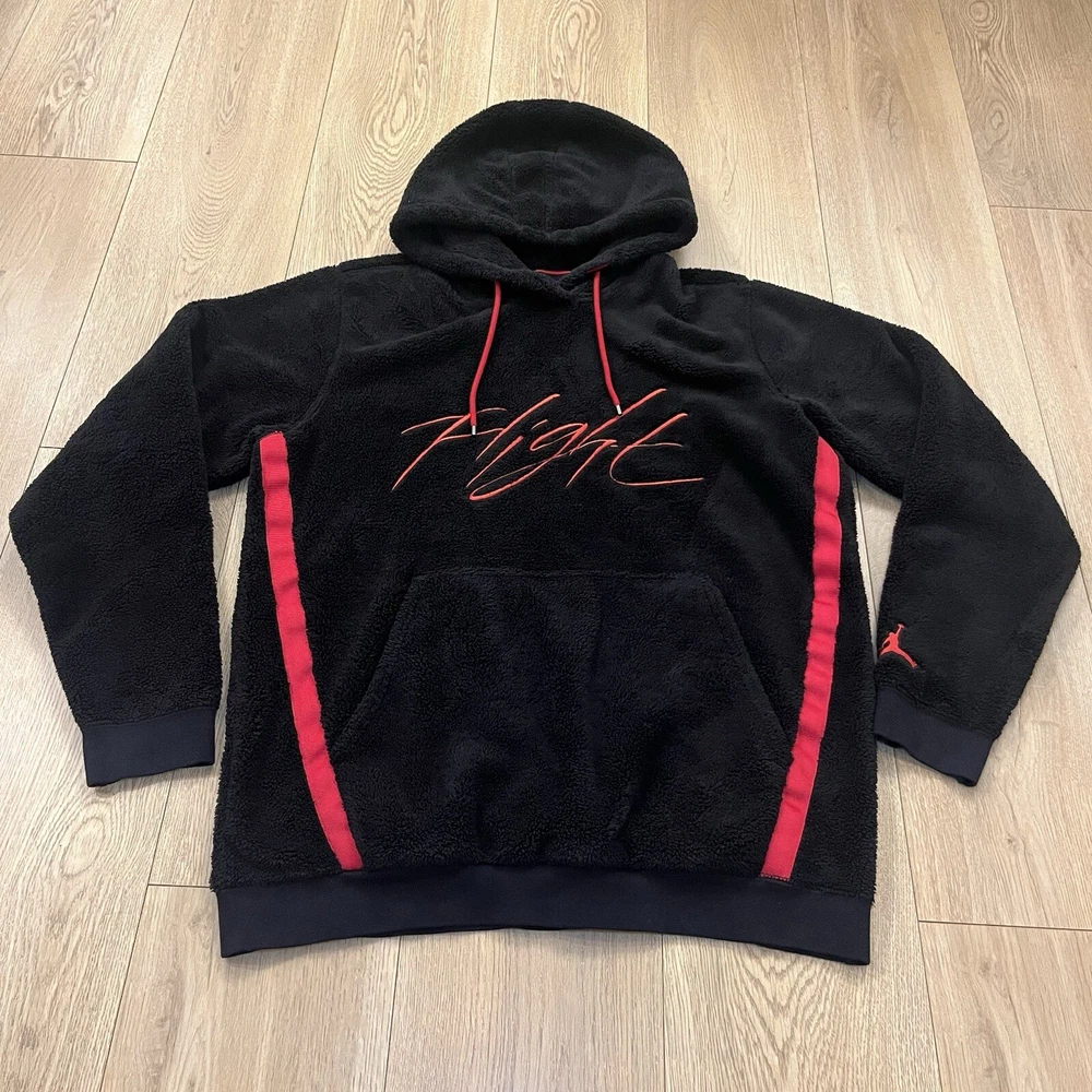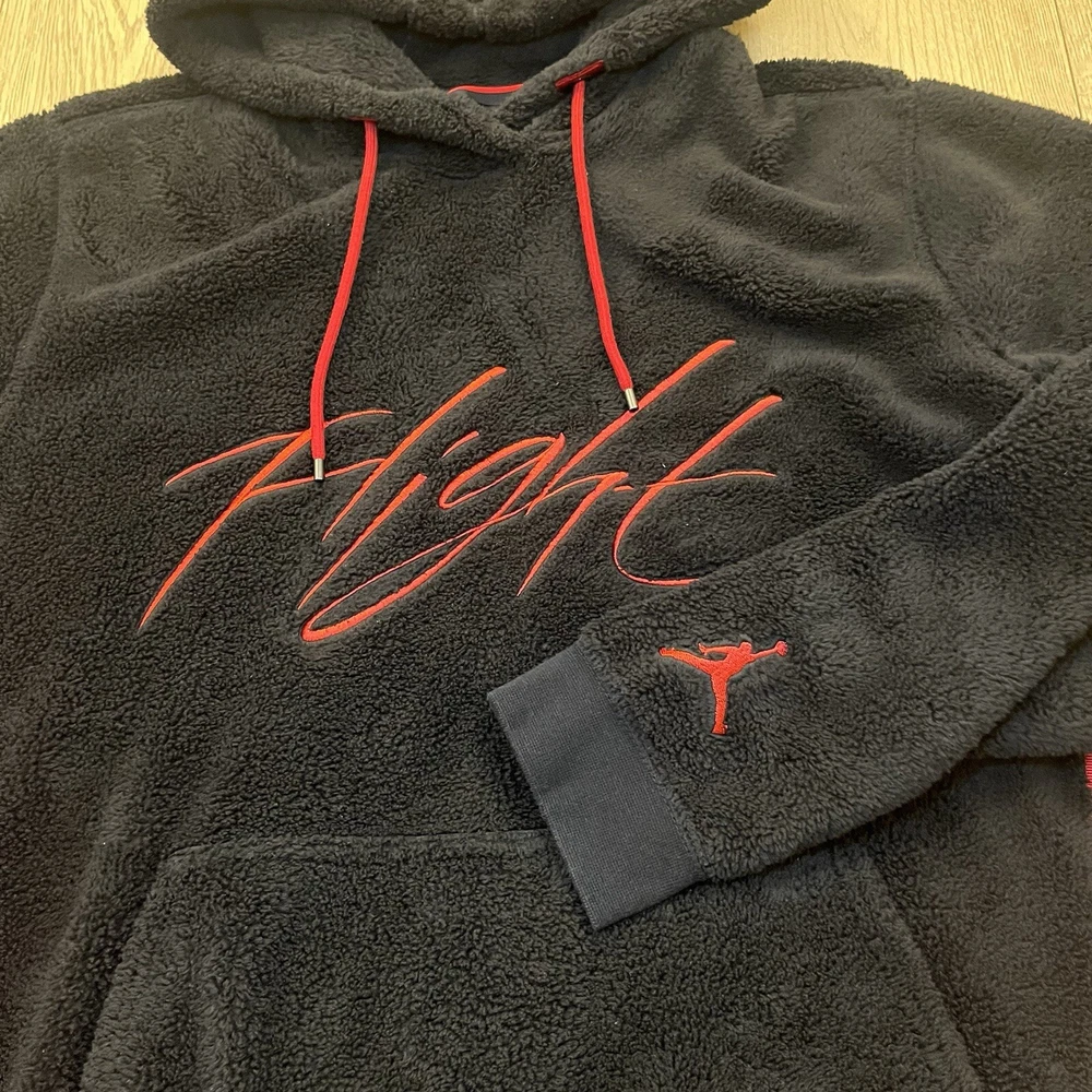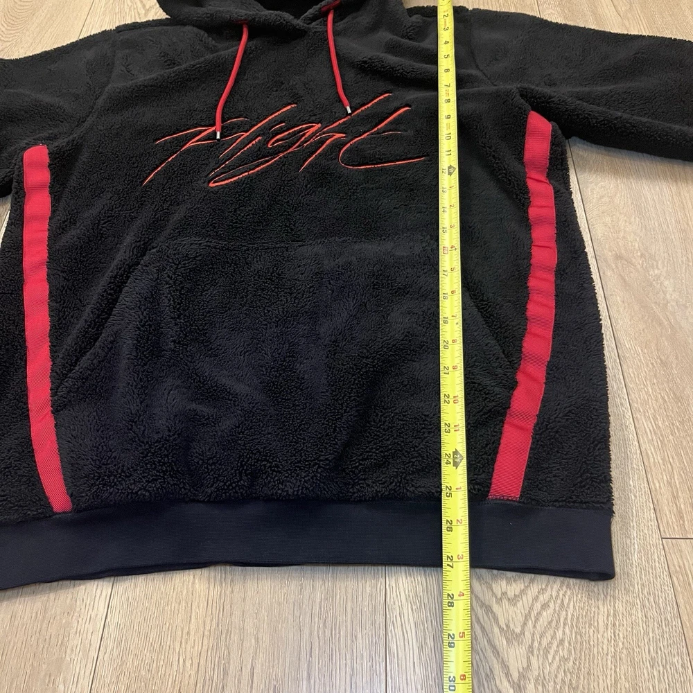 Elevate your activewear game with this Nike Jordan WINGS OF FLIGHT SHERPA HOODIE AH6250-010 in size M. The hoodie comes in a stylish black and red color combination, with embroidered logo accents adding a touch of personality. The drawstring closure and full zip make it easy to put on and take off, while the lightweight and hooded design make it perfect for gym and training sessions, walking, and basketball games. Made with high-quality materials as described in the product line, this hoodie is not only functional but also comfortable to wear. Its long sleeve design and regular size type make it suitable for men of all body types. The Nike Jordan WINGS OF FLIGHT SHERPA HOODIE AH6250-010 is a must-have addition to your activewear collection.