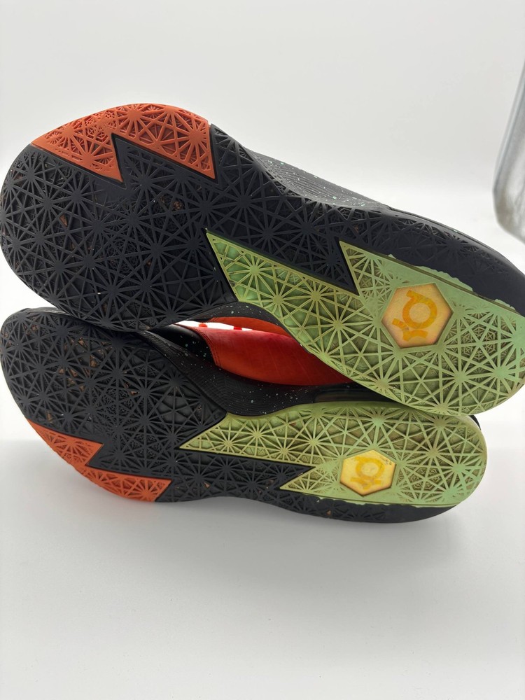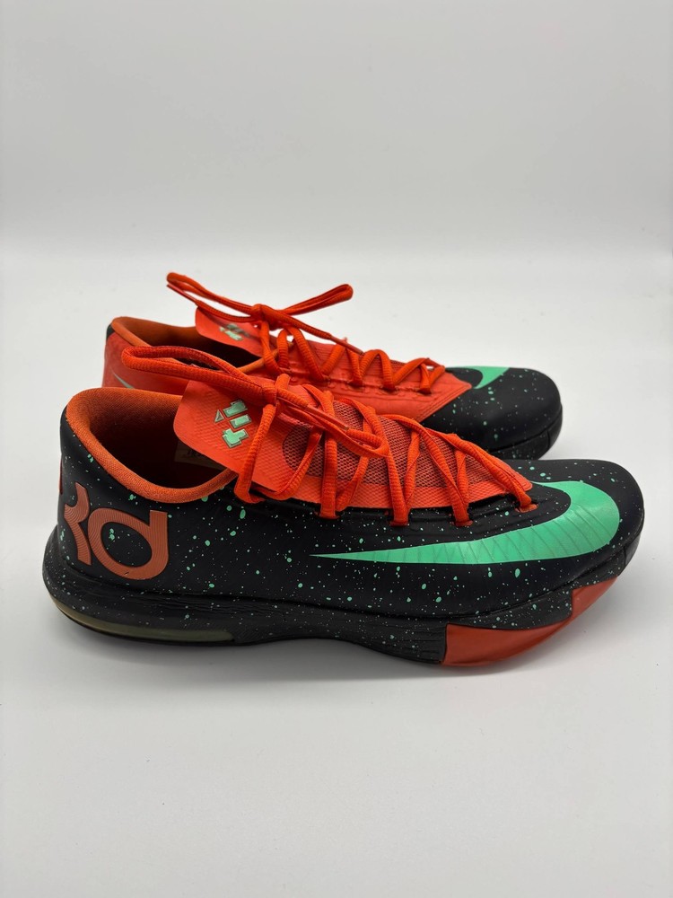 The Nike KD 6 Texas Black Green Glow Urban Orange Shoes in Men's Size 11.5 (599424-002) are a stylish and versatile sneaker designed for various athletic activities. These shoes feature a slip-on lace-up closure for easy wear, a cushioned and lightweight design for comfort, and a rubber outsole for durability. With a vibrant orange color and a nod to Kevin Durant's character, these Nike KD 6 shoes are perfect for activities like basketball, running, training, and more. The modern and athletic design with a touch of retro style makes them a standout choice for those looking for a blend of performance and fashion.