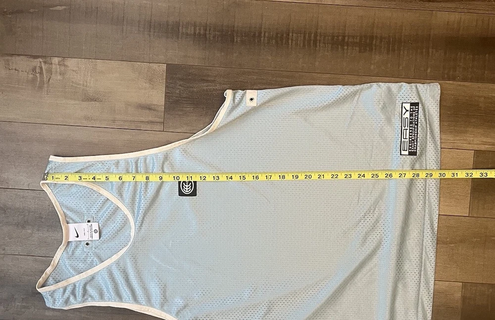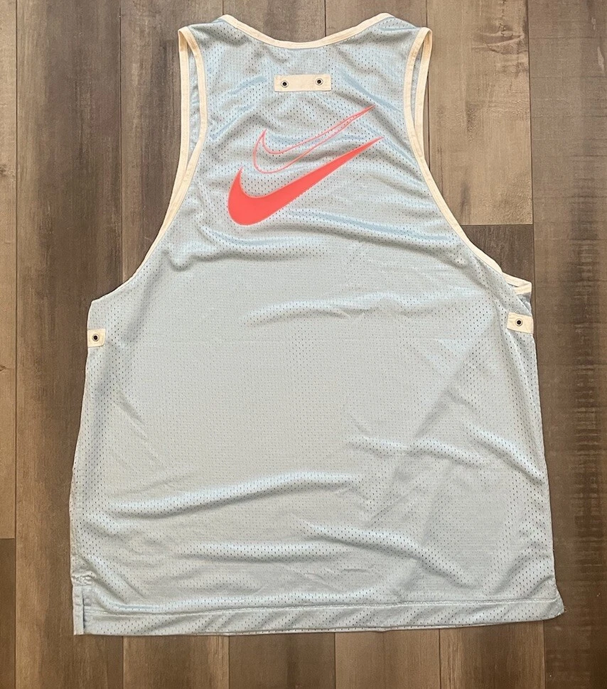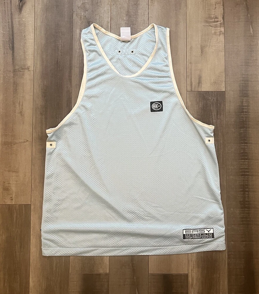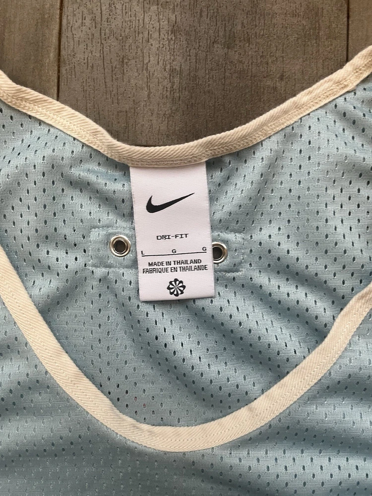 Elevate your game with the Nike Kevin Durant Dri-Fit Mesh Easy KD Basketball Tank in a striking blue hue. Designed for the basketball enthusiast, this men's size large singlet is crafted from 100% polyester mesh fabric, ensuring breathability and moisture-wicking capabilities to keep you cool on the court. The sleeveless design promotes freedom of movement, while the solid color and sleek Nike branding offer a stylish edge. Whether you're practicing your shots or competing in a match, this activewear top is tailored for both performance and comfort, making it a versatile addition to your athletic wardrobe.