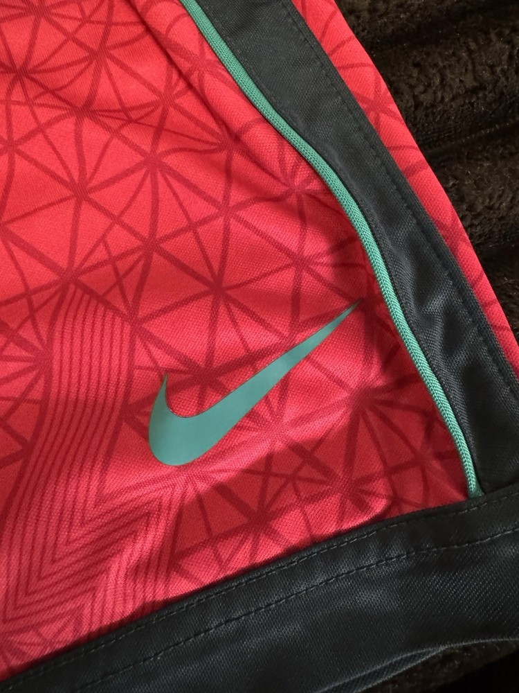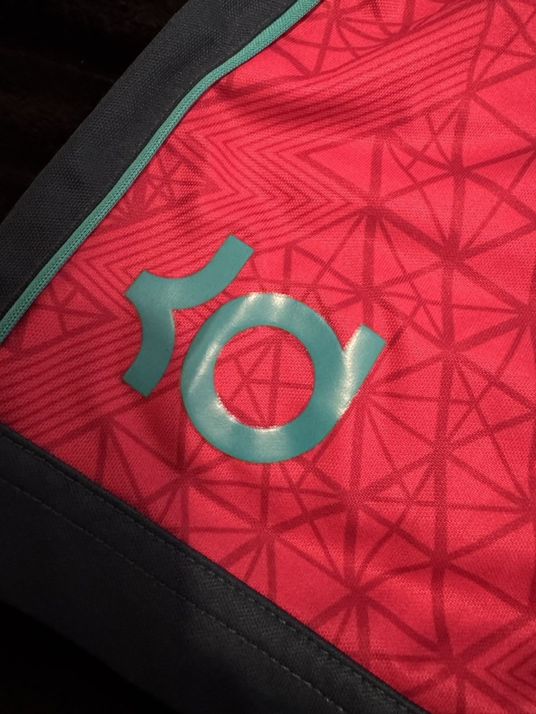 The Nike Kevin Durant KD Men's Basketball Shorts in size Large are designed for athletic performance, specifically for basketball. Made from 100% polyester, these red shorts feature a drawstring closure for a tailored fit. The waist area is compressed for added support during movement. With a regular fit and Nike branding, these shorts are ideal for summer and spring seasons, making them a stylish and functional choice for any active man's wardrobe.