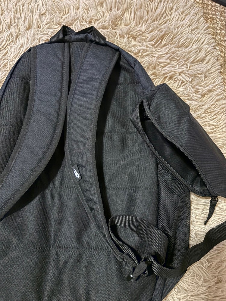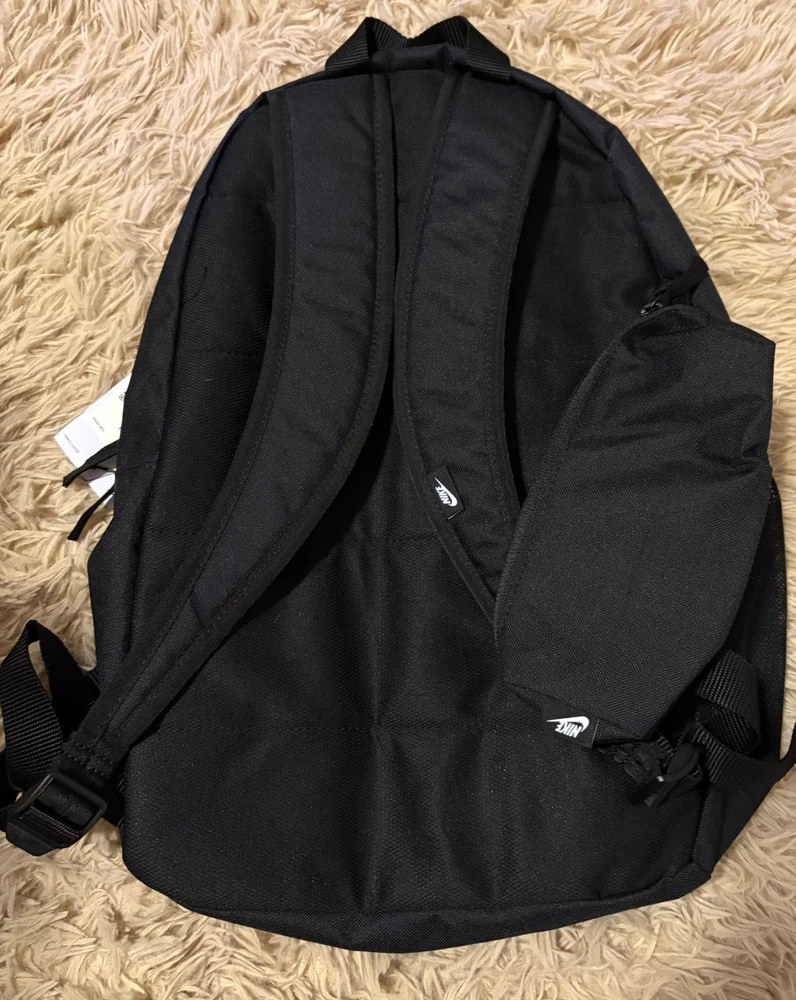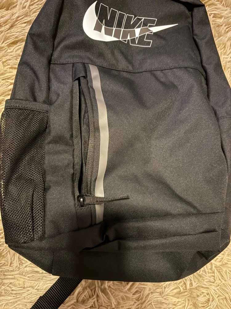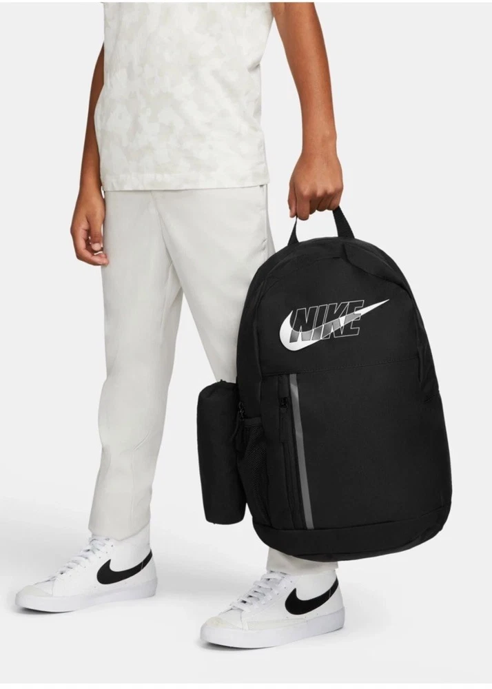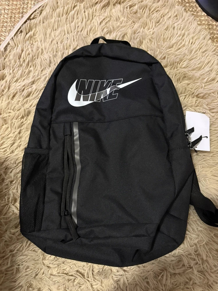 New and authentic with tags. 20L capacity. The Nike Kids Backpack School Travel Bag in black is a stylish and practical choice for kids on the go. With a large 20L size, this backpack features multiple pockets for organization, adjustable straps for comfort, and a lightweight design for easy carrying. The sleek black color and zip closure make it versatile for various occasions, whether for school, travel, or casual wear. Made from blended fabric with polyester lining, this backpack is durable and reliable for everyday use. The sports-themed design adds a fun touch, making it a great choice for active kids.
