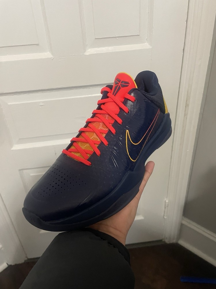 Cleat Type: Rubber Manufacturer Color: Midnight Navy/Bright Crimson/University Gold/Midnight Navy Department: Men Release Date: 20250701 Style: Sneaker Style Code: IM3207-400 Release Year: 2025 Product Line: Nike Zoom Kobe Insole Material: Foam Upper Material: Synthetic Model: Nike Zoom Kobe 5 Performance/Activity: Basketball US Shoe Size: 11.5 Occasion: Activewear Color: Blue Year Manufactured: 2025 Season: Summer, Fall Signed: No Customized: No Brand: Nike Closure: Lace Up Pronation: Overpronation Type: Athletic Nickname: Indiana Fever Vintage: No Shoe Shaft Style: Low Top Outsole Material: Rubber