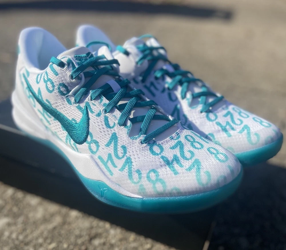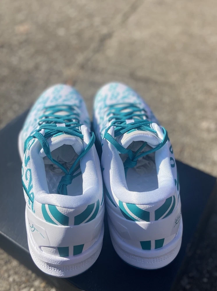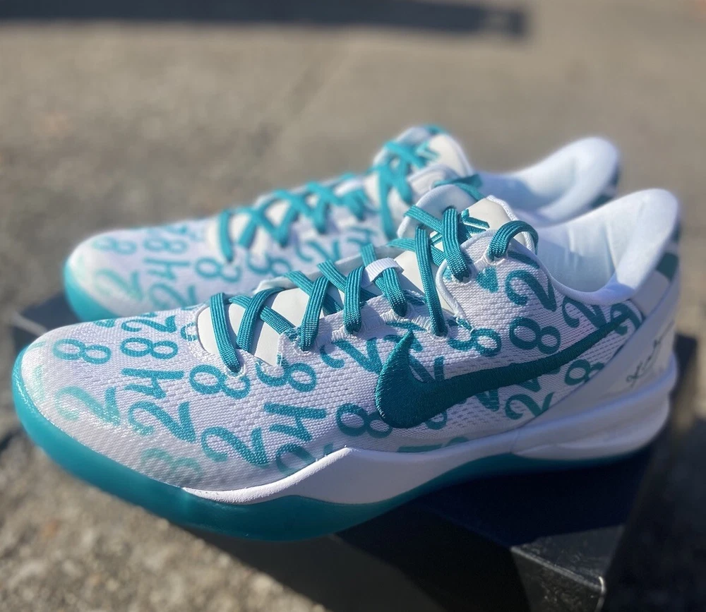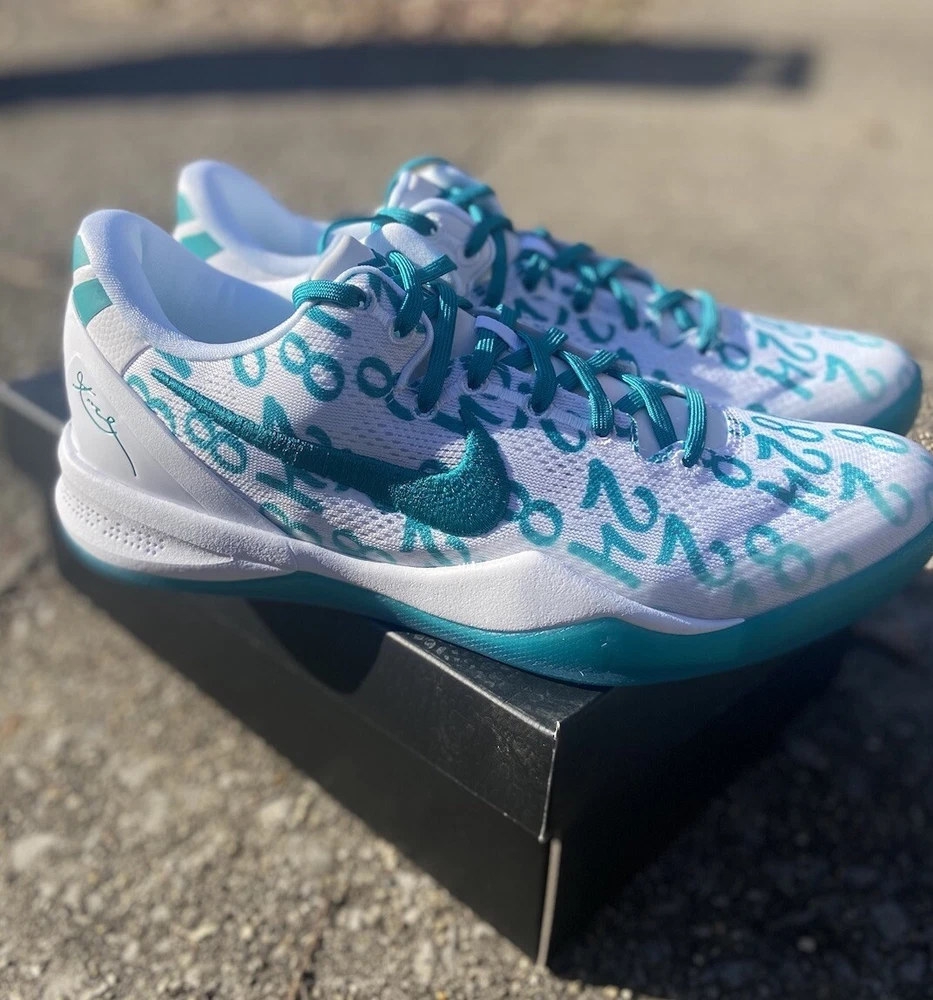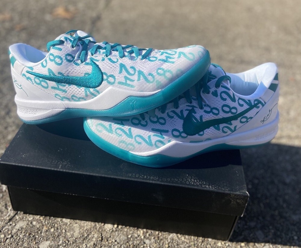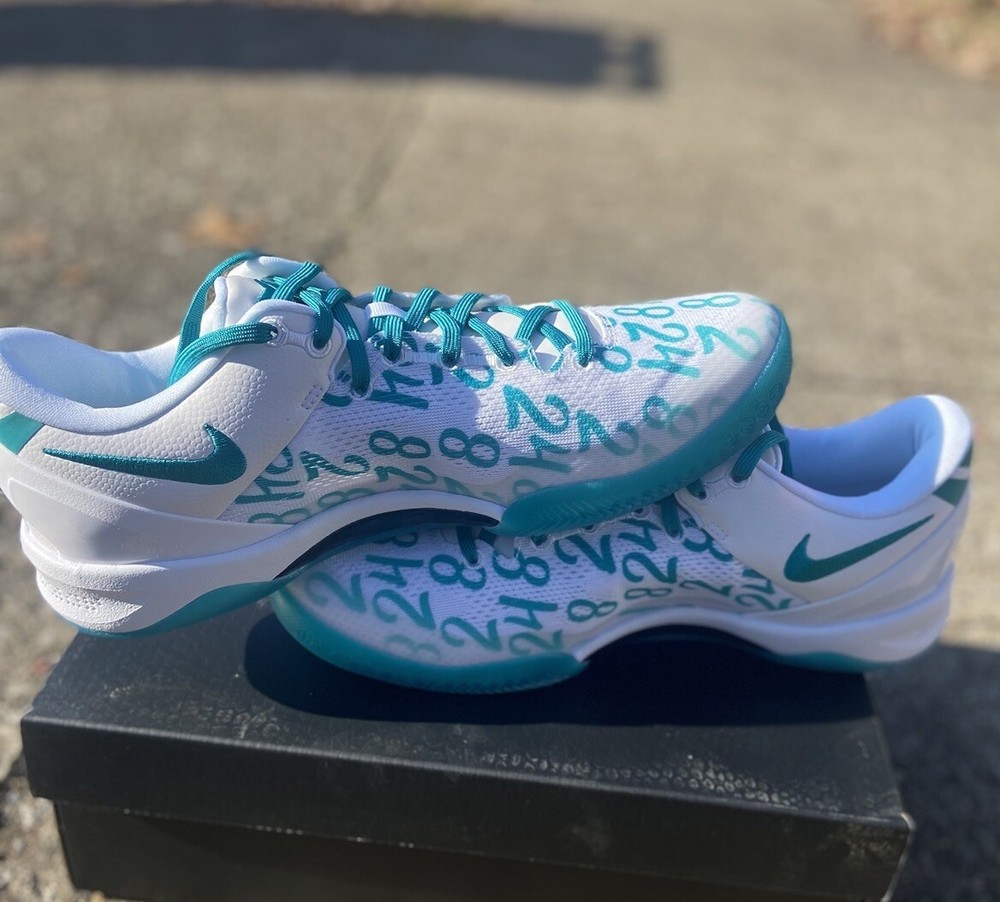 This is a Nike Kobe 8 Protro sneaker in size 10.5, featuring a white and Radiant Emerald colorway. Released in 2024, this basketball shoe is part of the Nike Kobe line, with a mesh upper material and a stylish design. Ideal for men, this brand new shoe pays tribute to Kobe Bryant's legacy. Crafted for the modern athlete and styled for the streets, the Kobe 8 Protro Radiant Emerald is engineered with performance technology that ensures comfort and responsiveness. Its lightweight construction and supportive fit adapt seamlessly to rapid movements, embodying the agility and precision Kobe was known for. The vibrant Radiant Emerald accents add a fresh pop of color, perfectly suited for individuals who appreciate a mix of heritage and style. Dive into the game with the Nike Kobe 8 Protro Radiant Emerald, a sneaker that blends cutting-edge design with a tribute to a basketball legend. This sneaker captures the essence of Kobe Bryant's dynamic playstyle and his legacy on the court, featuring a sleek White/Radiant Emerald/White colorway that stands out in any crowd. The numbers 8, 24, and 2 are displayed on the upper, symbolizing Kobe's iconic numbers with the Lakers and his daughter Gianna's number 2, making it more than just a shoe; it's a piece of history.