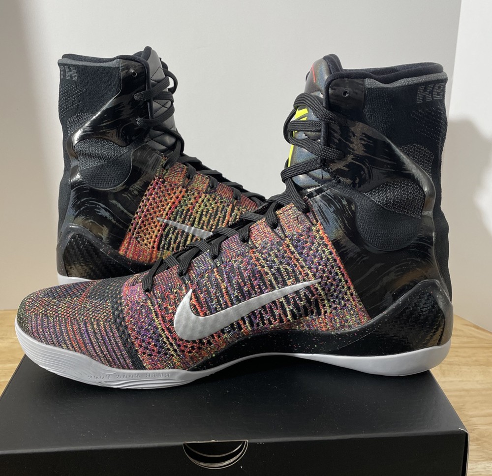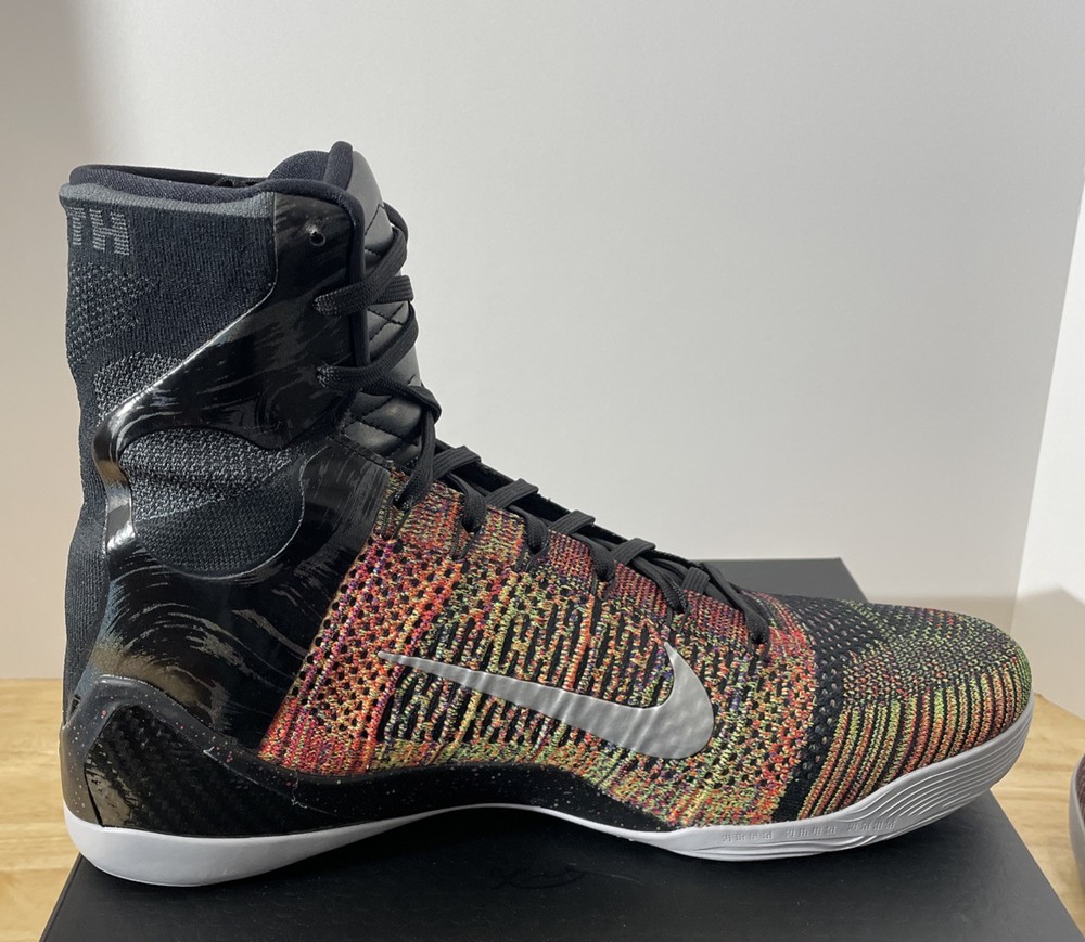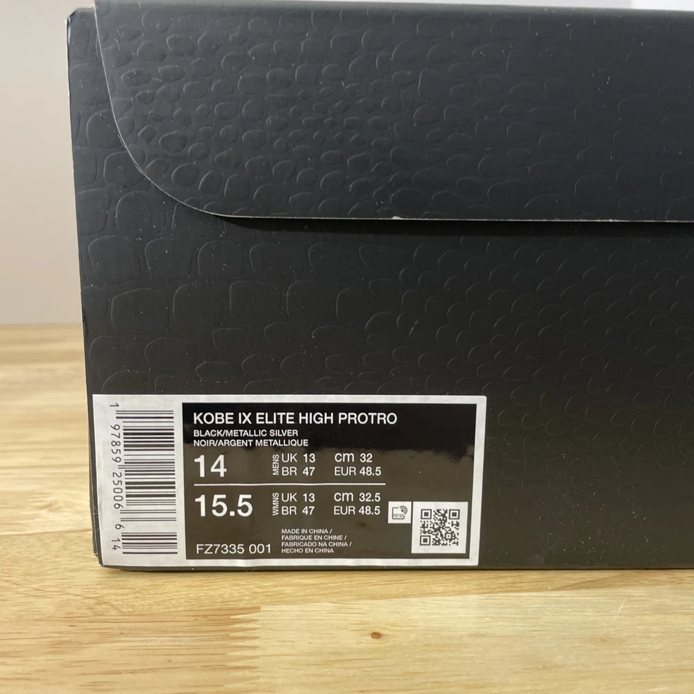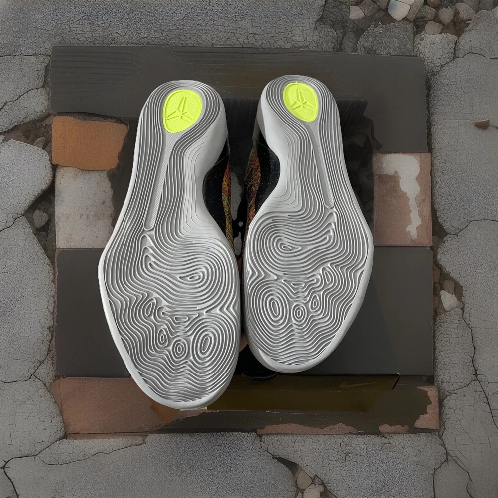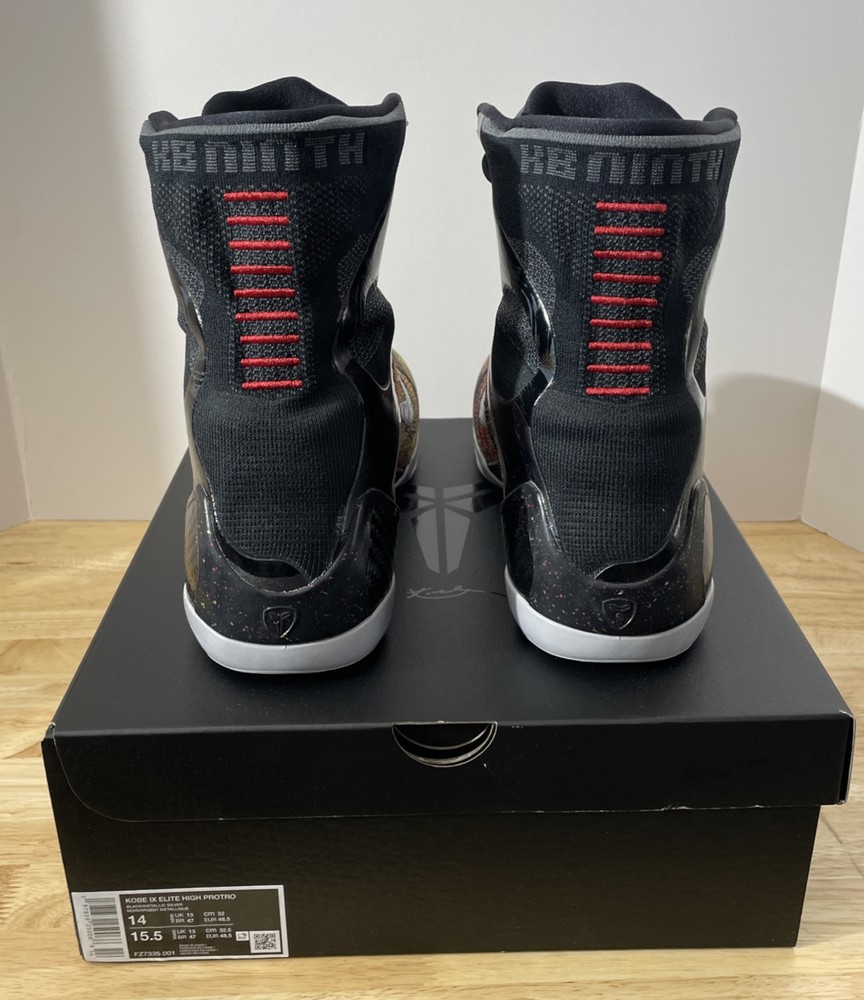 This is a Nike Kobe 9 Elite Protro 2025 Masterpiece sneaker in size 14 for men. The shoe features a black colorway with a FlyKnit upper material, part of the Nike Kobe product line. It is an athletic type of shoe with a futuristic design expected to be released in 2025.