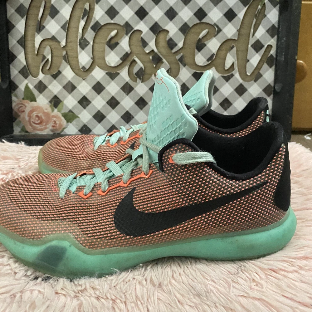 NIKE KOBE X EASTER BASKETBALL SHOES SNEAKERS SZ 6.7Y 726067-808 HOT LAVA. Condition is "Pre-owned". Shipped with USPS Priority Mail. Guc w normal signs of wear. Minor flaw scuff on one of the insoles as pictured