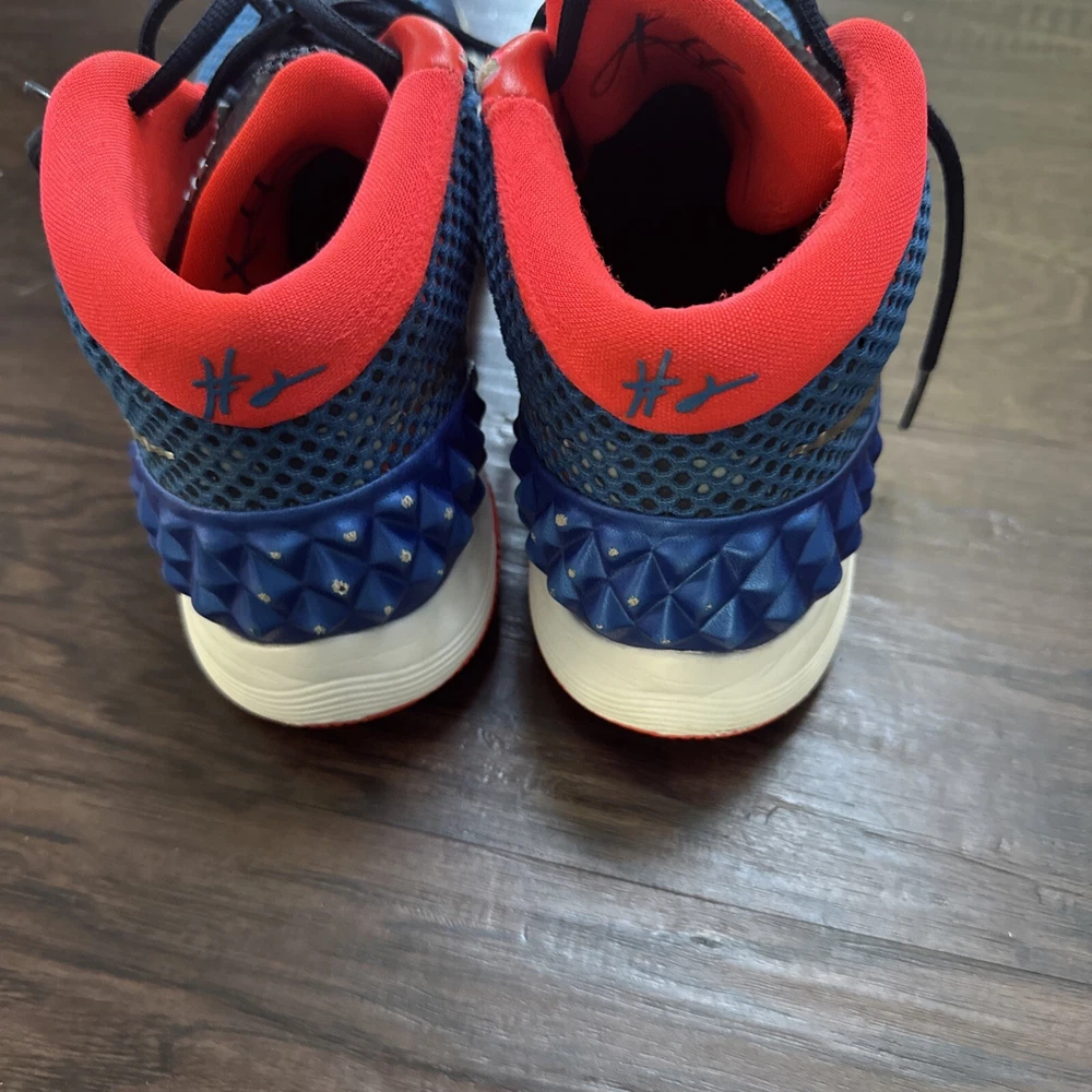 Elevate your game with these Nike Kyrie 1 sneakers. Designed for basketball, these shoes provide comfort and performance with their cushioned, lightweight, and slip-resistant features. The lace-up closure ensures a secure fit while the breathable lining material keeps your feet cool and comfortable. These mid-top sneakers are perfect for any season, whether it's winter, summer, fall, or spring. With their geometric pattern and USA, colorful, outdoor, athleisure, retro, and sports themes, these shoes are sure to make a statement. They are perfect for gym and training, track and field, walking, weightlifting, school, boxing, volleyball, cross-training, CrossFit, basketball, bodybuilding, and running and jogging.